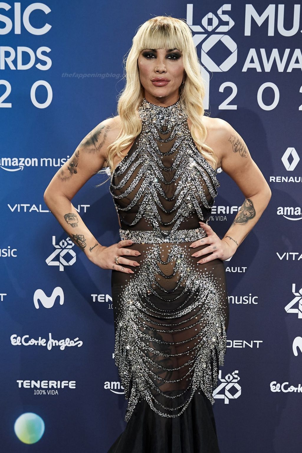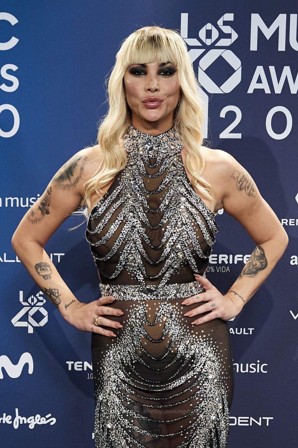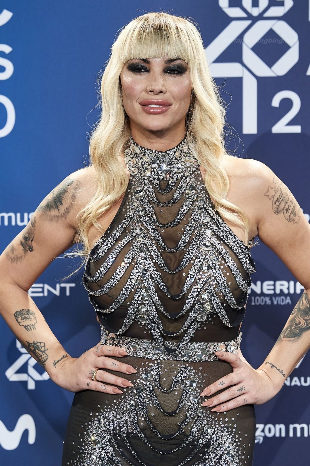 L’actrice et mannequin Daniela Santiago assiste au photocall des ‘Los40 Music Awards’ à Madrid, le 12/05/2020. La blonde de 38 ans met en valeur ses courbes et sa lingerie en portant une robe transparente.
