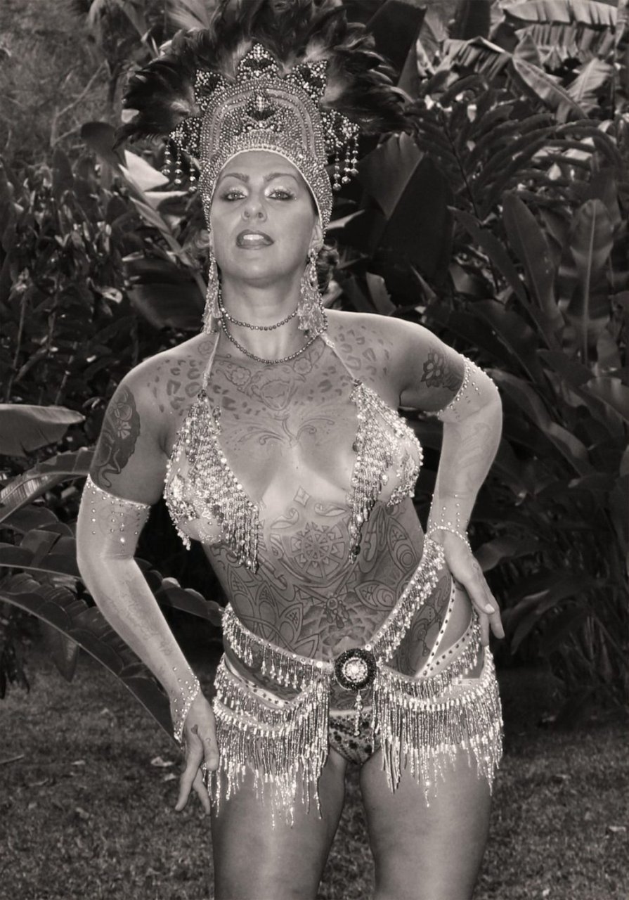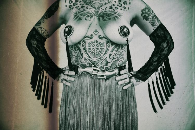 Trop de tatouages cependant, elle a en fait meilleure allure en débardeur et jean bleu qu'en string et pasties.
