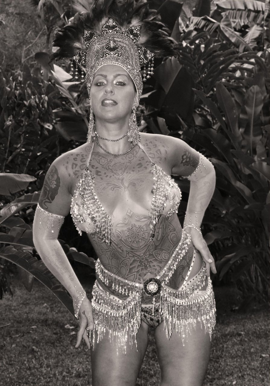 Trop de tatouages cependant, elle a en fait meilleure allure en débardeur et jean bleu qu'en string et pasties.