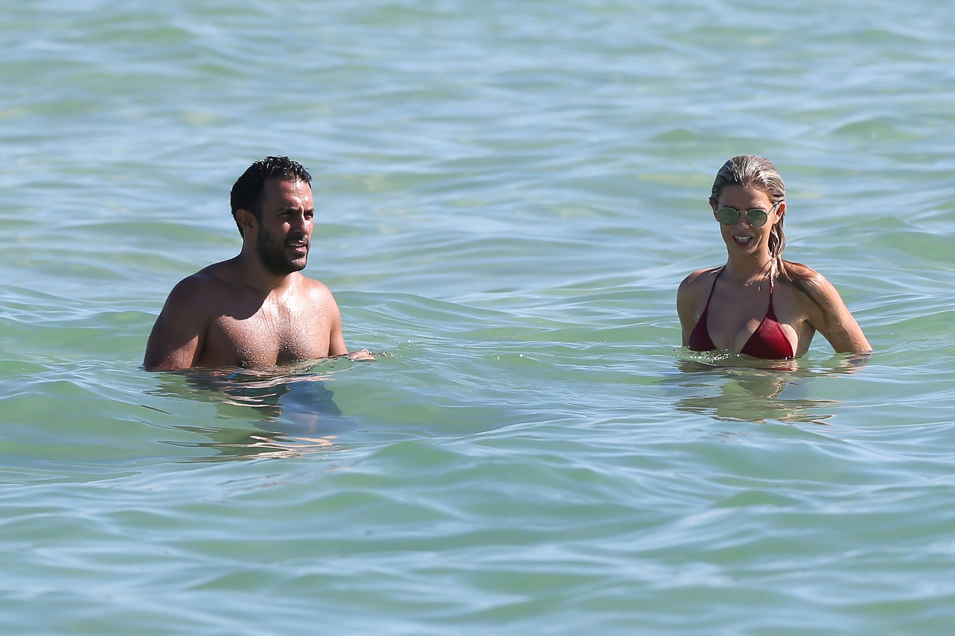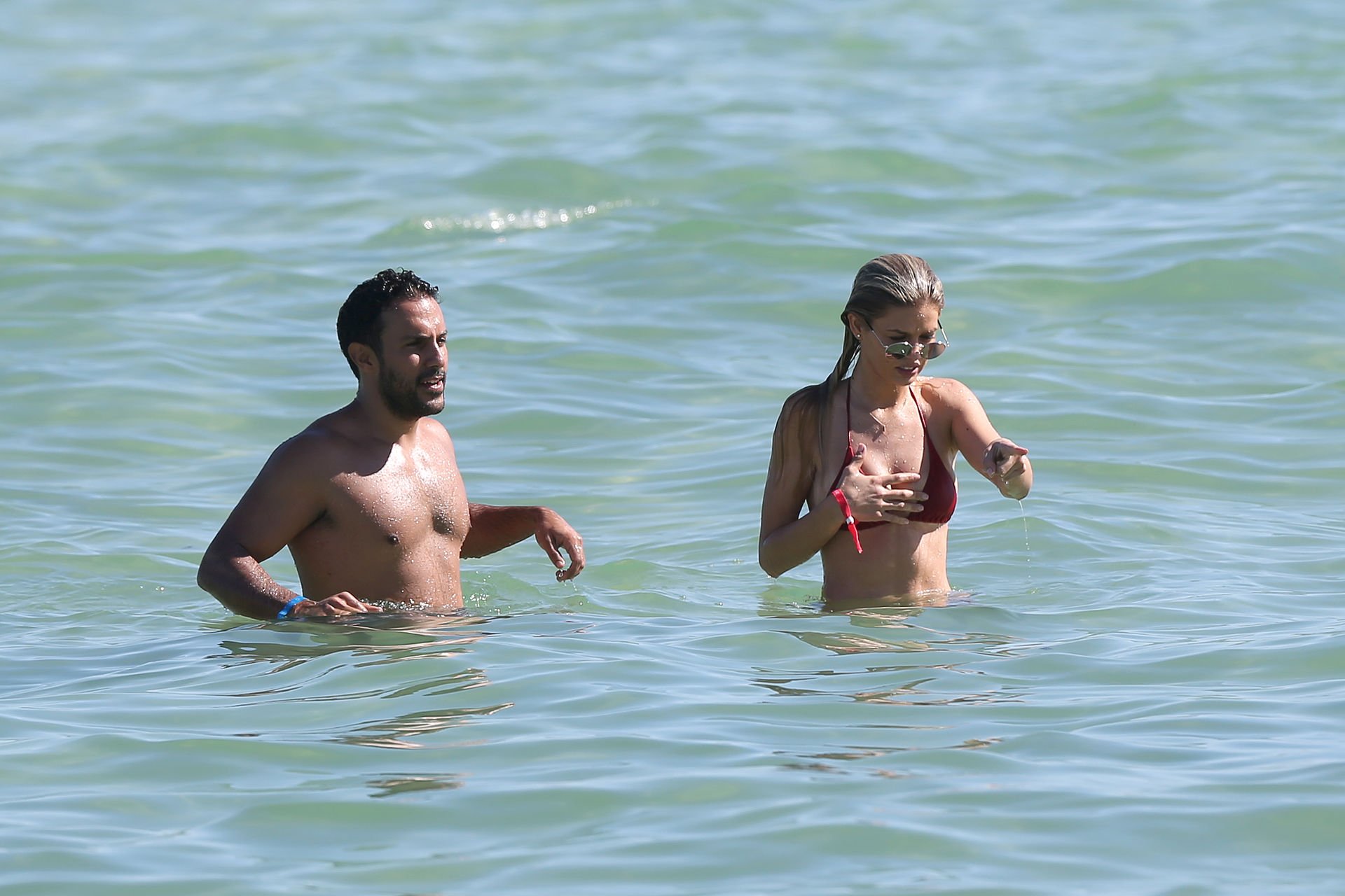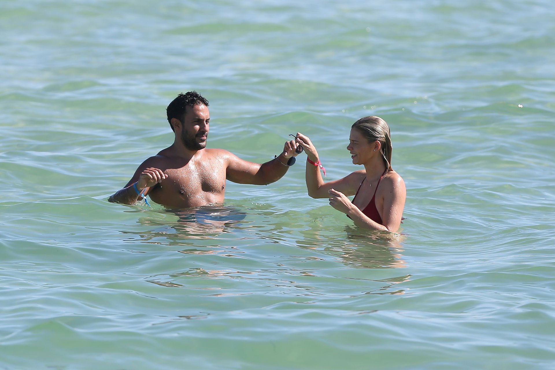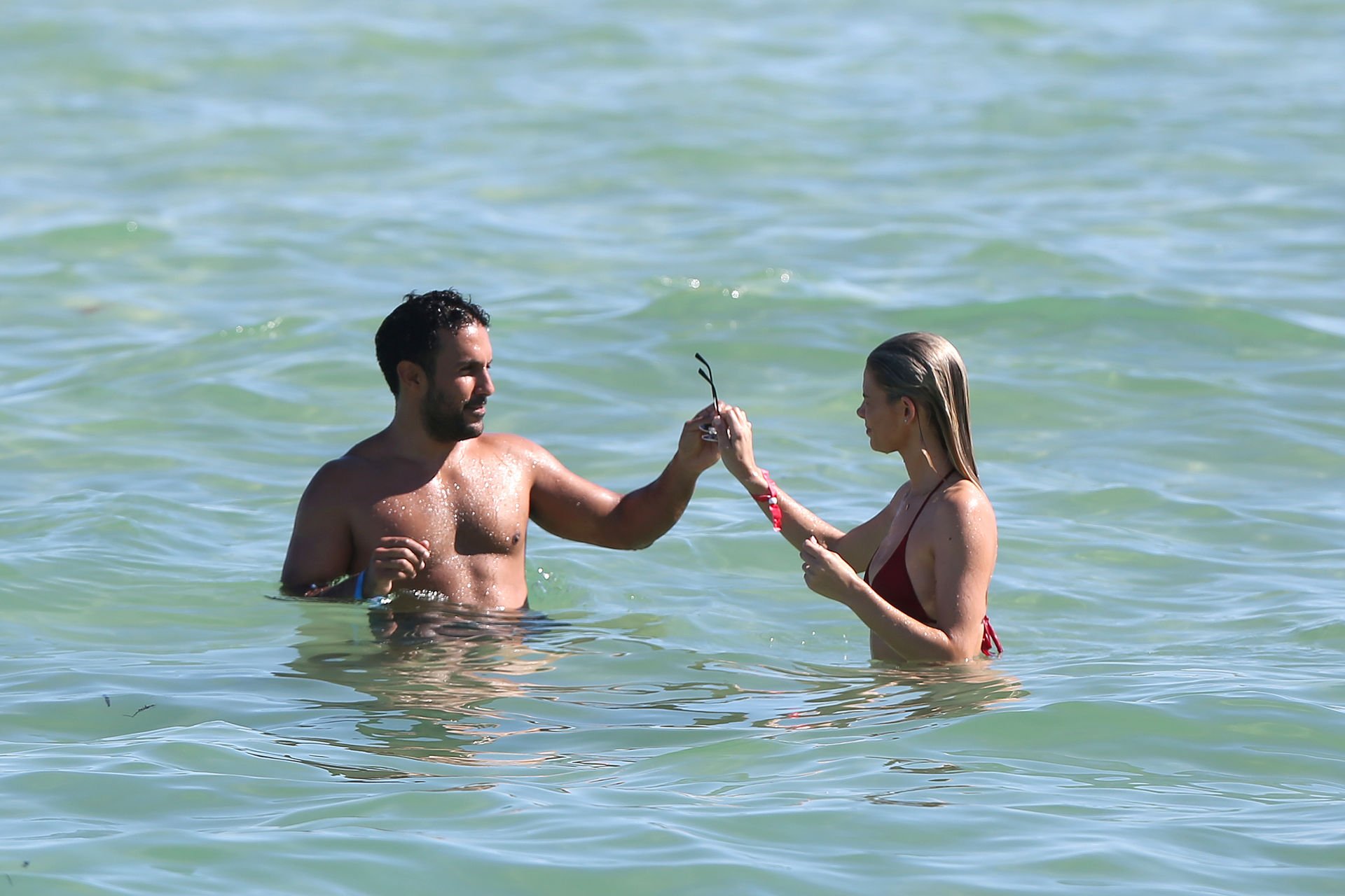 Le mannequin Danielle Knudson (29 ans) exhibe sa silhouette brûlante dans un minuscule bikini rouge sur Miami Beach après avoir manqué le défilé Victoria’s Secret 2018, le 10/11/2018.