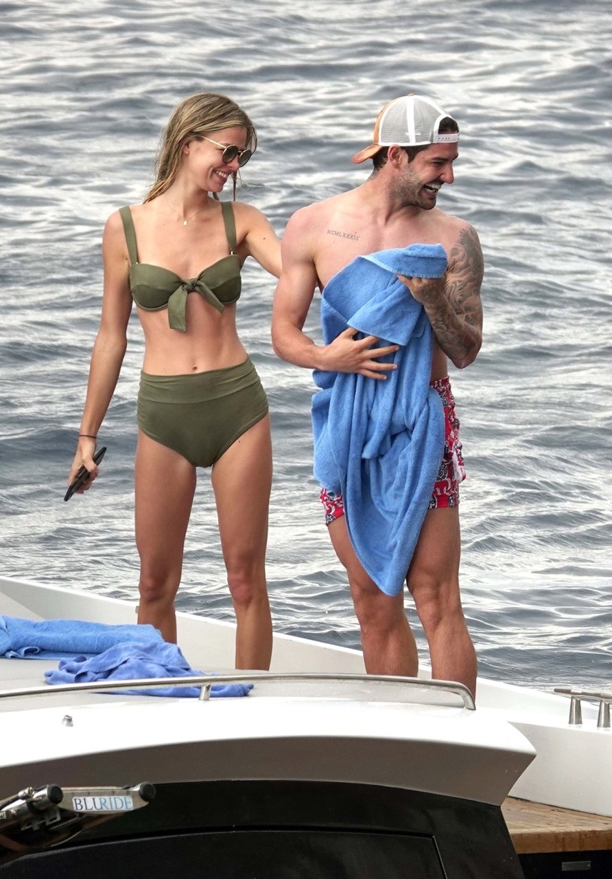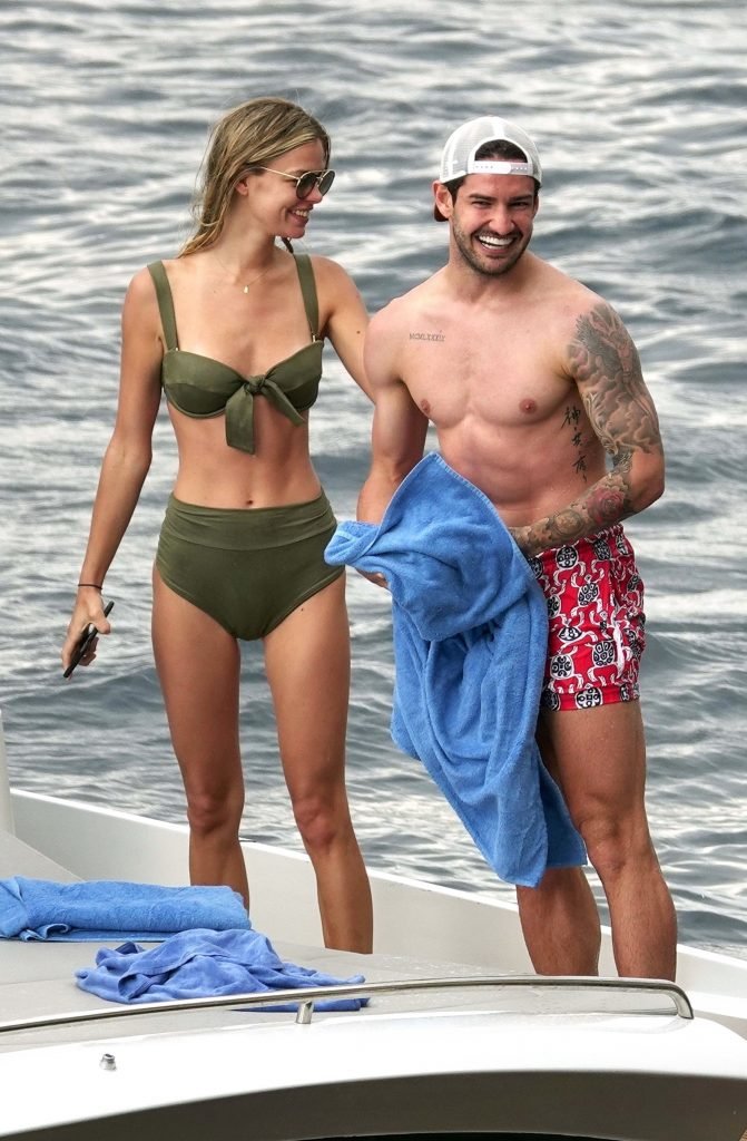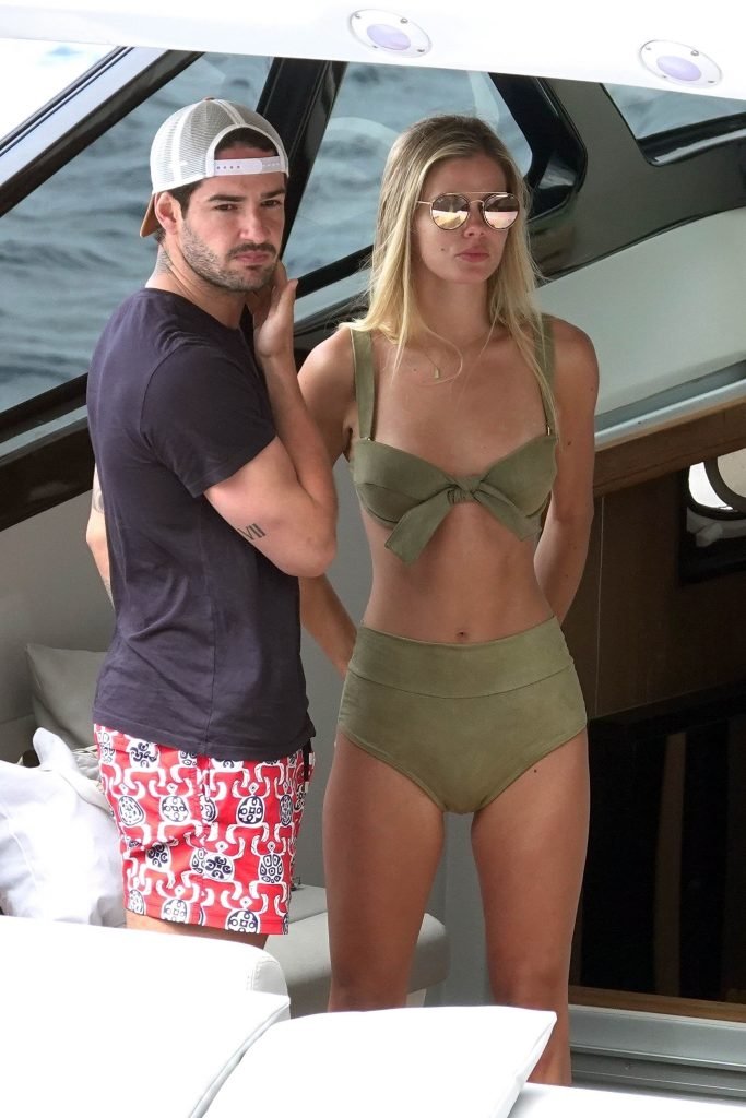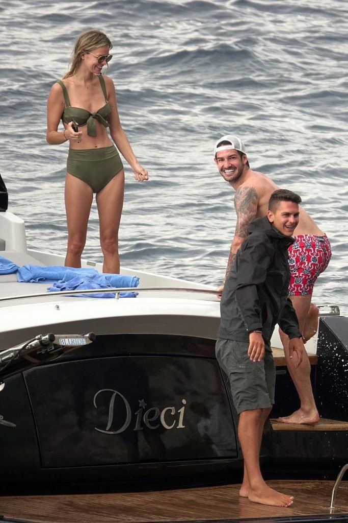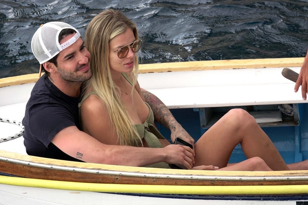 Ancienne star du football brésilien Alexandre Pato profite d’une journée en mer avec sa petite amie Danielle Knudson sur un yacht de luxe à Capri, 12/06/2018. Alexandre a été lié ce matin à un transfert au Celtic.