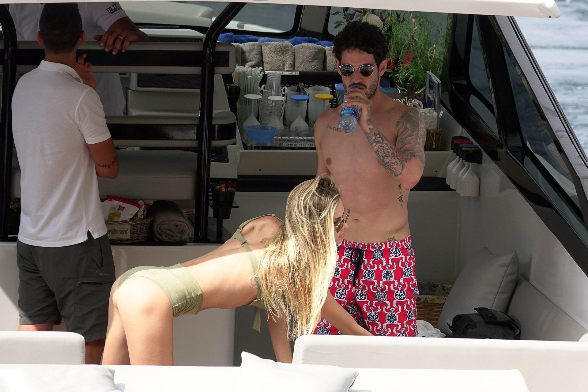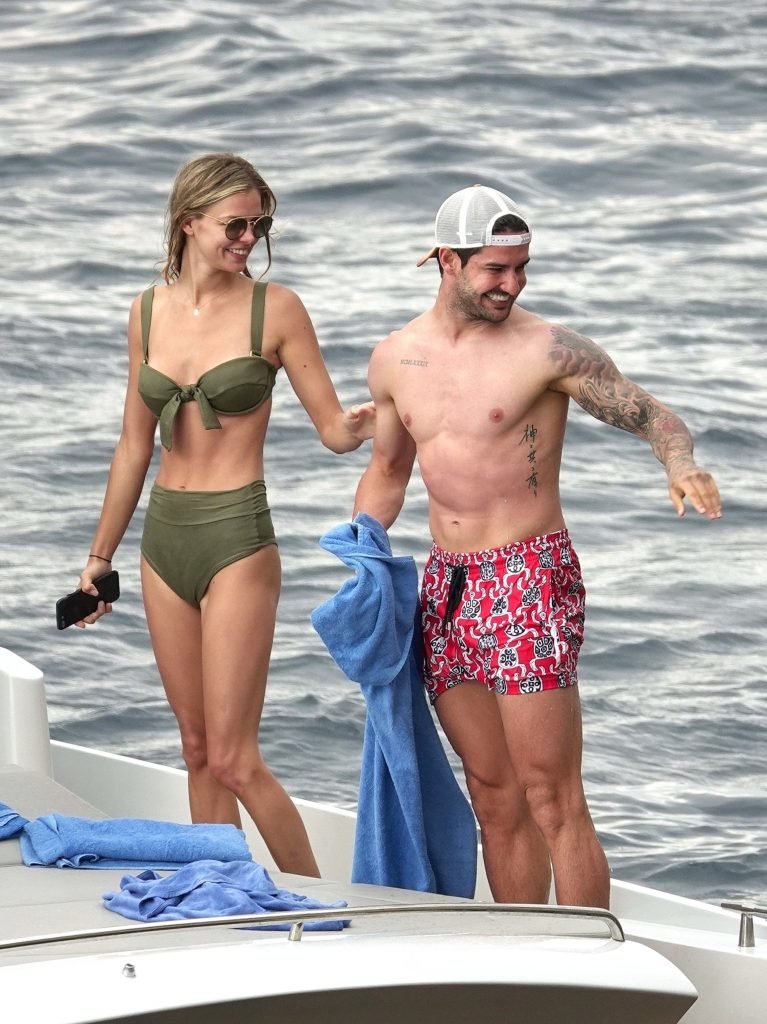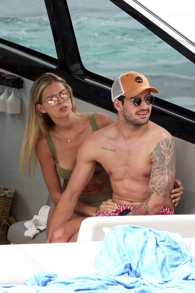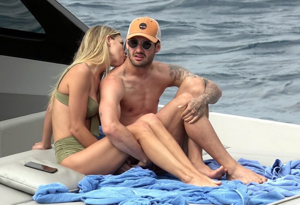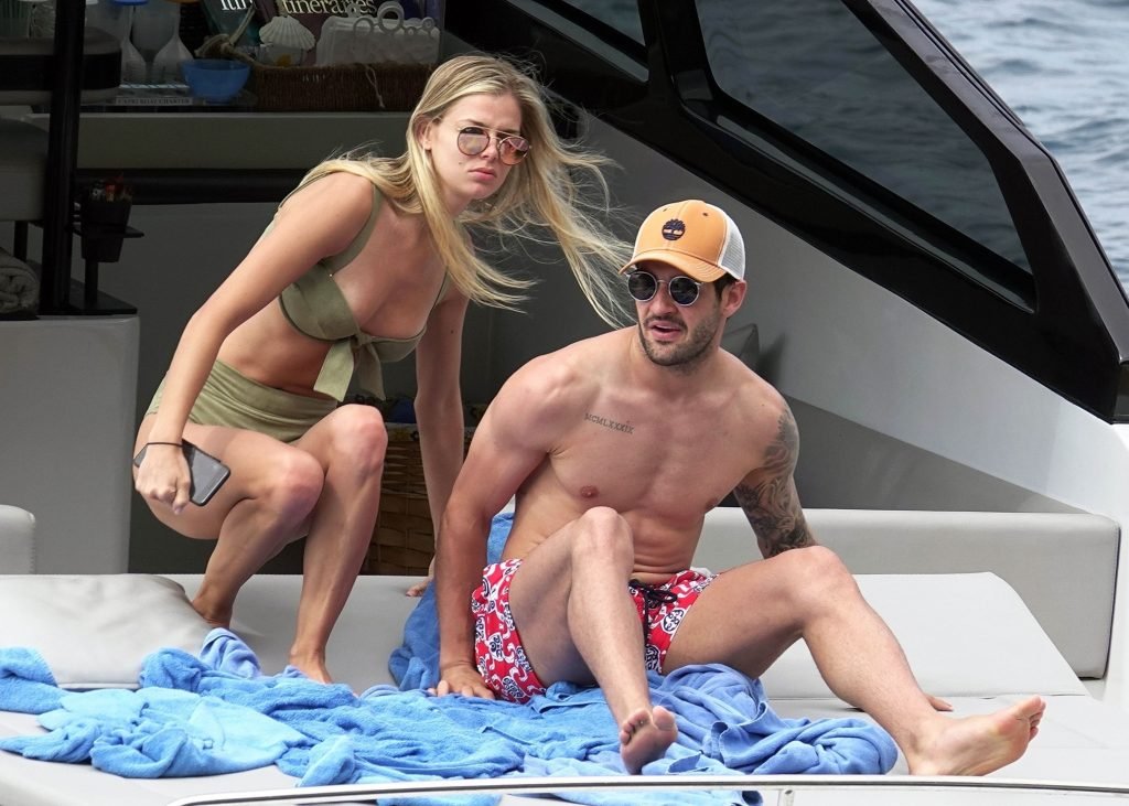 Ancienne star du football brésilien Alexandre Pato profite d’une journée en mer avec sa petite amie Danielle Knudson sur un yacht de luxe à Capri, 12/06/2018. Alexandre a été lié ce matin à un transfert au Celtic.