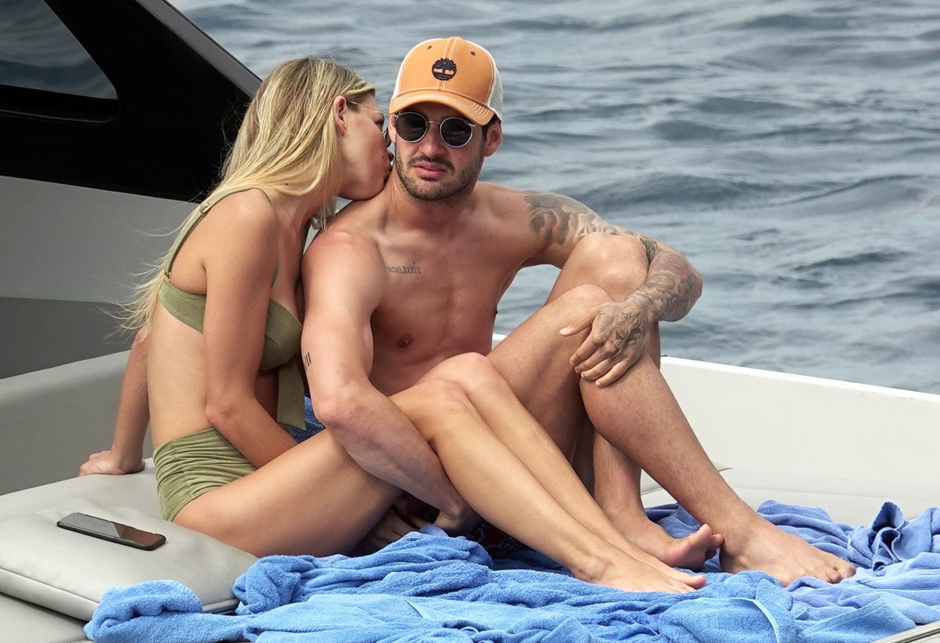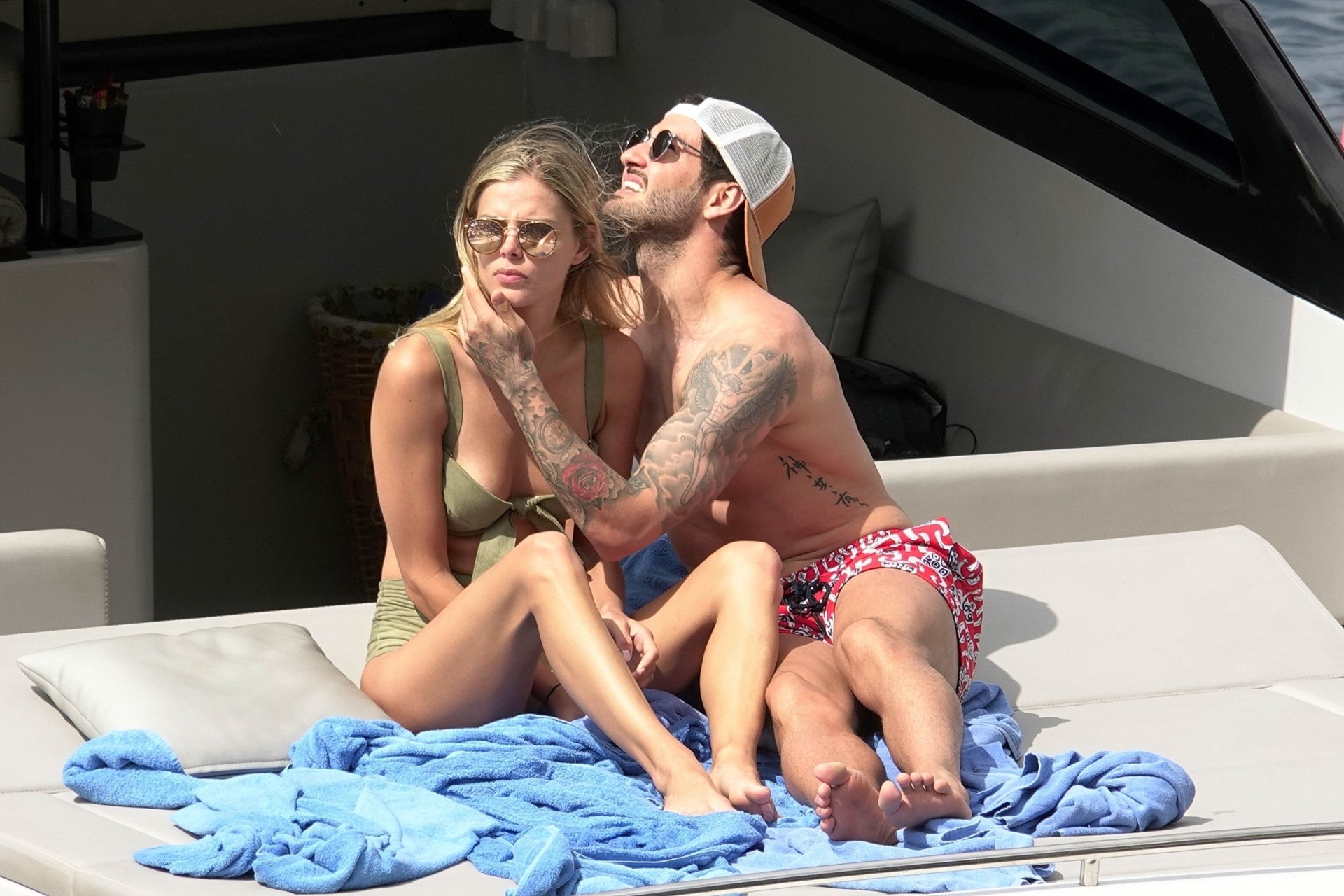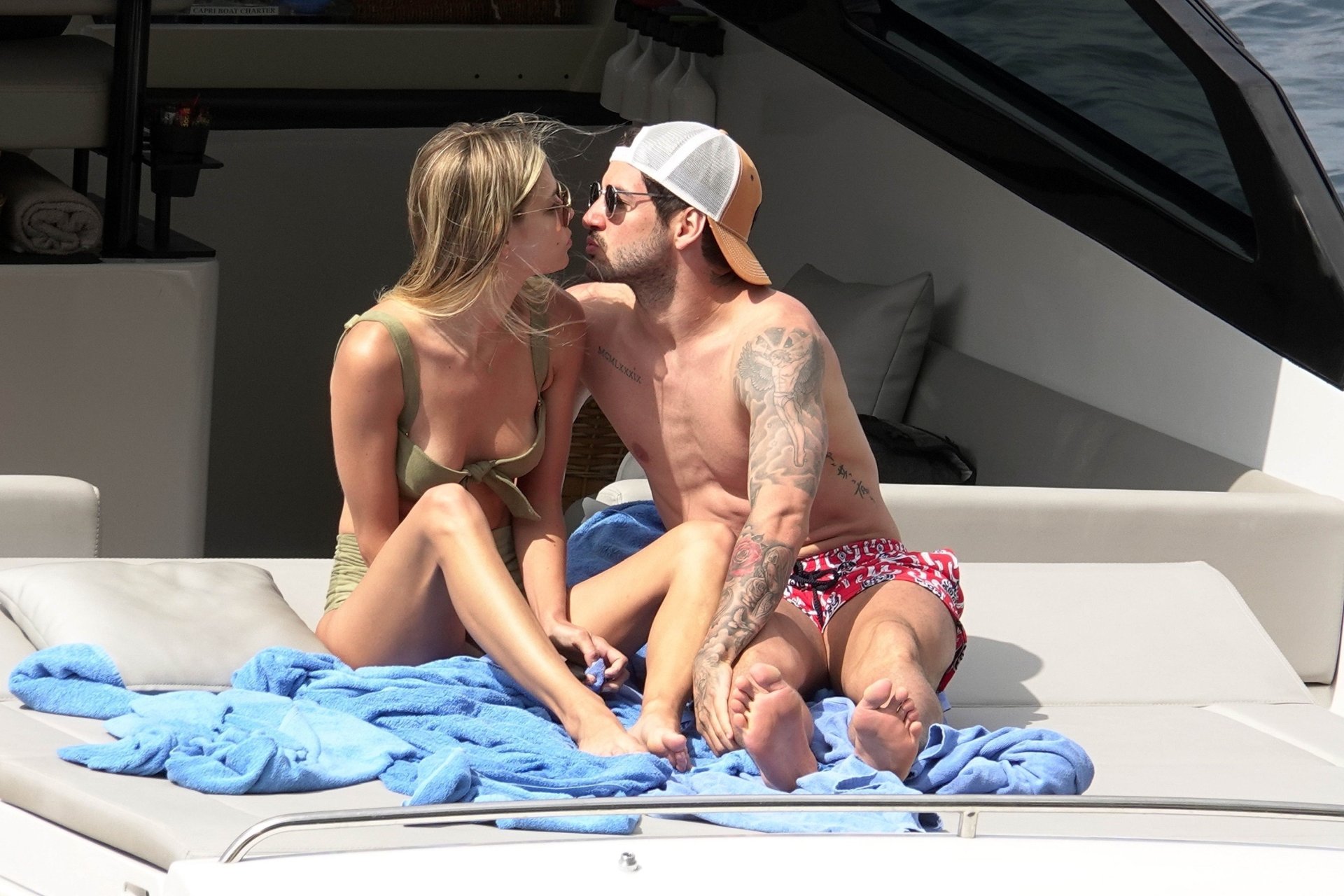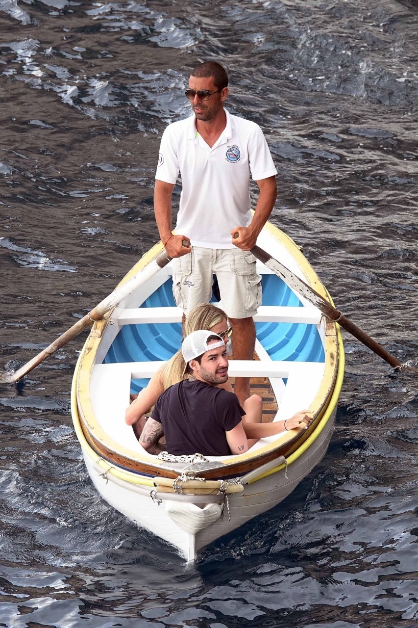 Ancienne star du football brésilien Alexandre Pato profite d’une journée en mer avec sa petite amie Danielle Knudson sur un yacht de luxe à Capri, 12/06/2018. Alexandre a été lié ce matin à un transfert au Celtic.