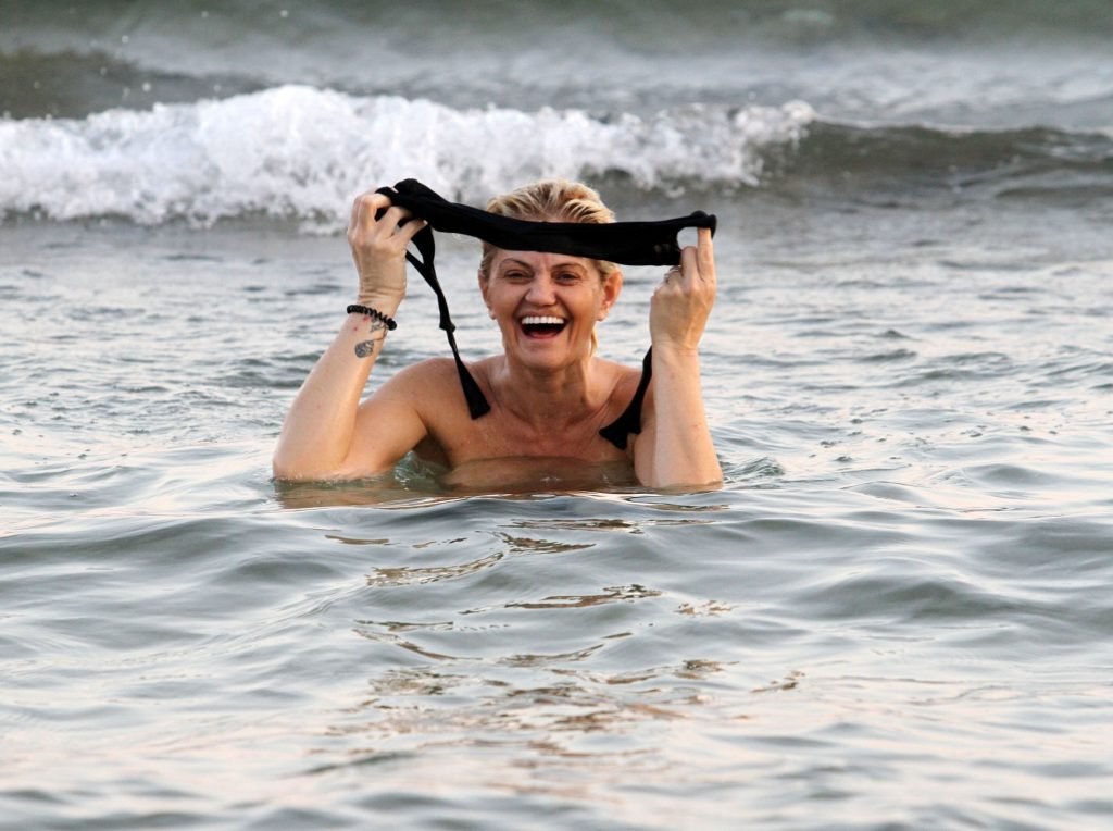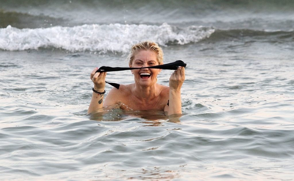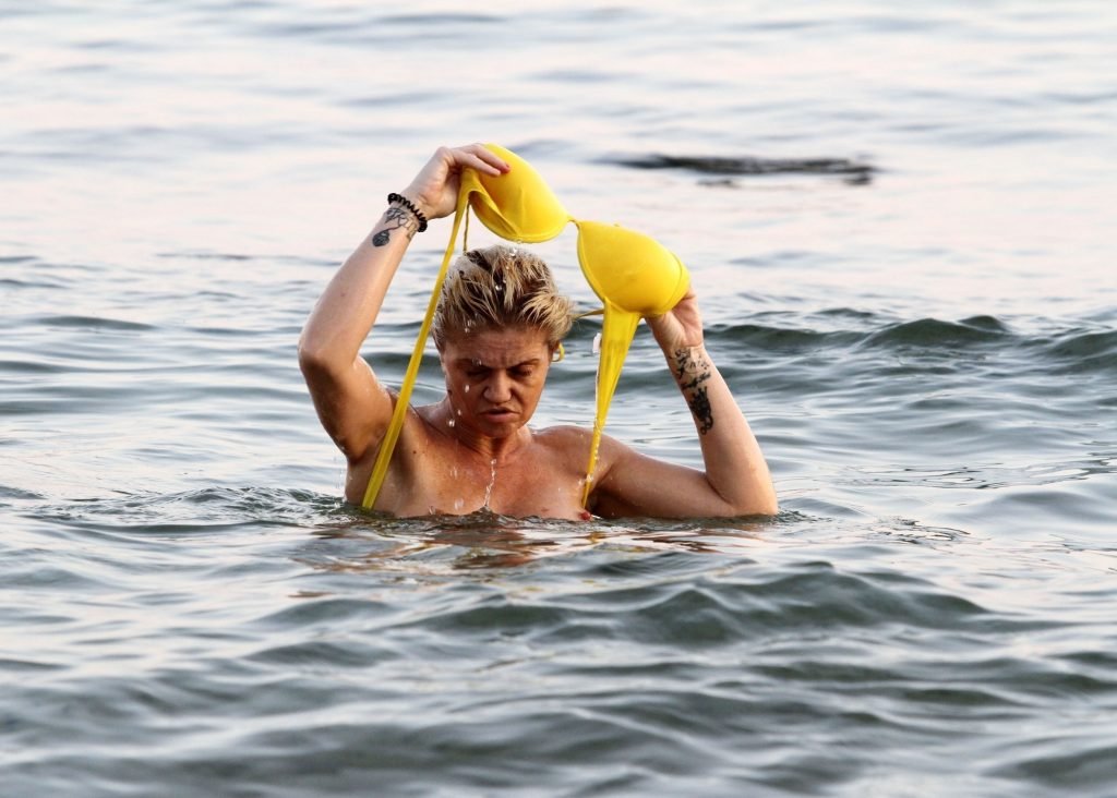 L’ancienne star de la télé-réalité “Big Brother” s’est rendue à la plage et a profité d’une baignade dans les eaux chaudes espagnoles en se déhanchant topless dans une exhibition audacieuse, exfoliant ce corps mince et tonique sexy.