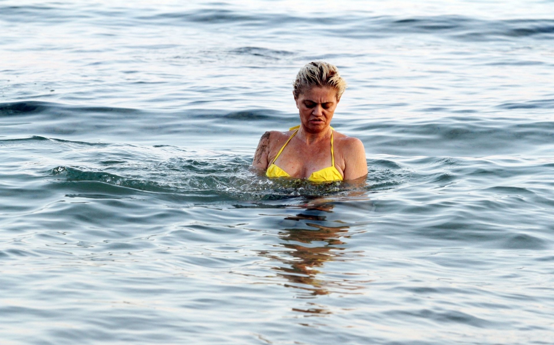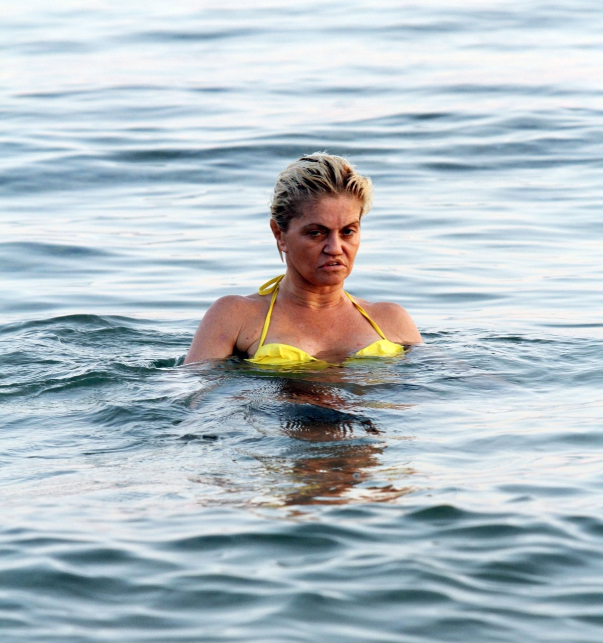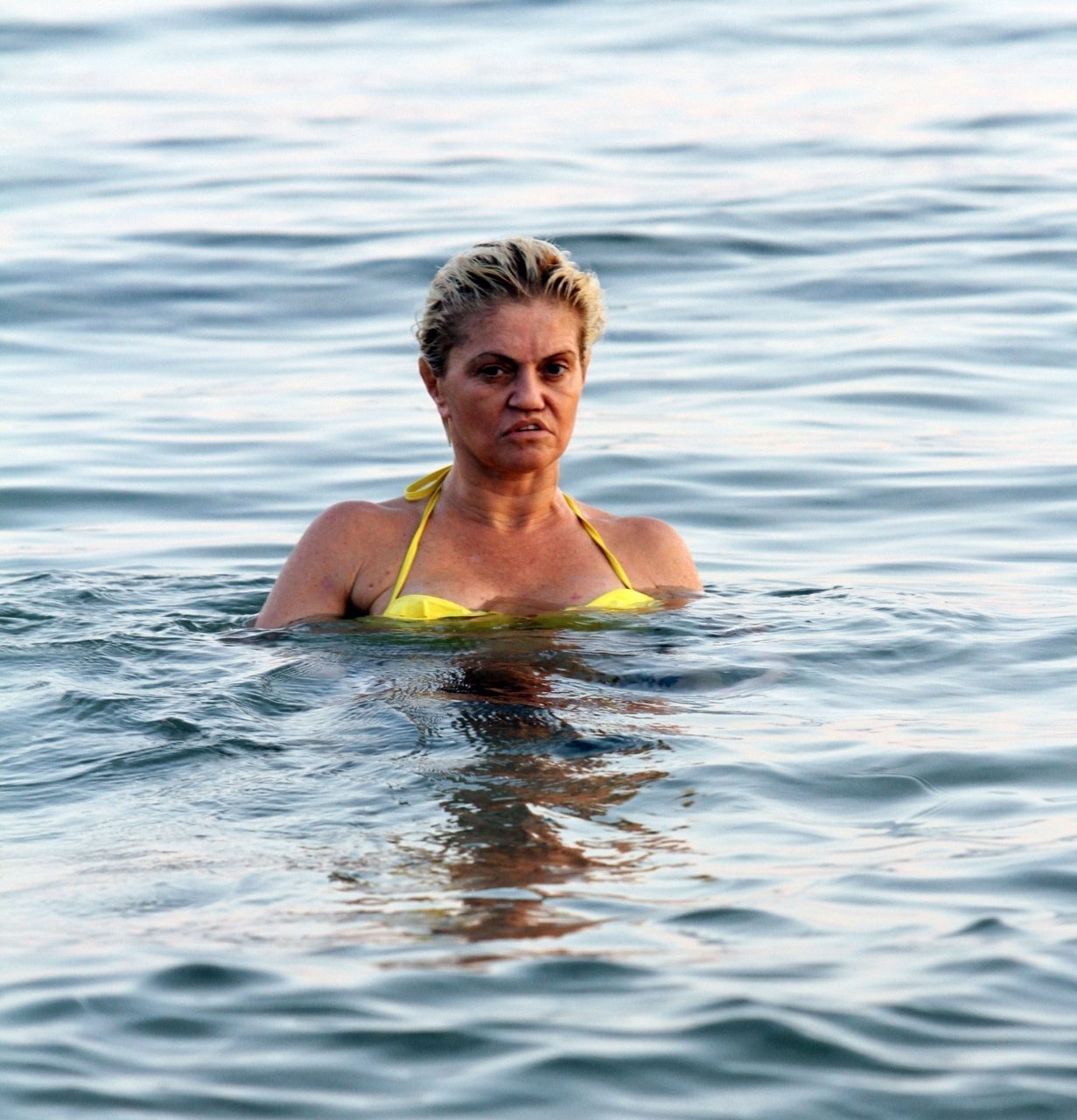 Danniella Westbrook, l’actrice britannique surtout connue pour son rôle de Sam Mitchell dans “EastEnders”, a été aperçue exhibant ses généreuses courbes dans un haut de bikini jaune canari très échancré lors de ses vacances en Espagne, le 17/08/2018.