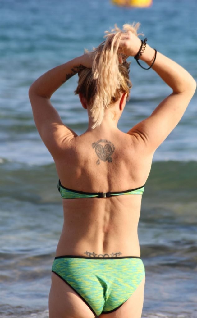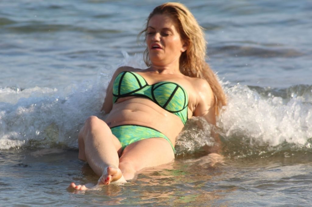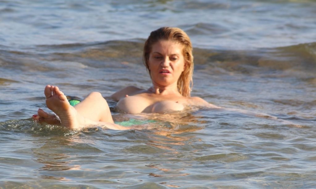 Danniella Westbrook semble passer un excellent moment en se baignant topless dans la mer en Espagne, 28/07/2017. Danniella Westbrook est une actrice britannique (EastEnders (TV) – dans le rôle de Sam Mitchell) et animatrice TV. Âge : 43 ans