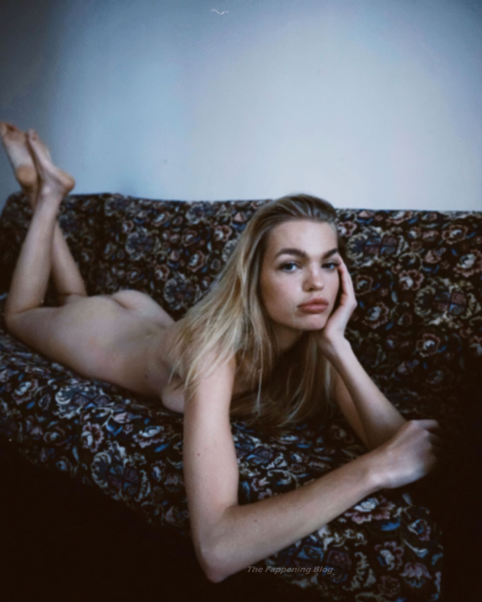 Le mannequin néerlandais Daphne Groeneveld pose entièrement nue sur un canapé, montrant ses seins nus (censurés) et ses fesses dans une nouvelle séance photo par Kat Irlin (2021).