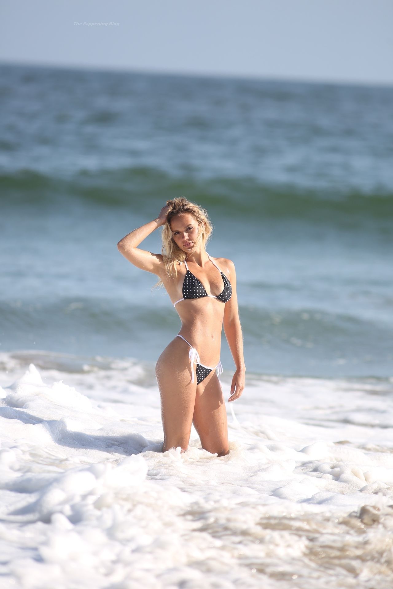 Dasha Inyutkina pose pour une séance photo sexy en bikini pour la marque 138 à Malibu (mars 2021). La blonde sexy avait l’air incroyable en portant un bikini à pois révélateur et une bouteille de 138 Water !
