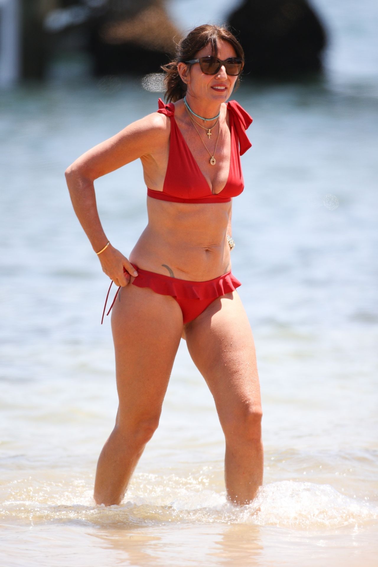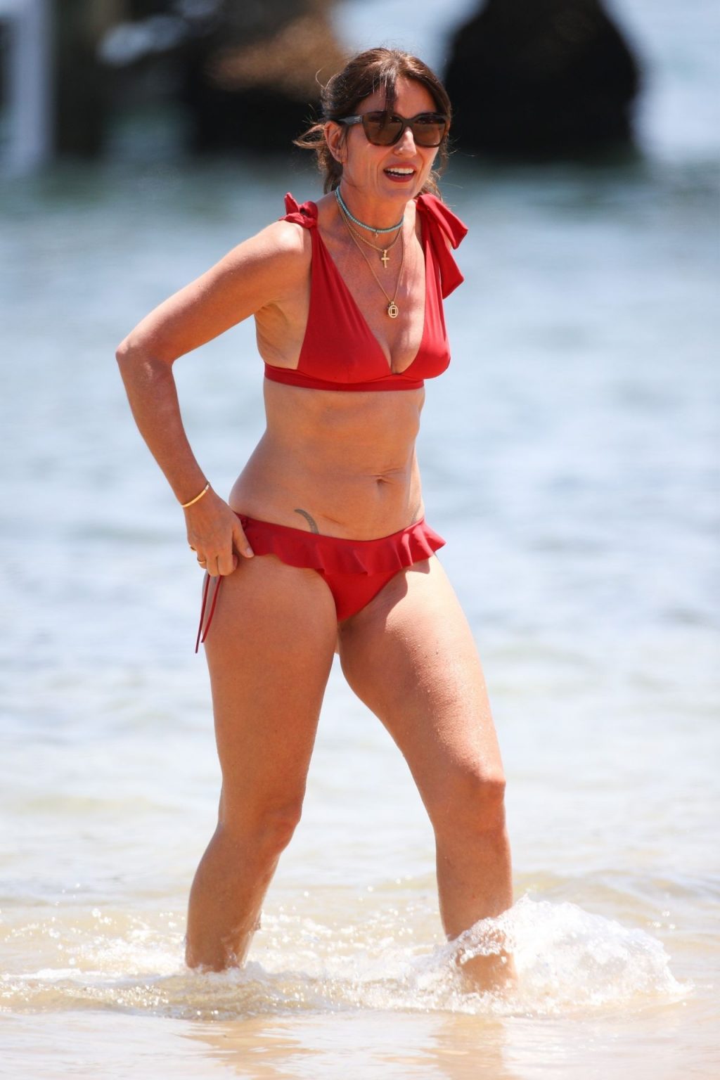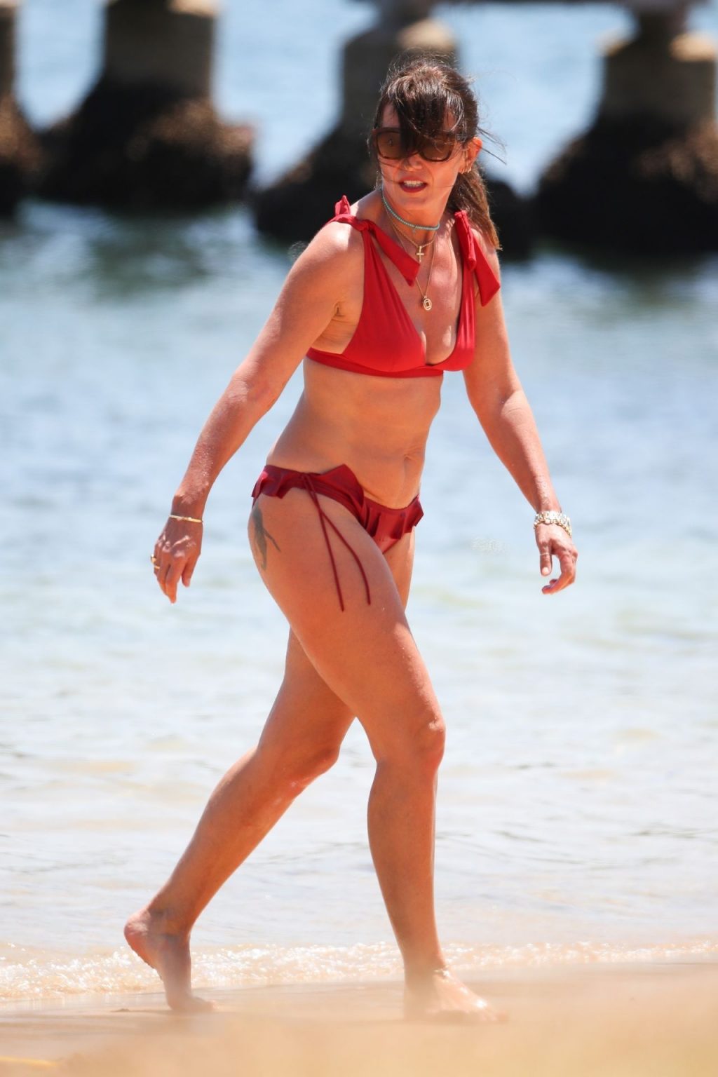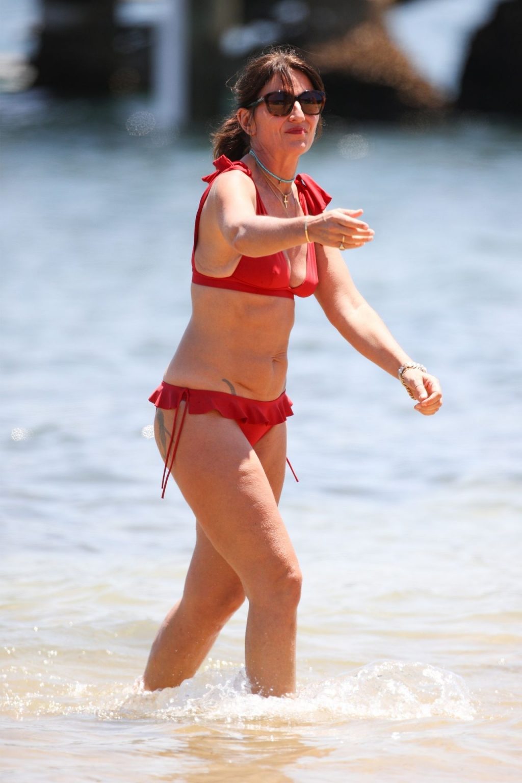 L’actrice anglaise, chanteuse et présentatrice télé Davina McCall (52 ans) a été photographiée en train de profiter d’une autre journée ensoleillée à la plage, portant un bikini rouge à Sydney, le 28/12/2019.