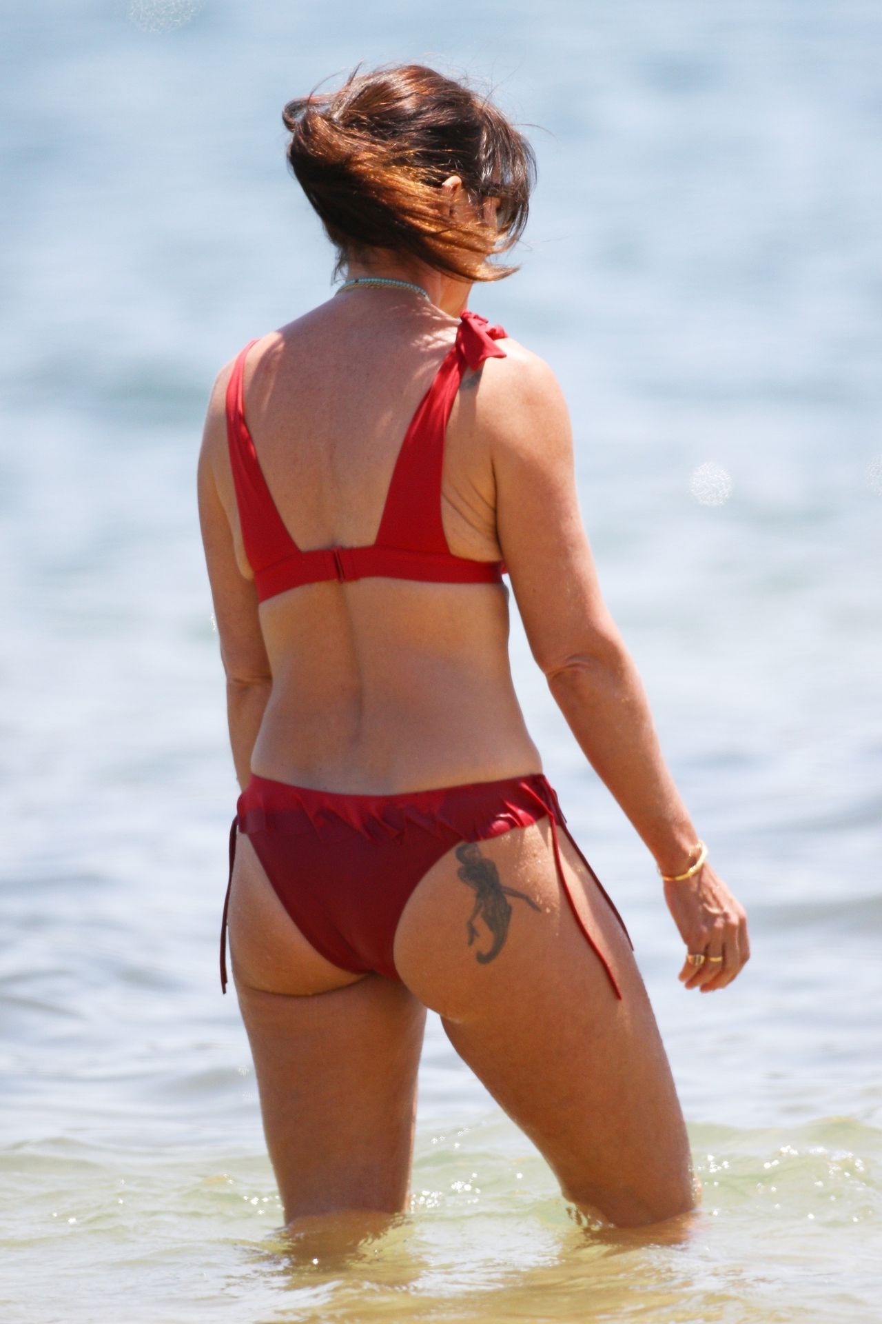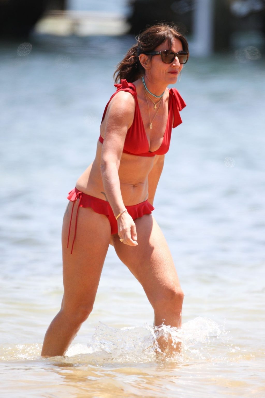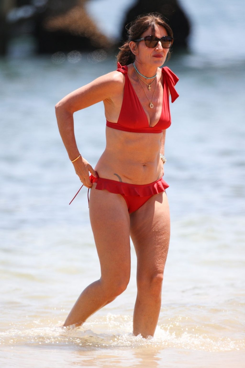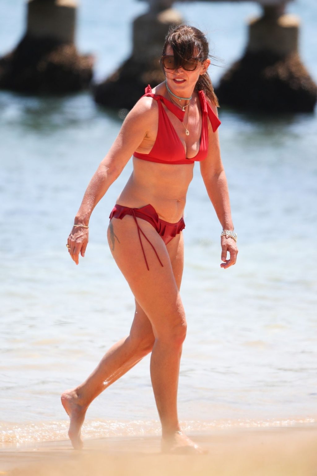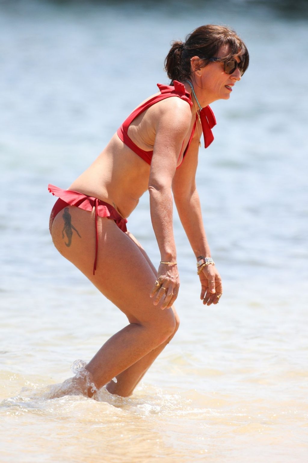 L’actrice anglaise, chanteuse et présentatrice télé Davina McCall (52 ans) a été photographiée en train de profiter d’une autre journée ensoleillée à la plage, portant un bikini rouge à Sydney, le 28/12/2019.