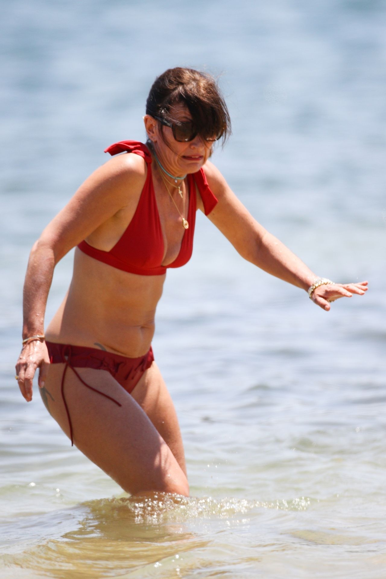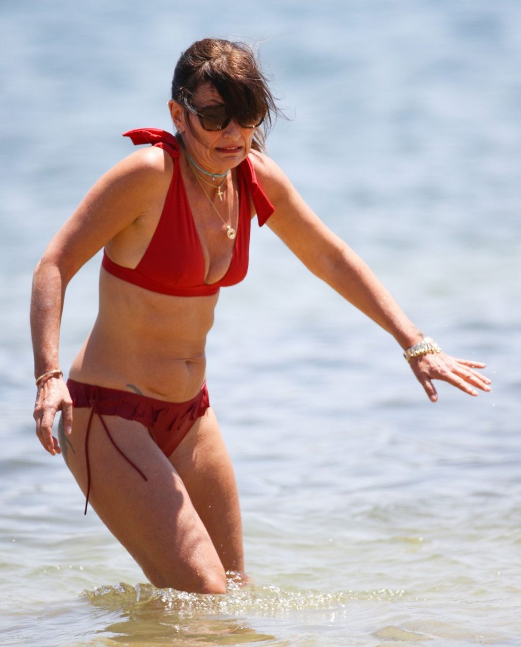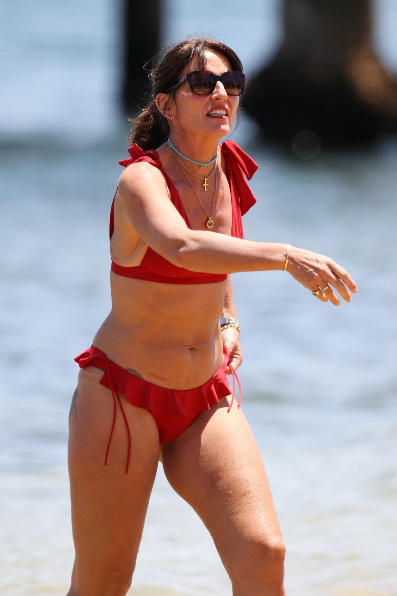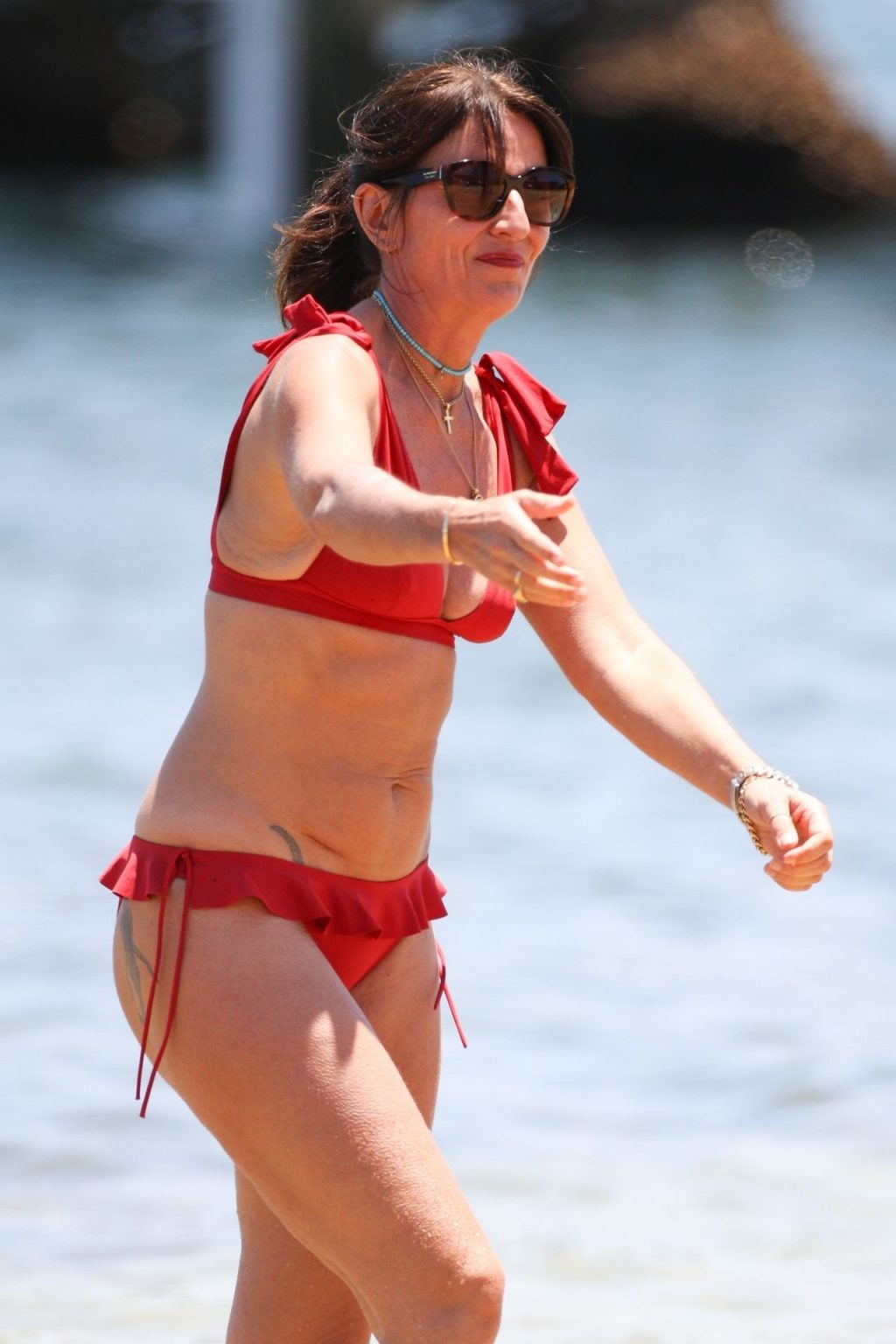 L’actrice anglaise, chanteuse et présentatrice télé Davina McCall (52 ans) a été photographiée en train de profiter d’une autre journée ensoleillée à la plage, portant un bikini rouge à Sydney, le 28/12/2019.