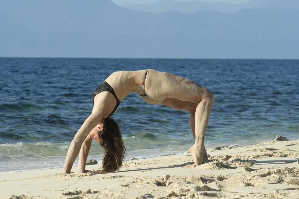Pourquoi l'enlever si tu vas juste couvrir tes seins avec tes mains ? Aussi, cette photo de contorsion est flippante, comme si elle appartenait à un film d'horreur.