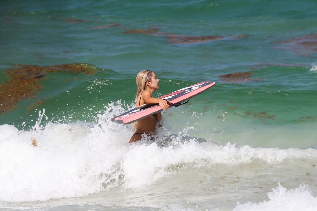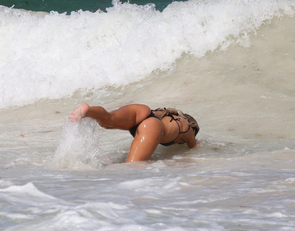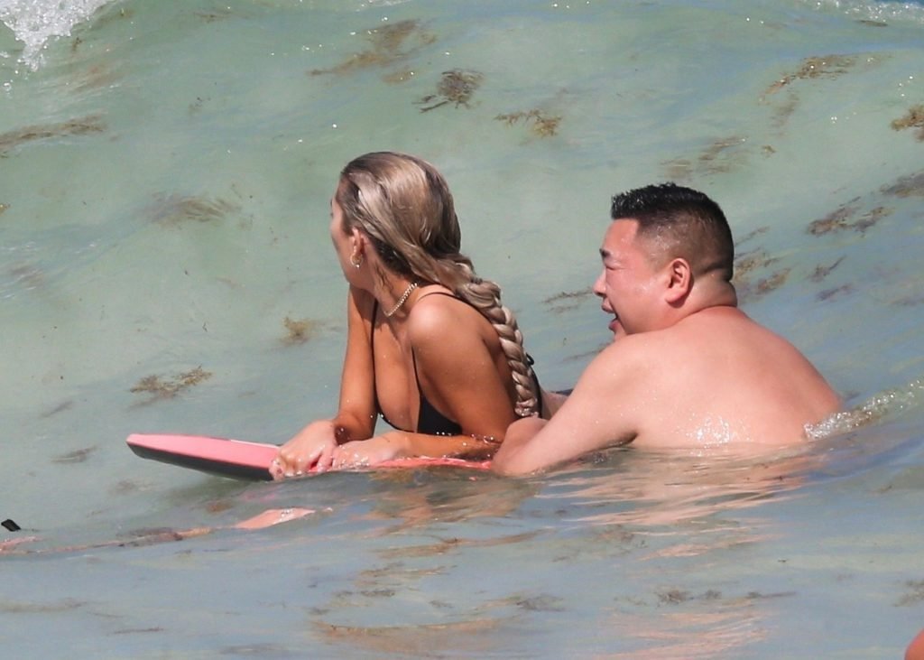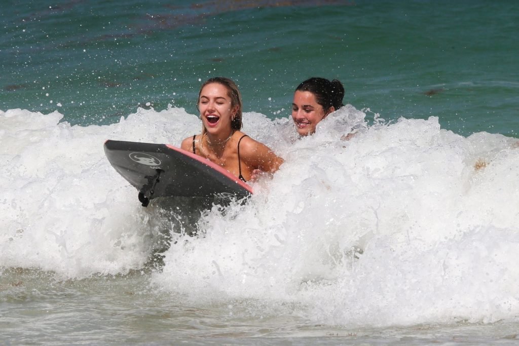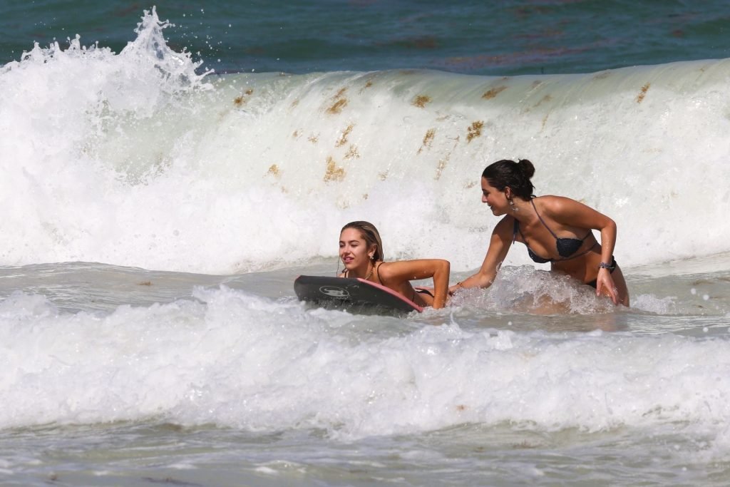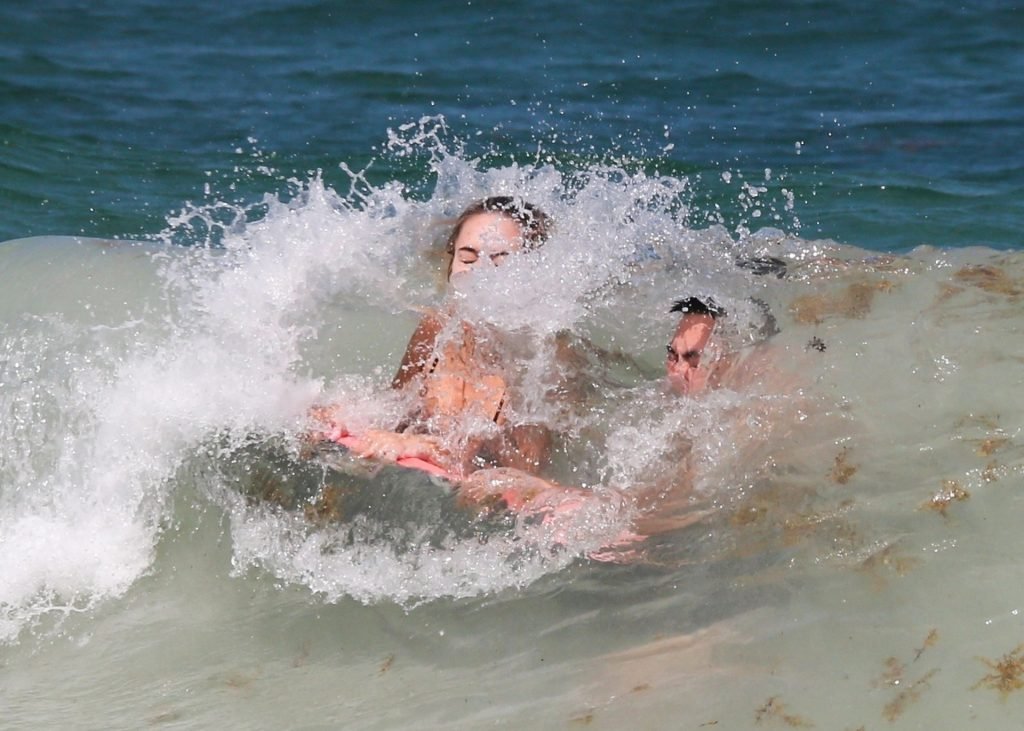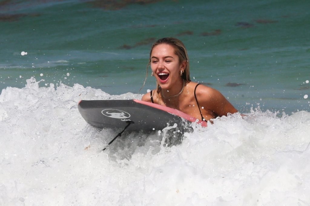 Le mannequin, fille des acteurs Lisa Rinna et Harry Hamlin, a montré sa silhouette affinée dans un tout petit bikini noir et arborait des extensions de cheveux blonds sexy. Hamlin s’est amusée dans les eaux tropicales avec des amis et a pris du plaisir avec une planche de bodyboard.