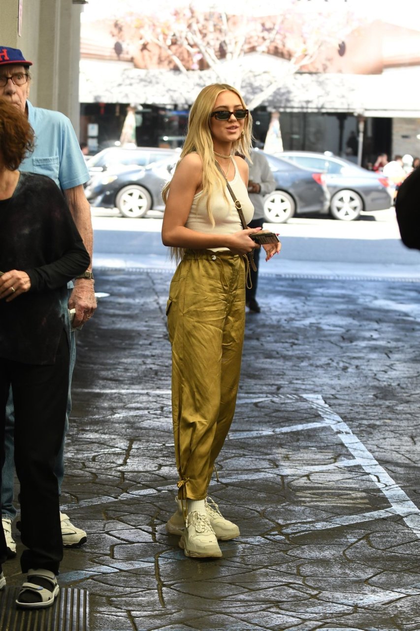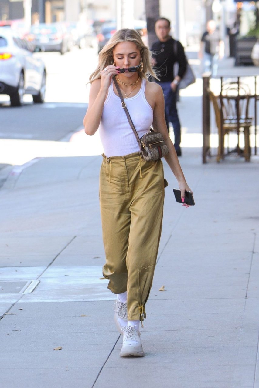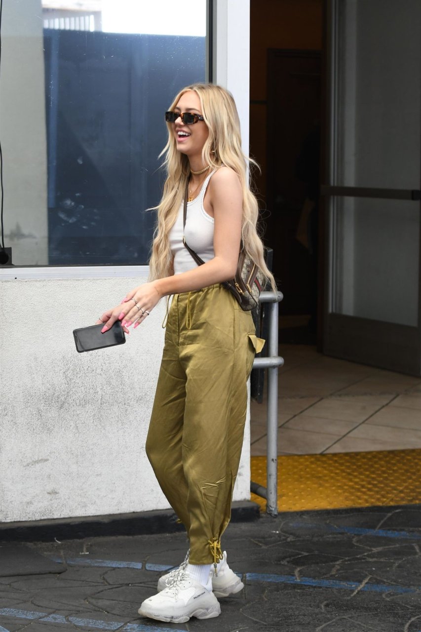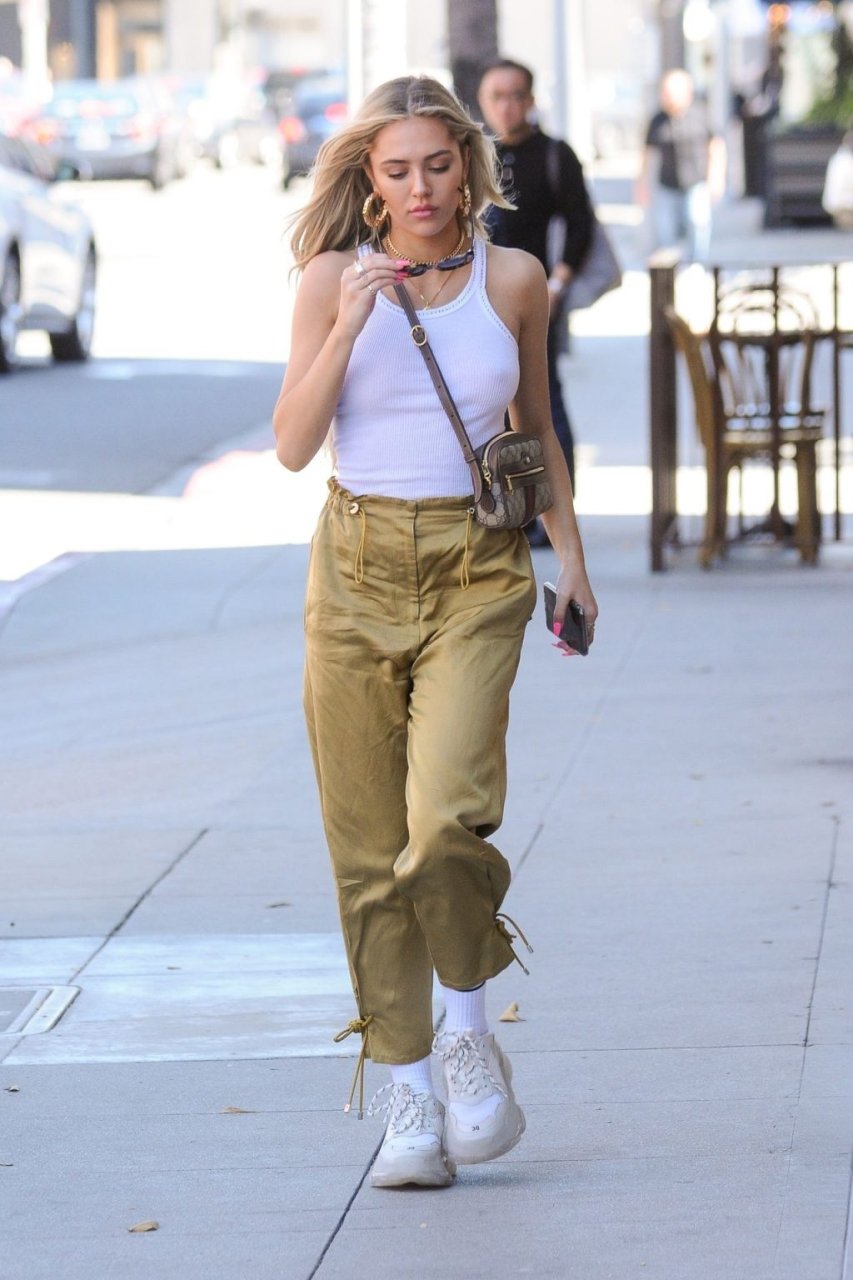 Delilah Hamlin visite un salon de soins de la peau et déjeune chez E Baldiin à Beverly Hills, le 18/04/2019. La star américaine des réseaux sociaux de 20 ans portait un t-shirt blanc sans soutien-gorge. Elle est membre VIP du club No Bra !