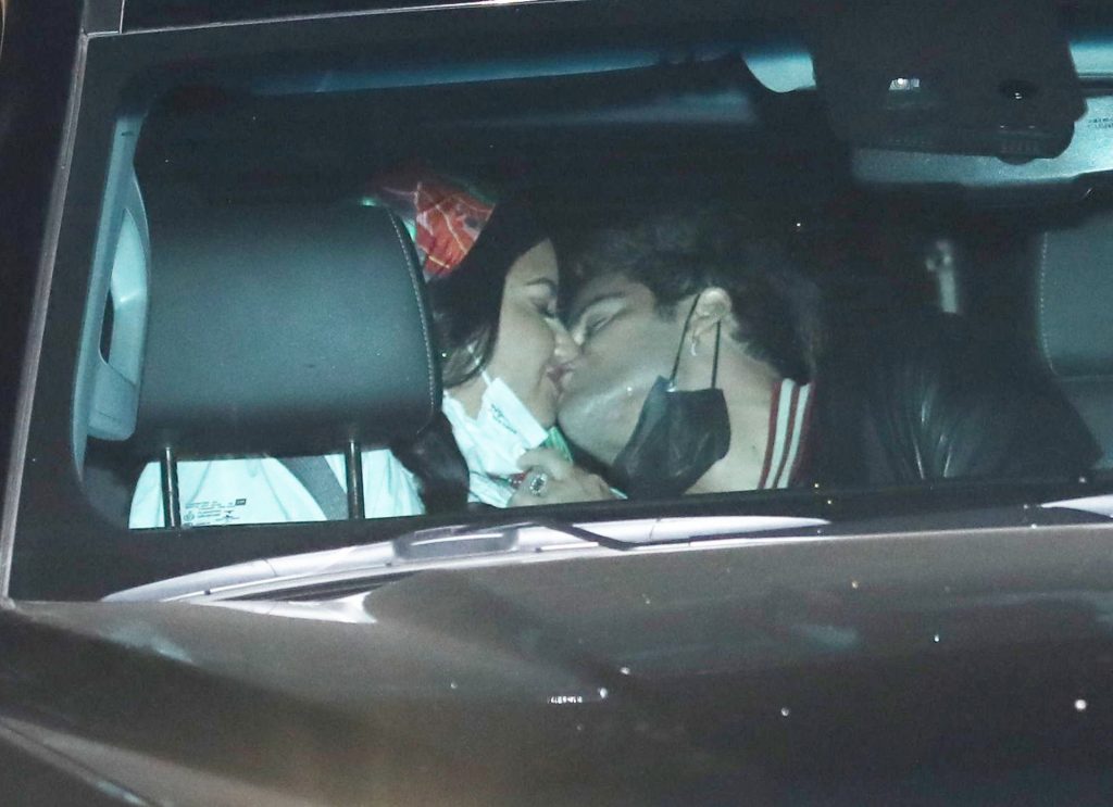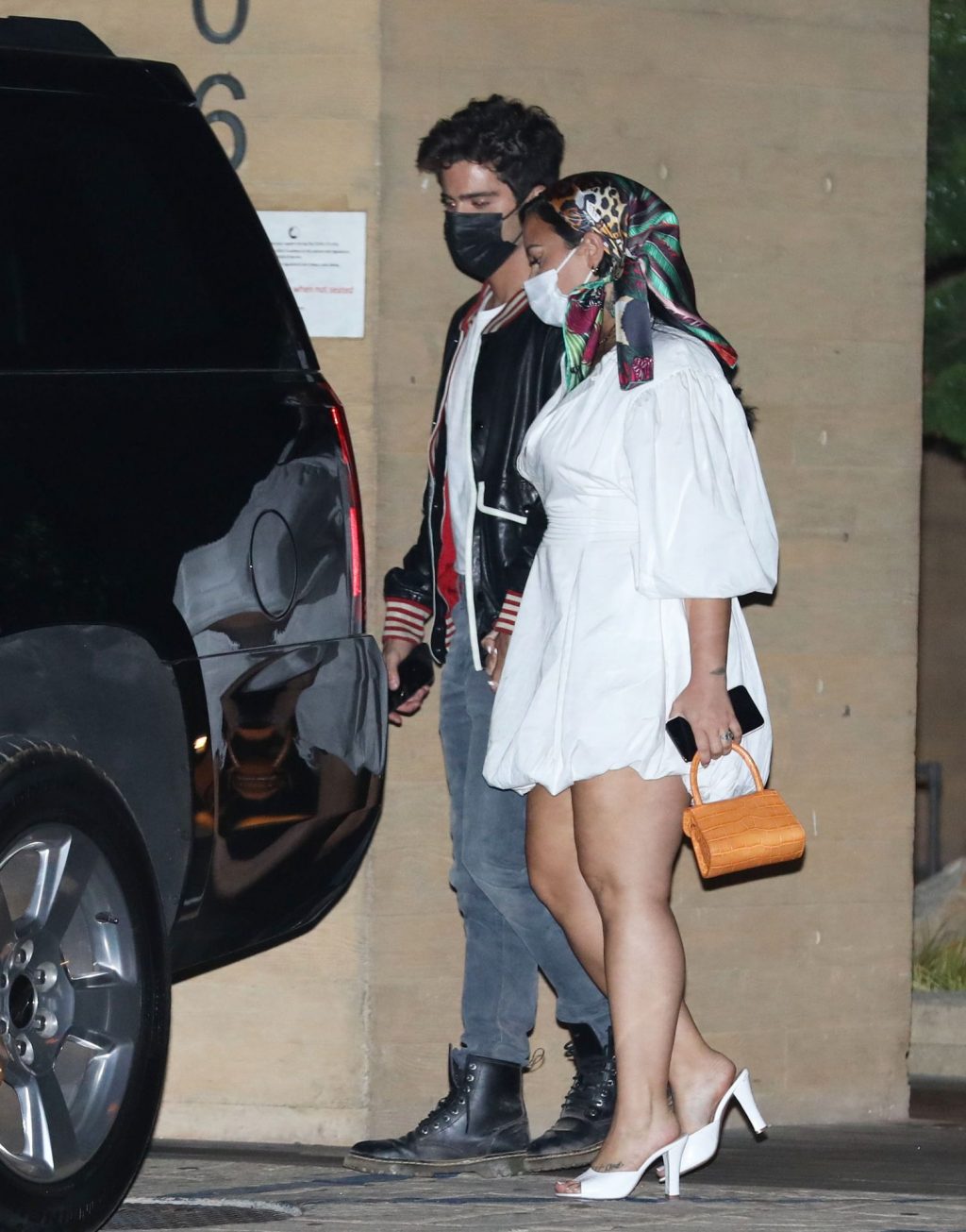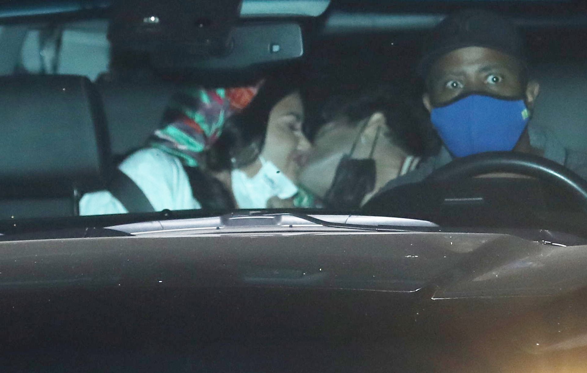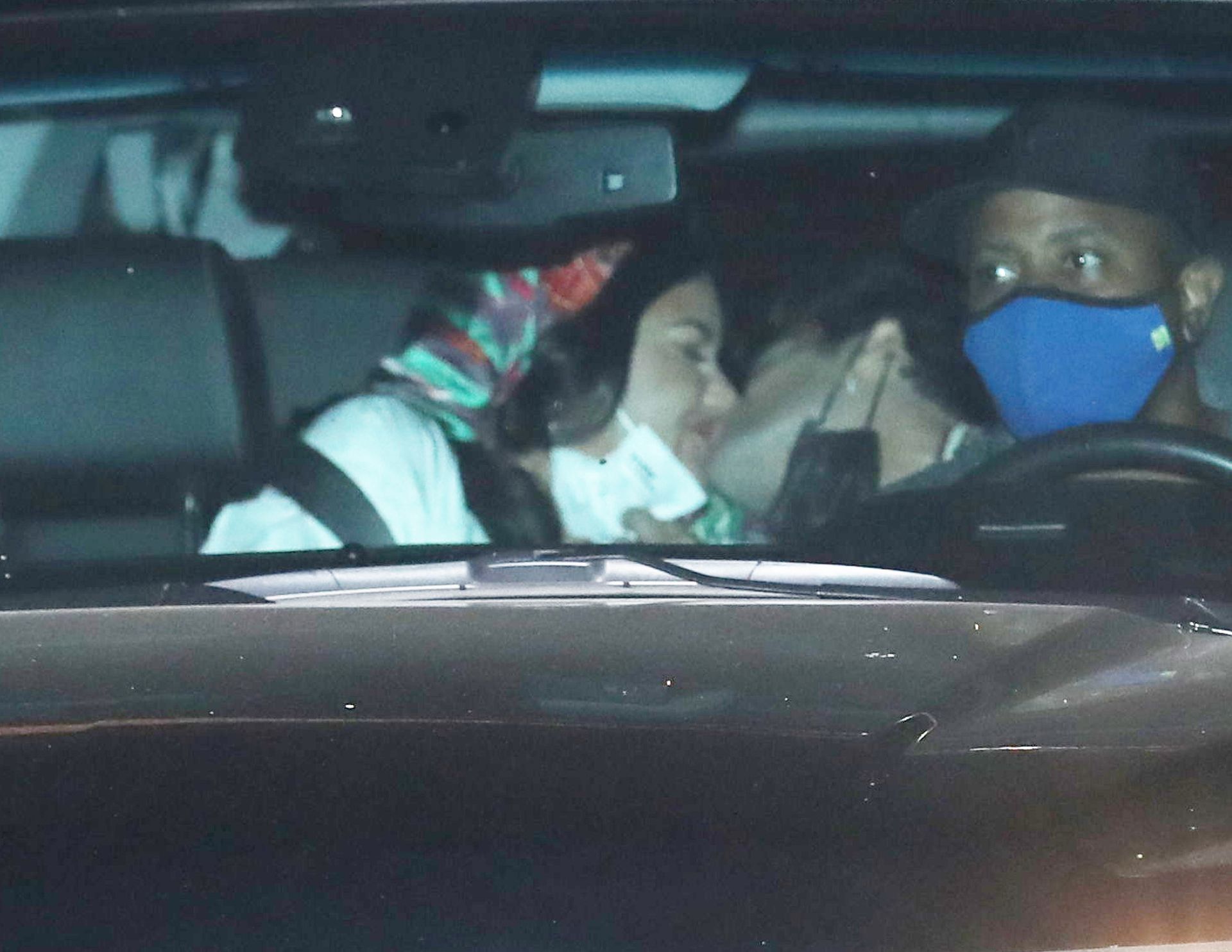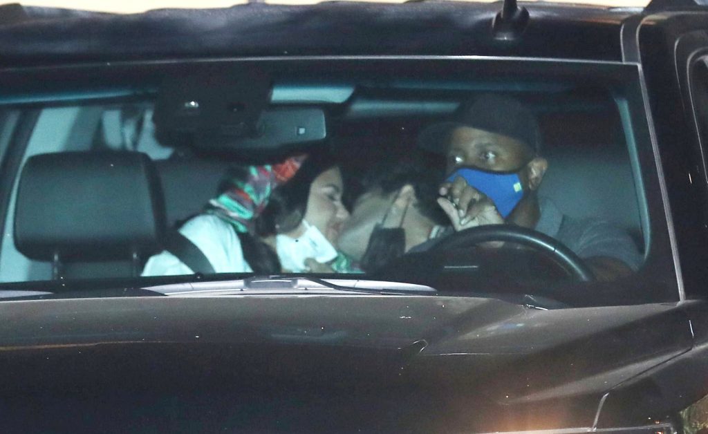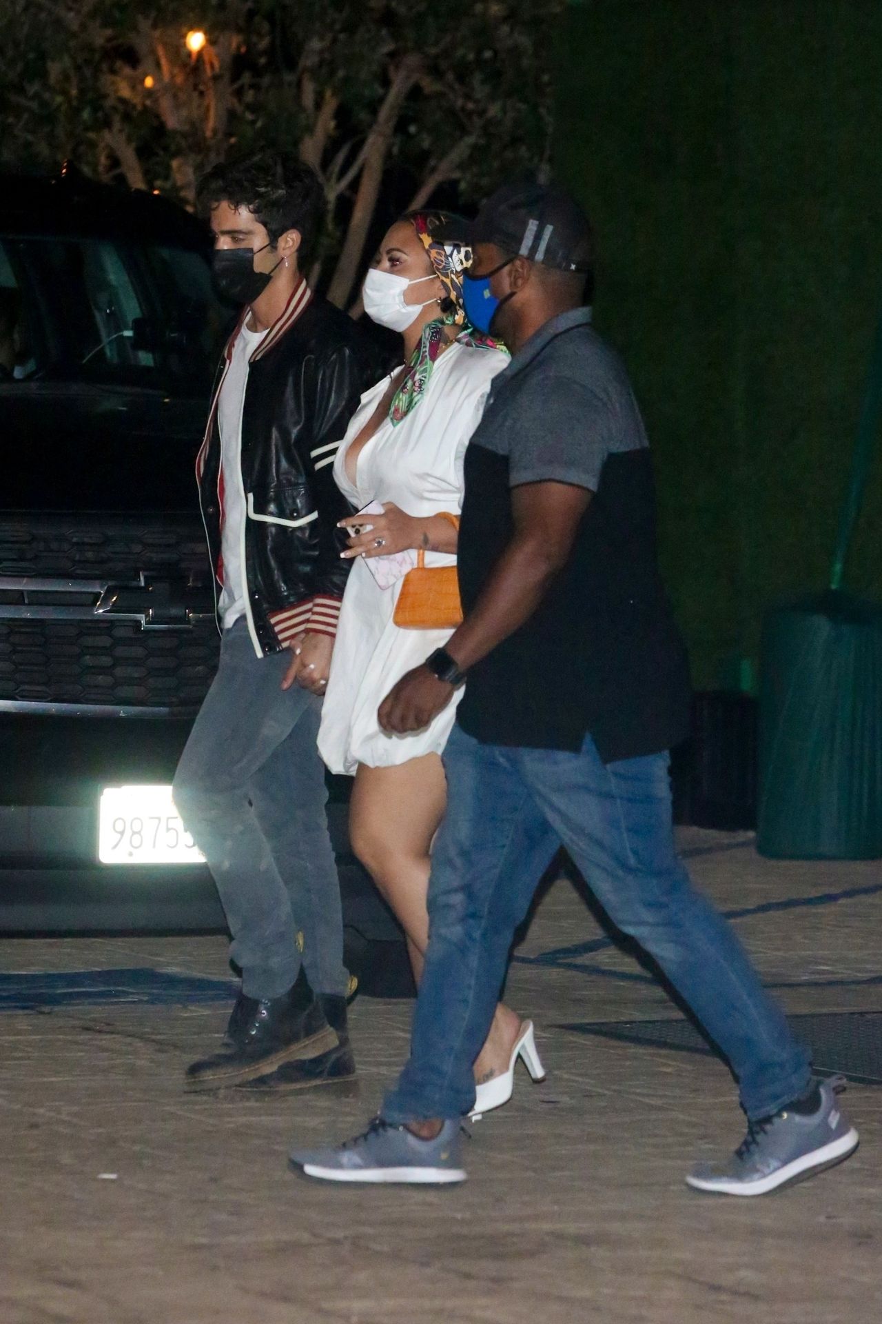 La chanteuse Demi Lovato et son fiancé Max Ehrich se tiennent la main alors qu’ils arrivent pour un dîner tardif au Nobu à Malibu, le 29/08/2020.
