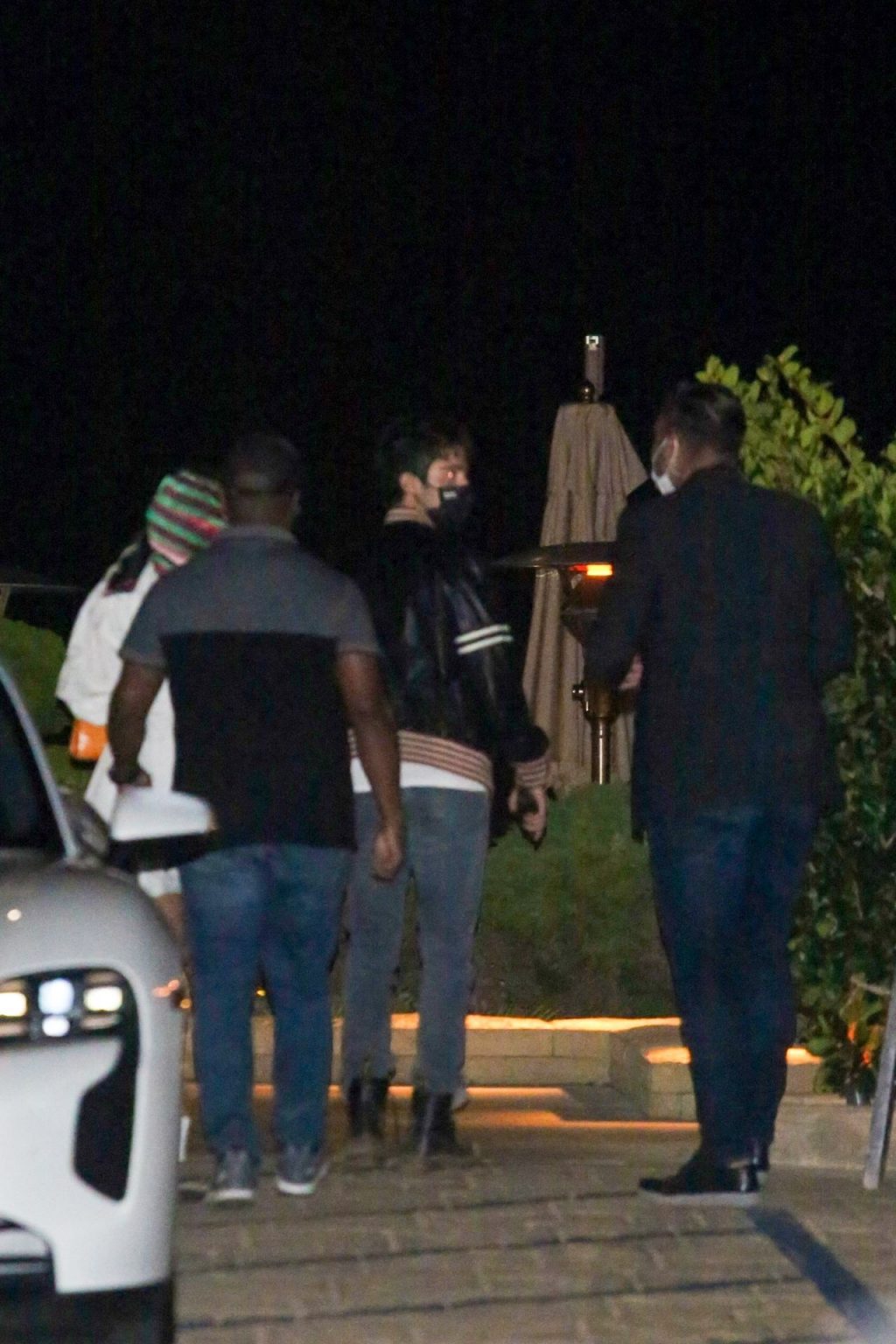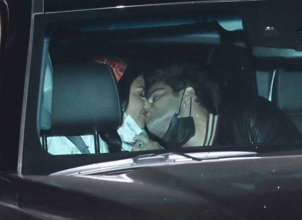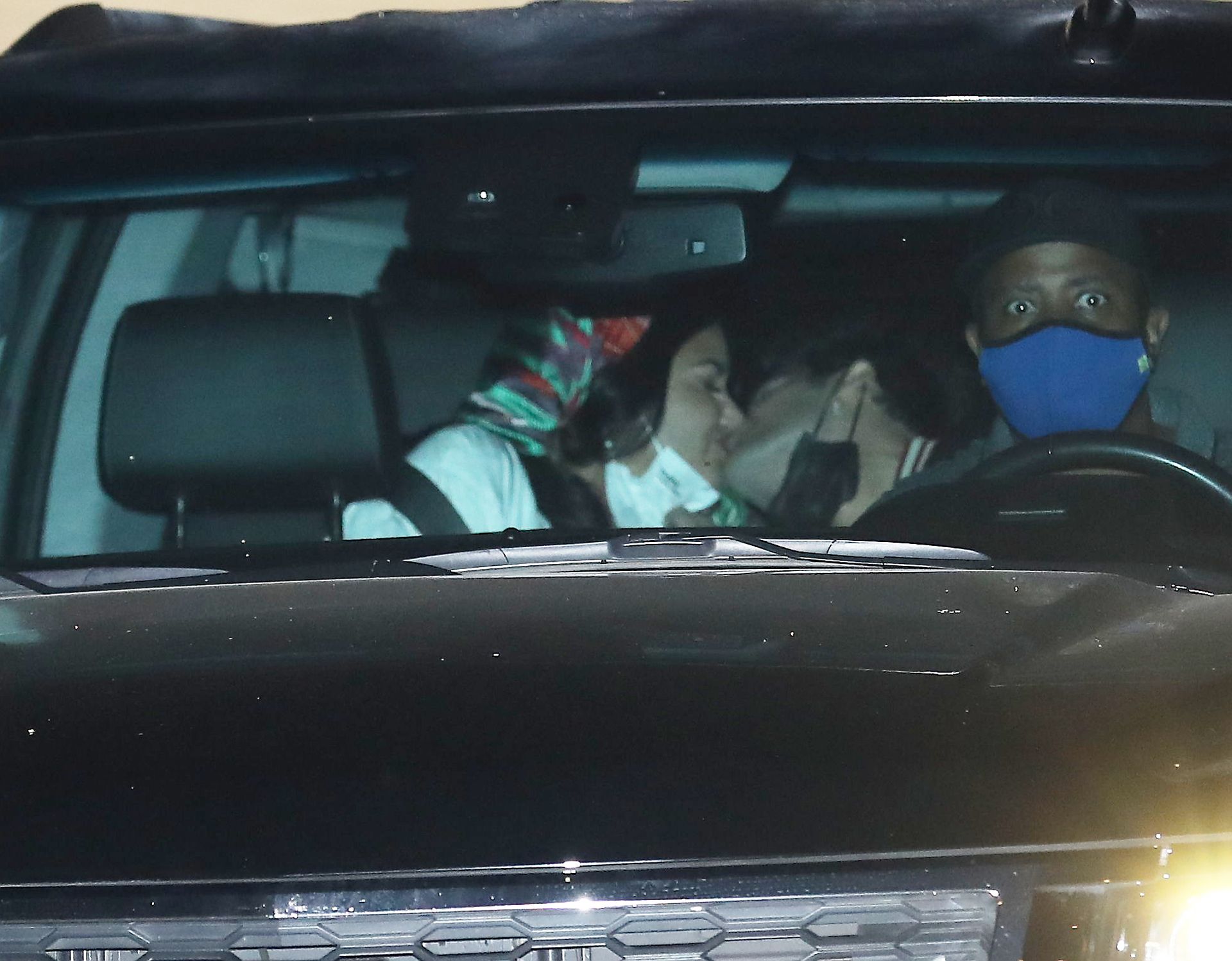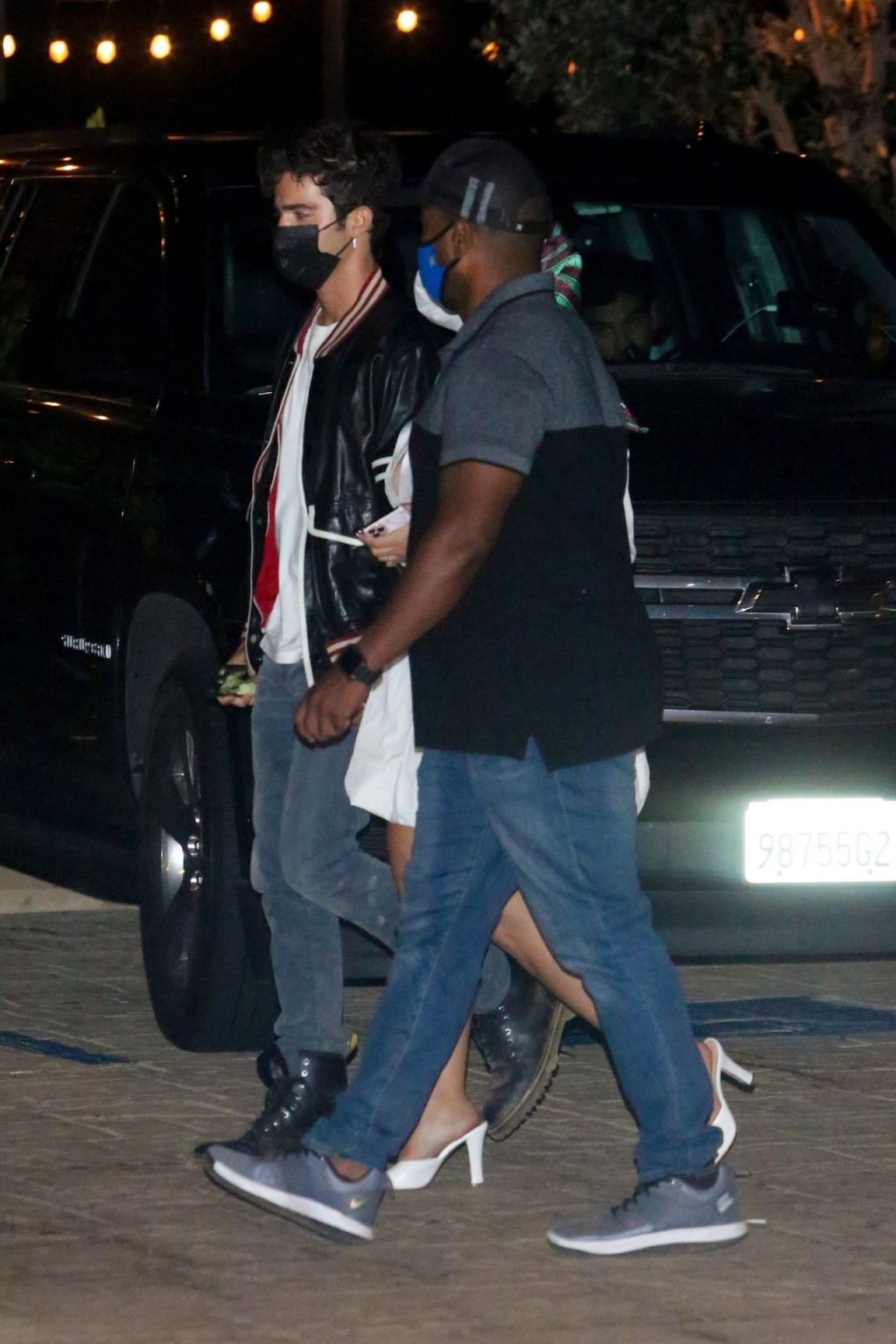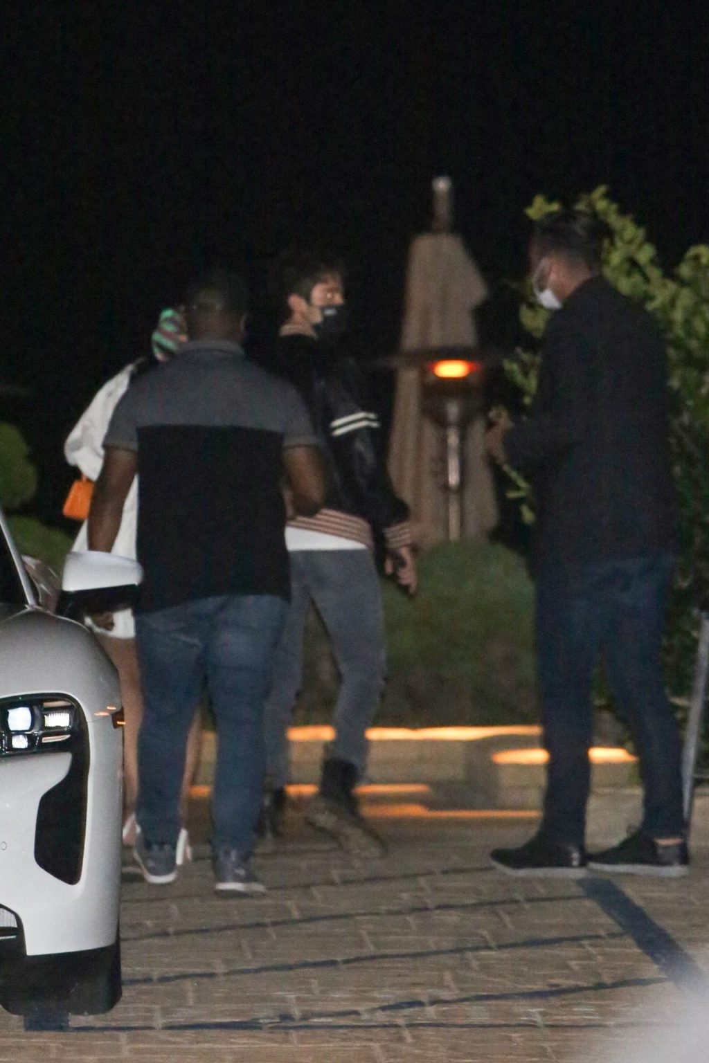 La chanteuse Demi Lovato et son fiancé Max Ehrich se tiennent la main alors qu’ils arrivent pour un dîner tardif au Nobu à Malibu, le 29/08/2020.