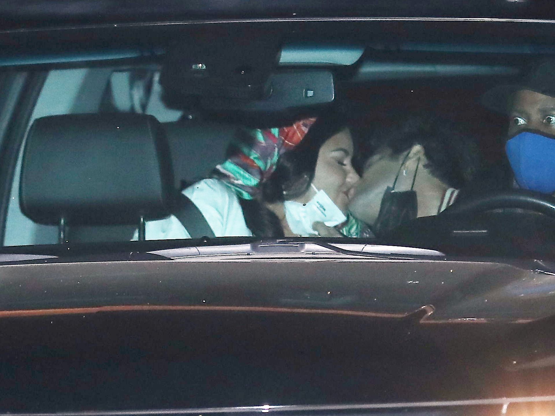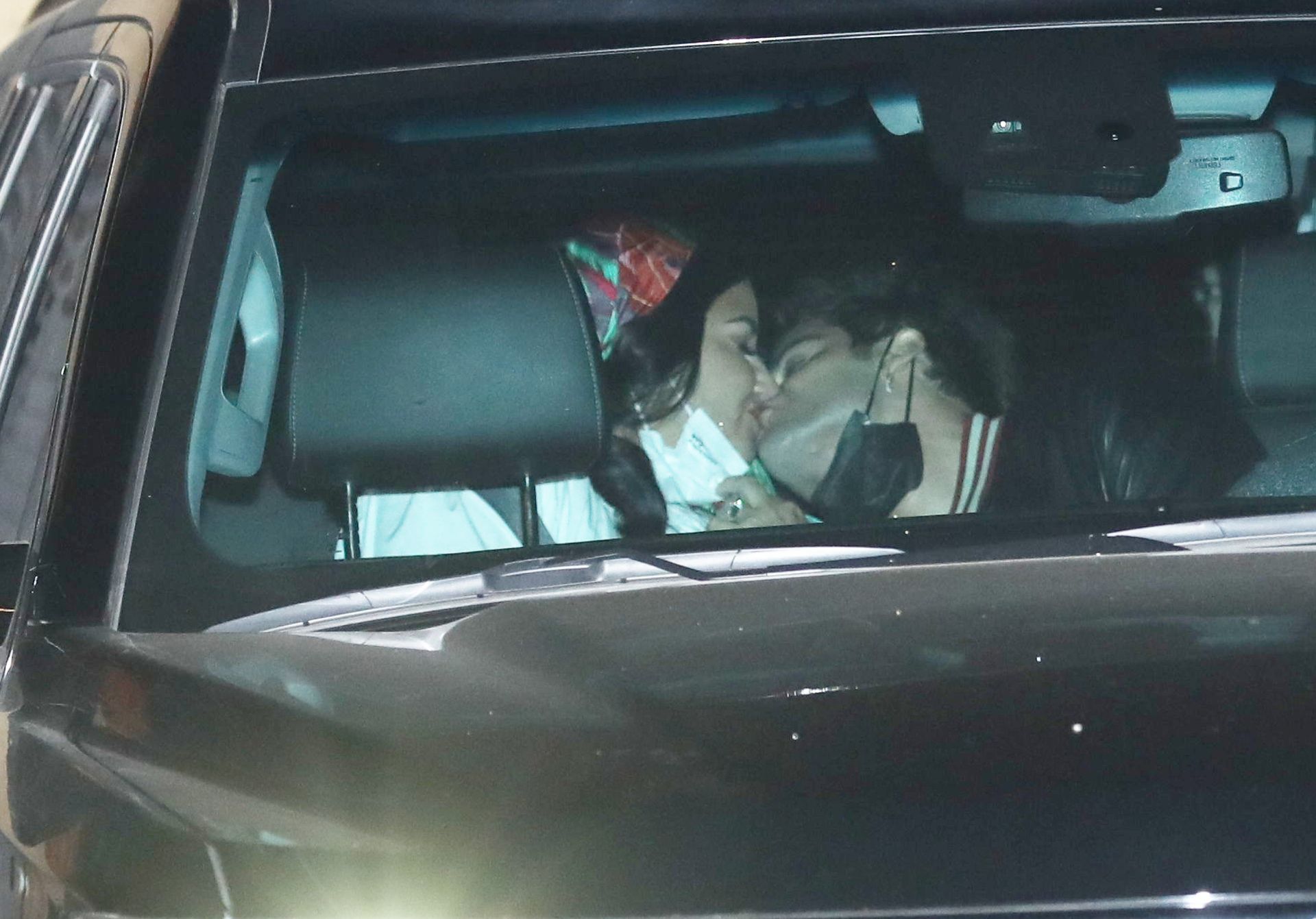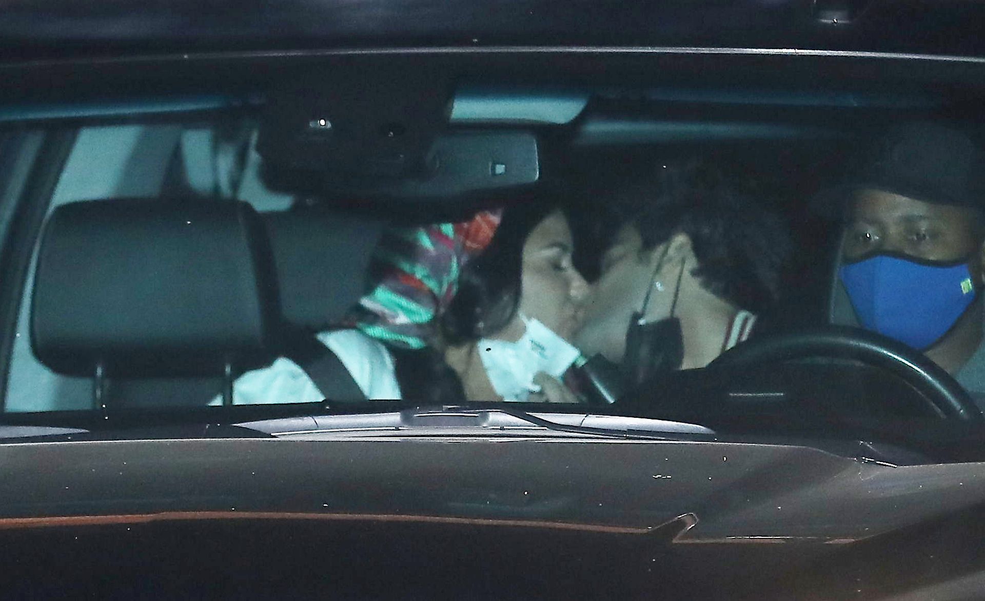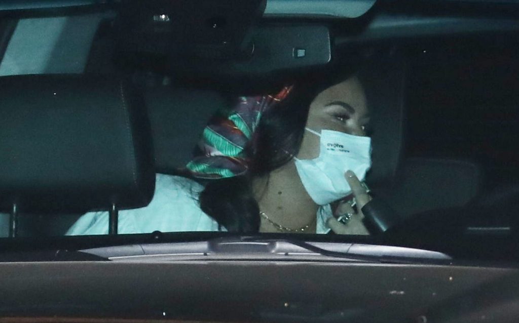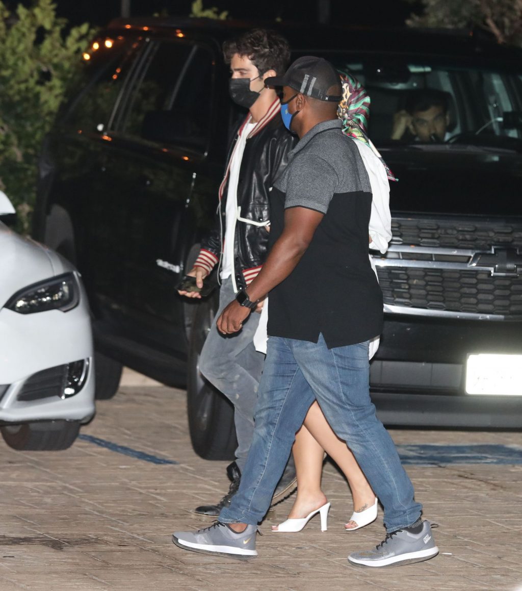 La chanteuse Demi Lovato et son fiancé Max Ehrich se tiennent la main alors qu’ils arrivent pour un dîner tardif au Nobu à Malibu, le 29/08/2020.