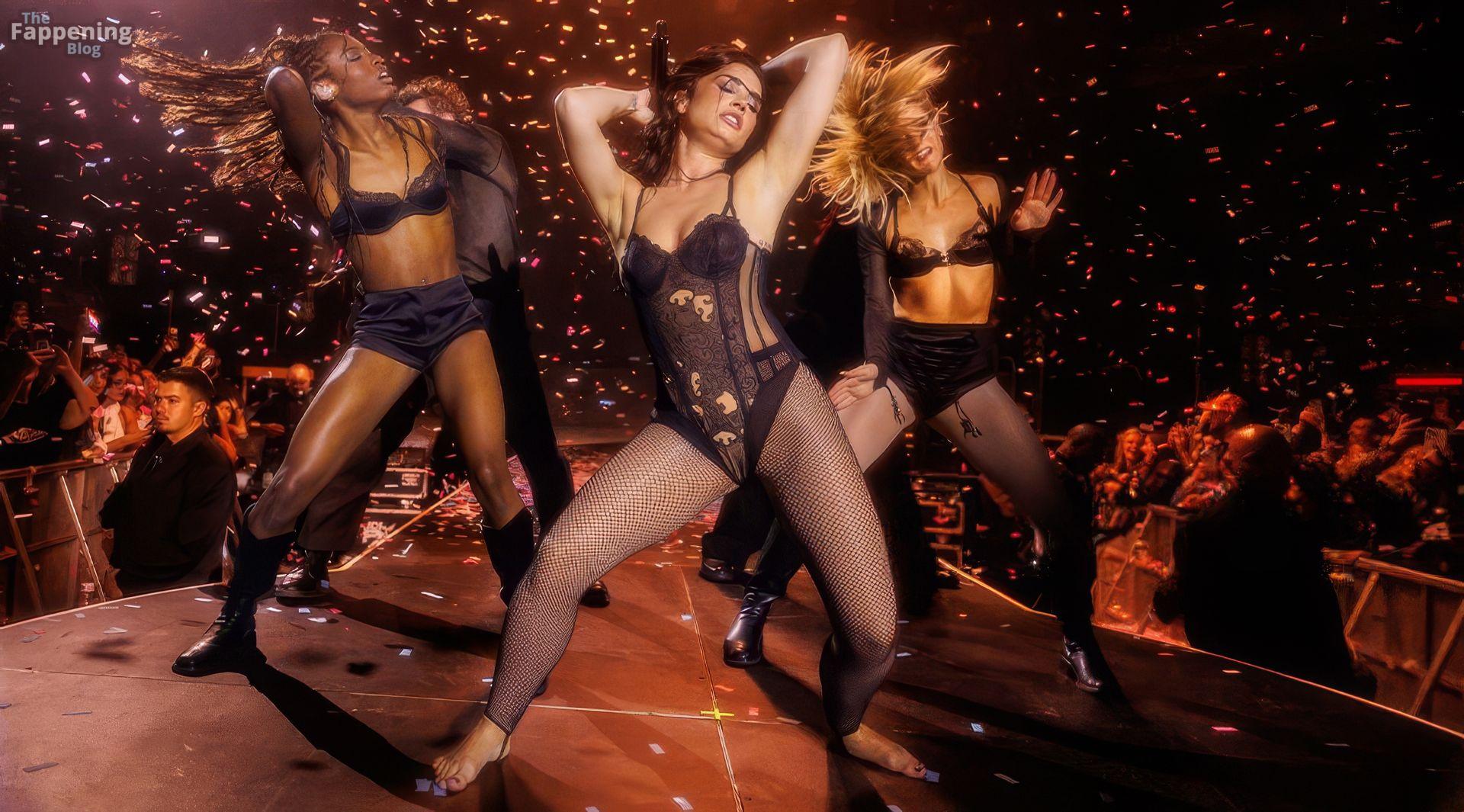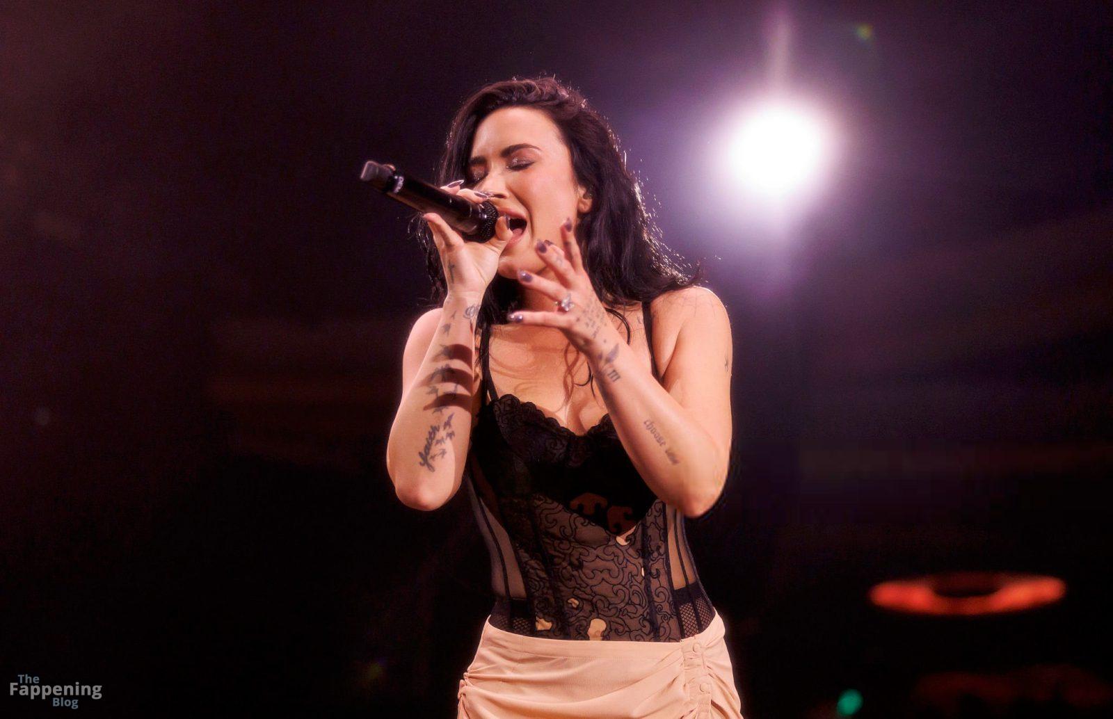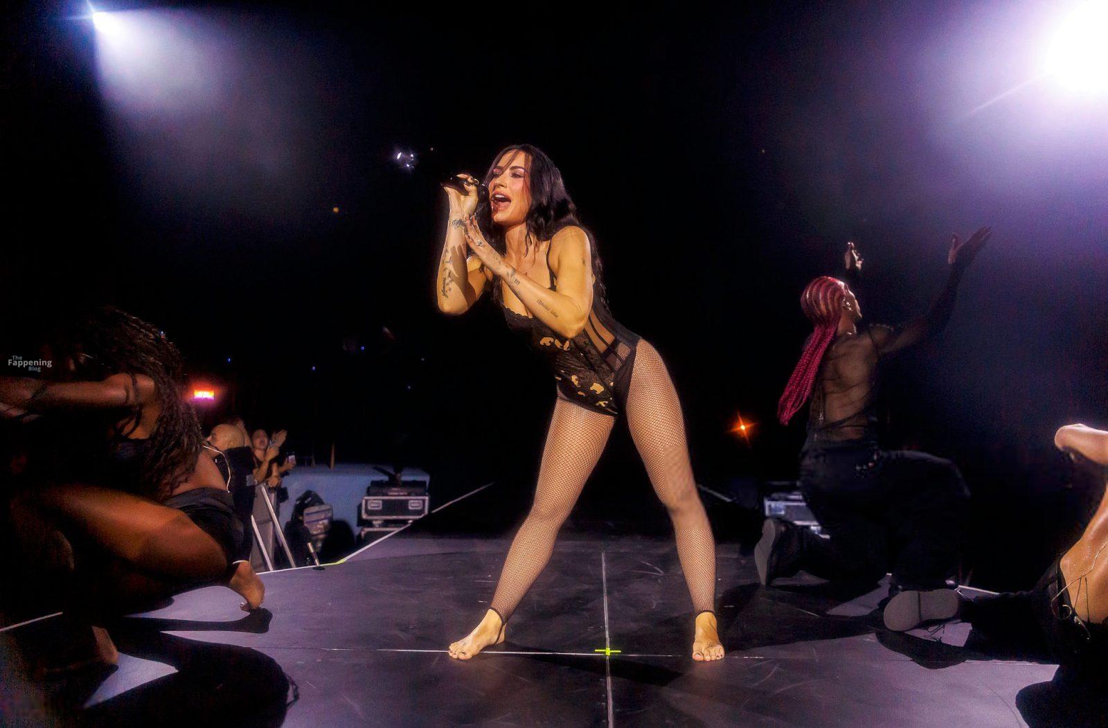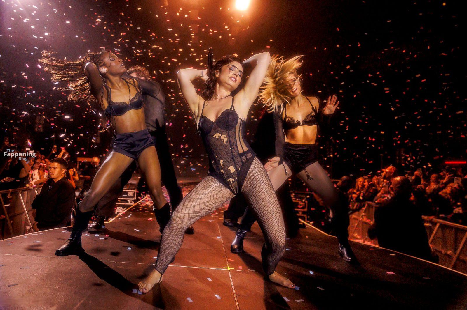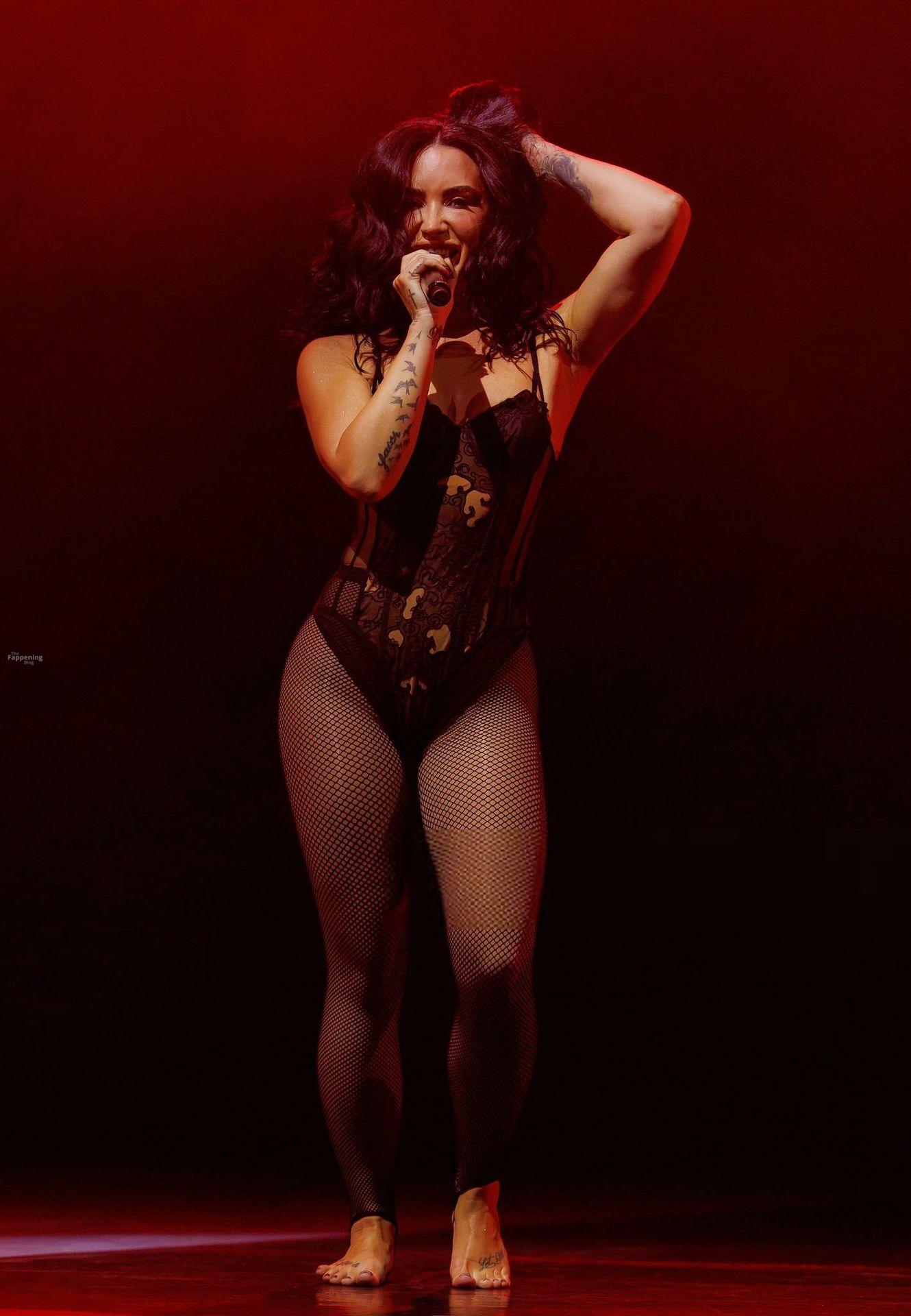 Admirez la performance de Demi Lovato au Hollywood Palladium. Elle est montée sur scène dans un body transparent et des bas résille.