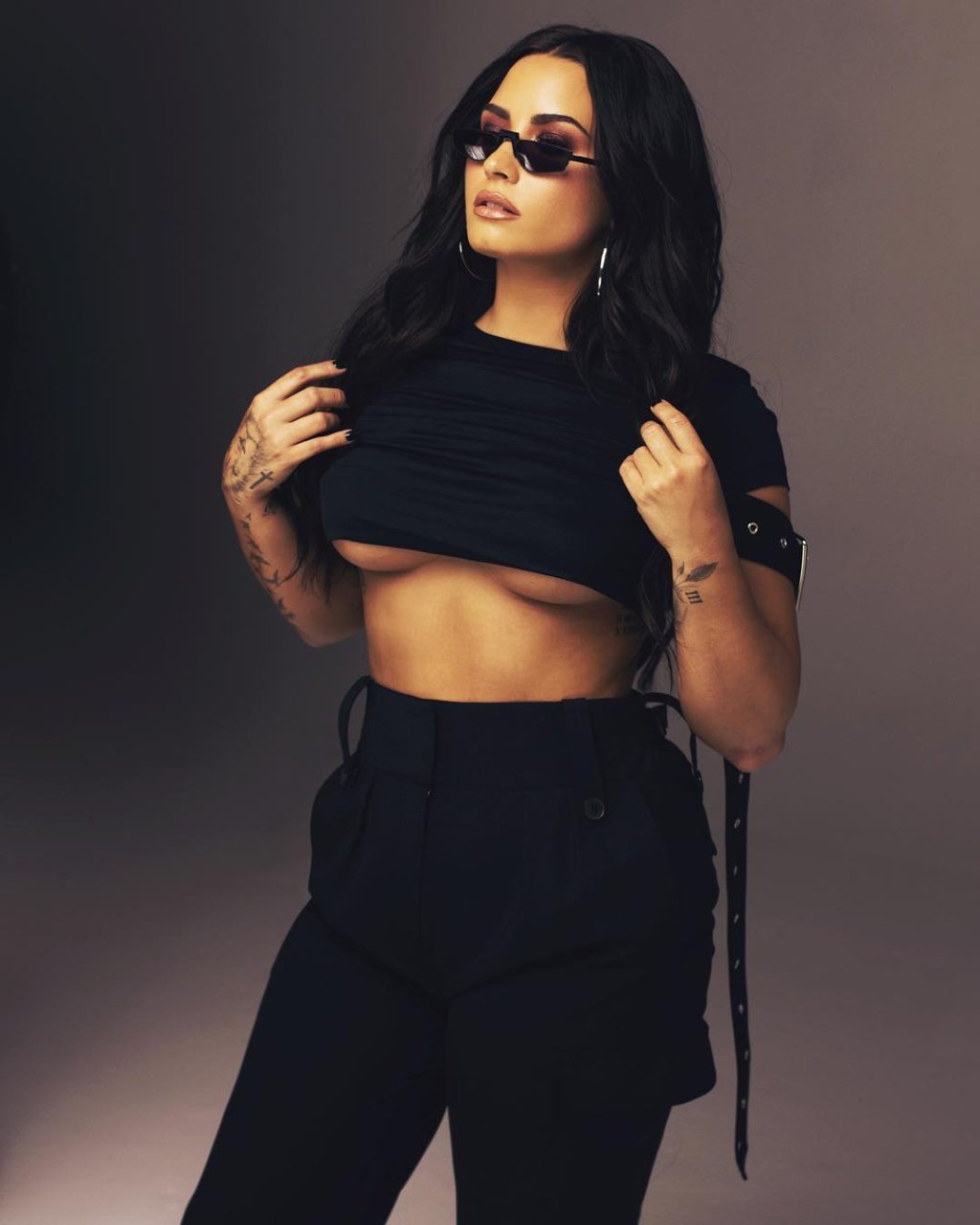 Demi Lovato a partagé quelques photos sexy d’une séance photo par Angelo Kritikos – Instagram, 28/03/2018. La chanteuse et actrice de 25 ans a relevé sa chemise et nous a taquinés avec ses petits seins.