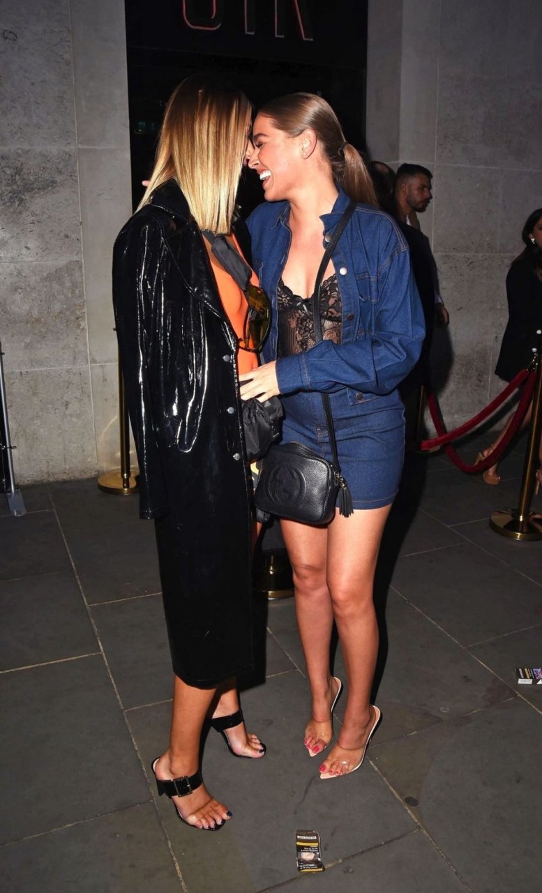Demi Sims et Chloe Ross ont été vues à la soirée après le marathon de Londres de Mark Wright tenue au STK, le 28/04/2019. Deux amies se sont embrassées pour une bonne photo.