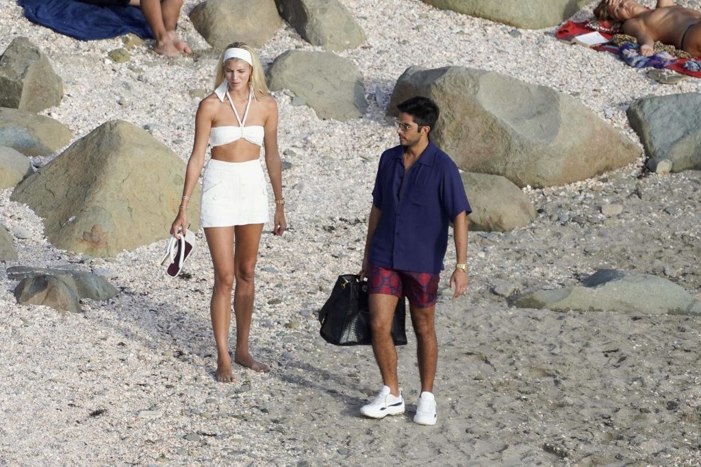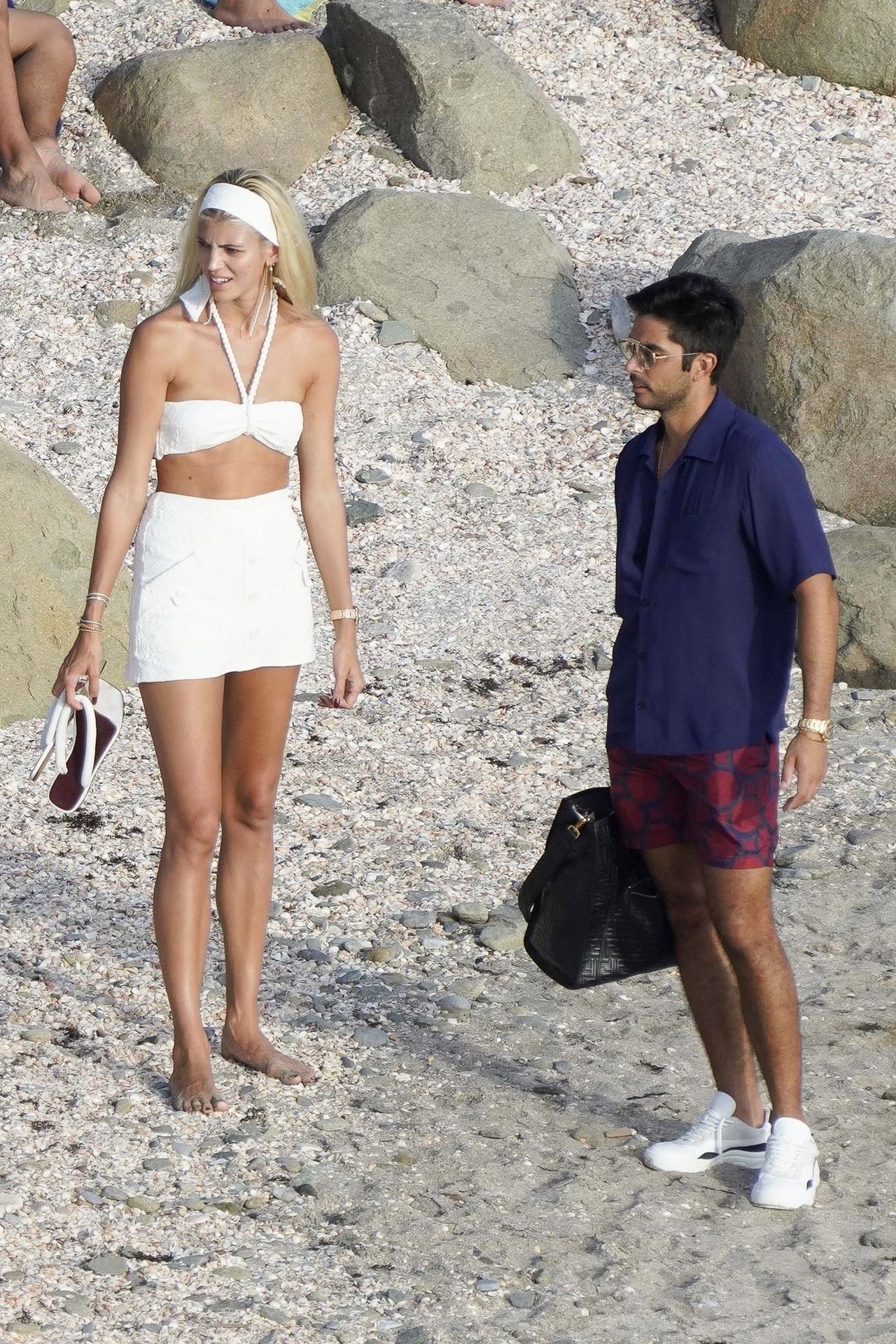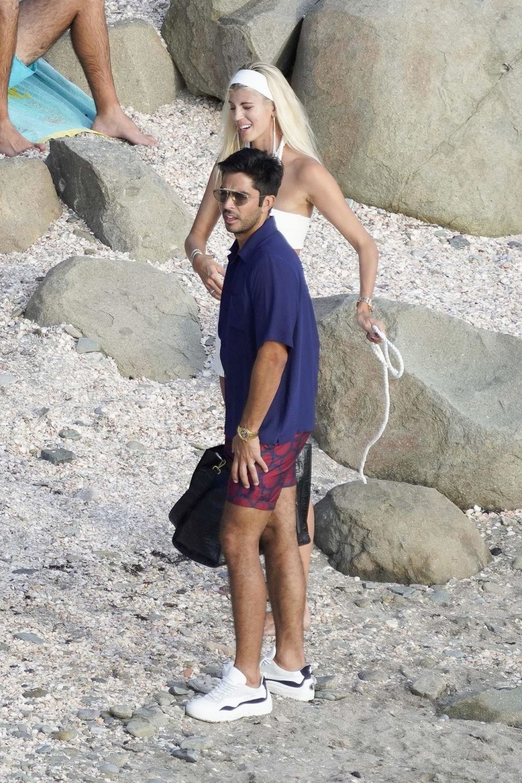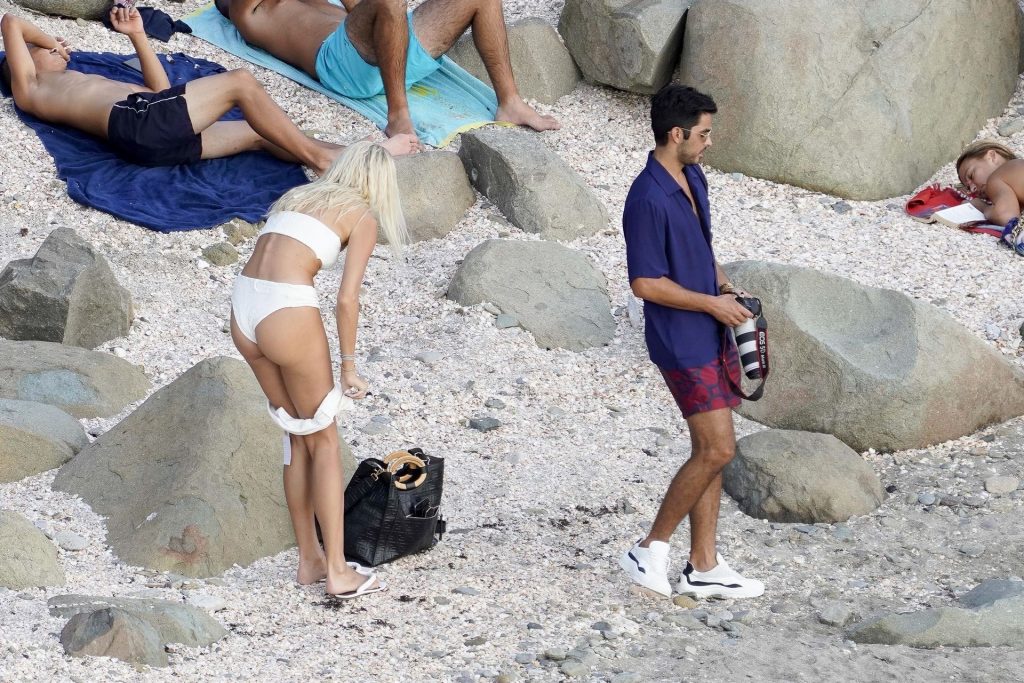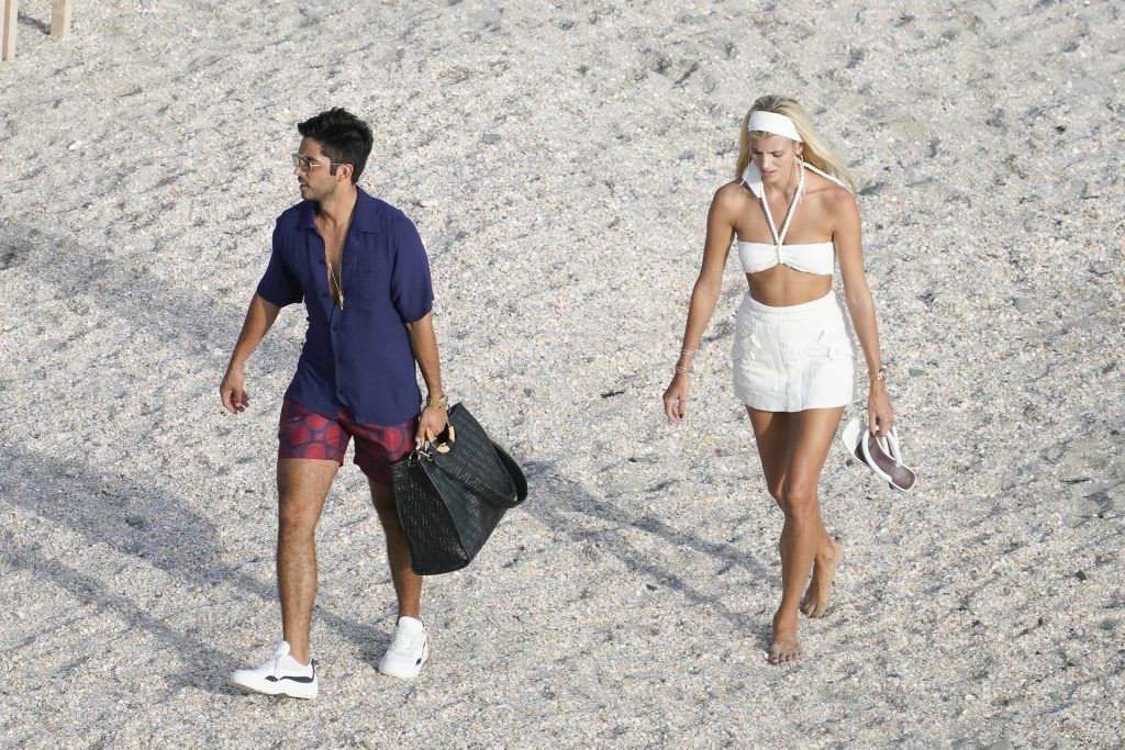 Le mannequin Devon Windsor met en valeur sa silhouette dans un bikini blanc alors qu’elle et son mari Johnny Barbara célèbrent leur premier anniversaire de mariage à St. Barts, 14/11/2020.