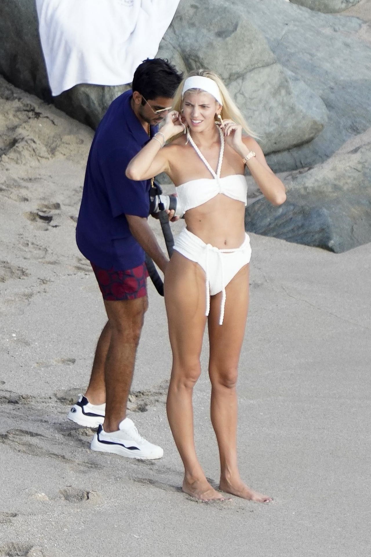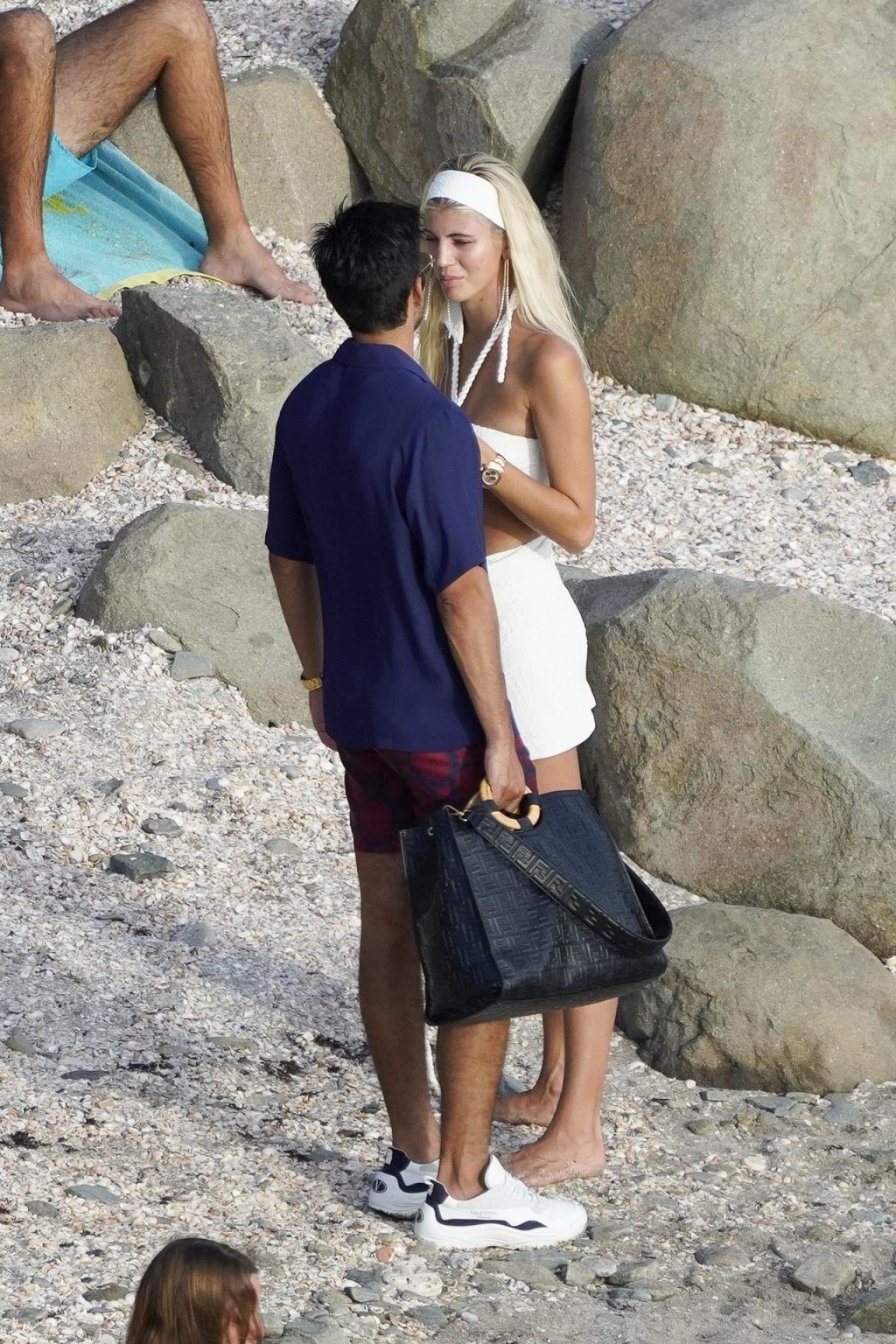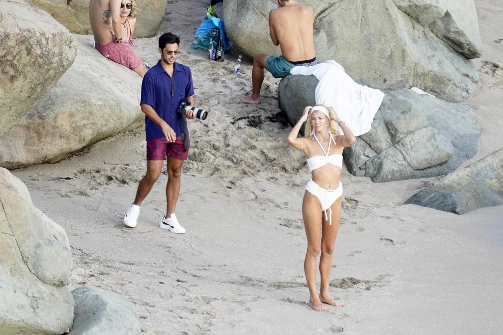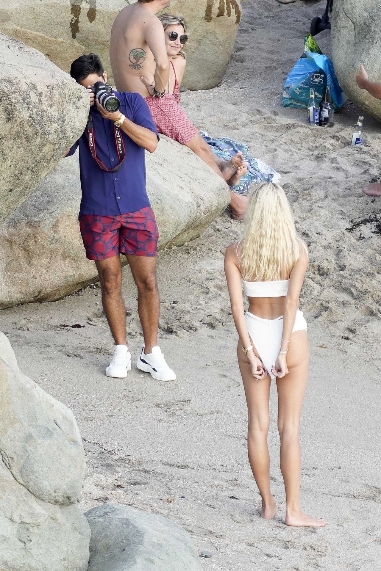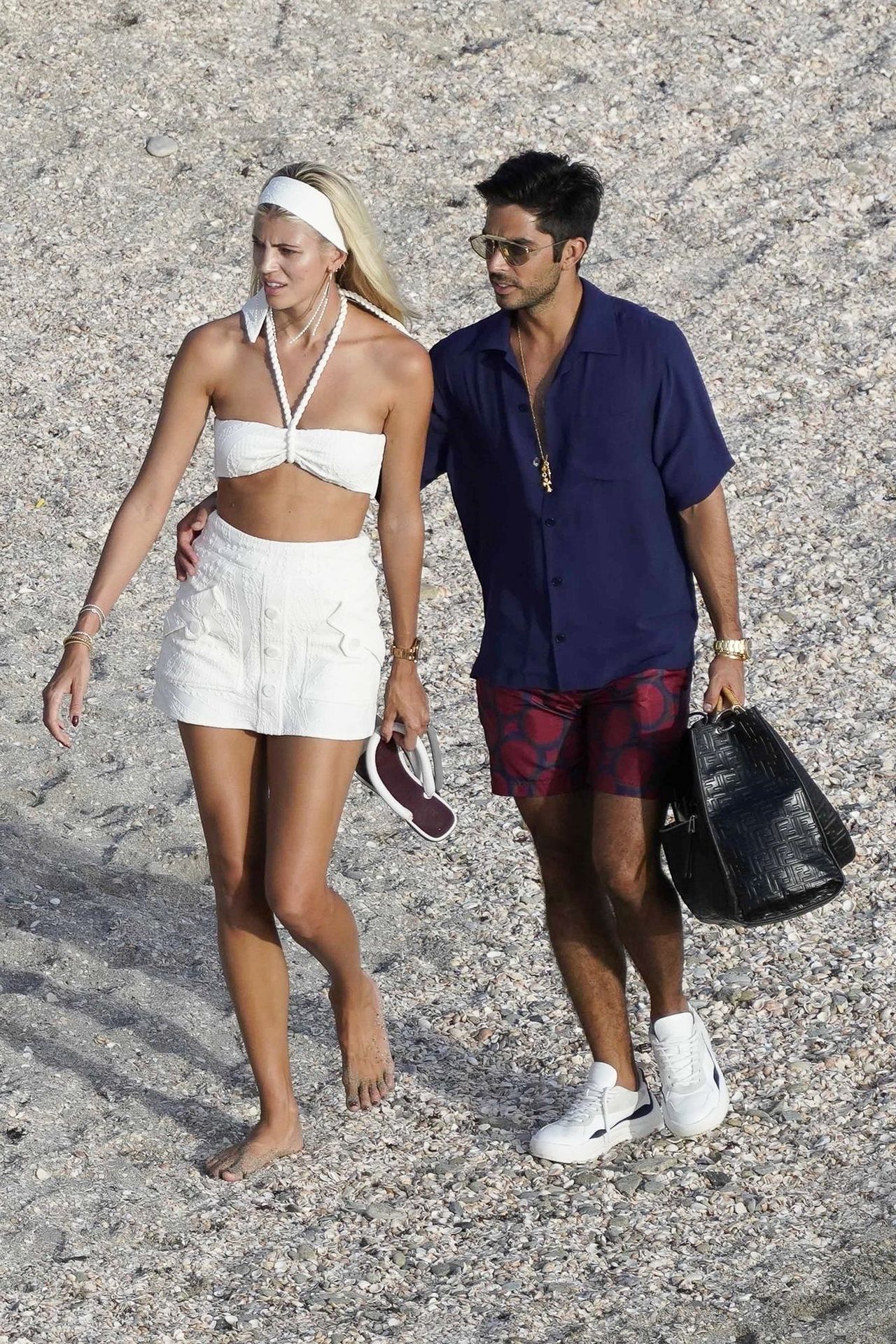 Le mannequin Devon Windsor met en valeur sa silhouette dans un bikini blanc alors qu’elle et son mari Johnny Barbara célèbrent leur premier anniversaire de mariage à St. Barts, 14/11/2020.