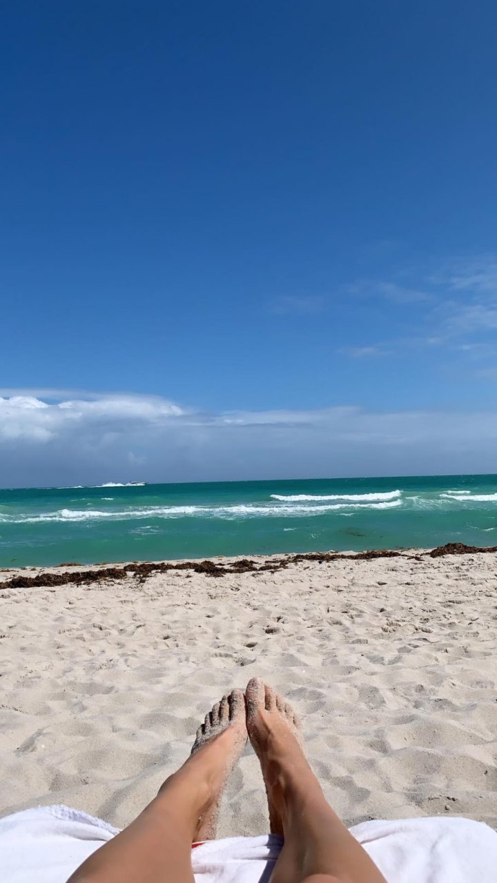 Le mannequin Devon Windsor est à Miami Beach en train de profiter du soleil, 23/02/2019. Devon enfile un sexy bikini deux pièces rouge alors qu’elle fait des vagues sur les eaux bleues.