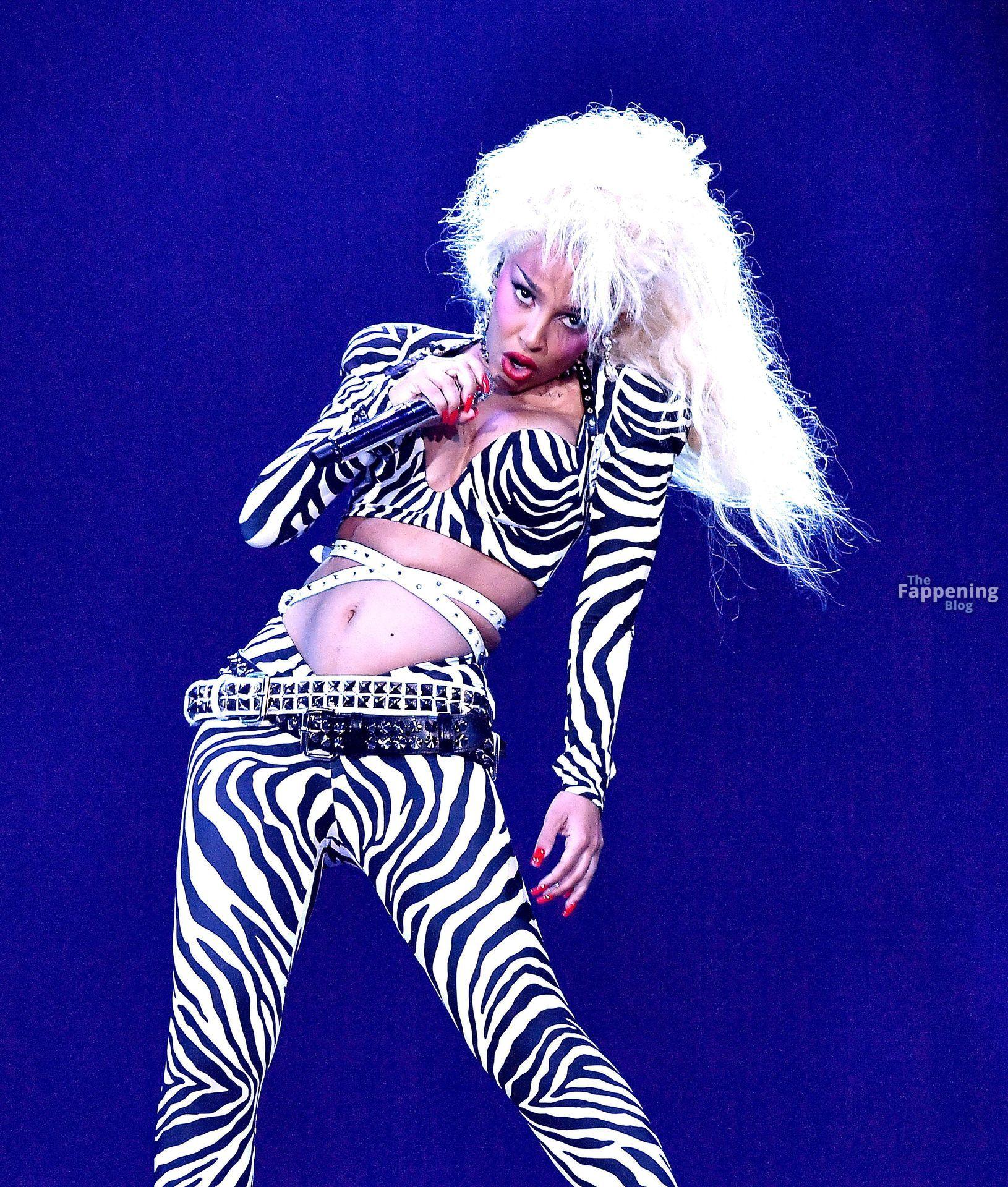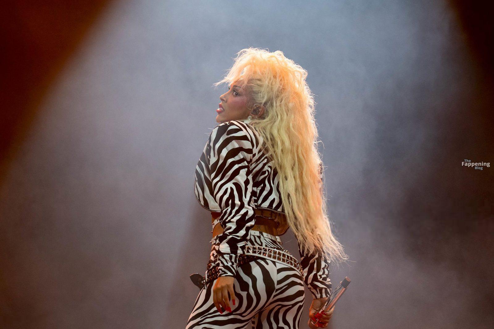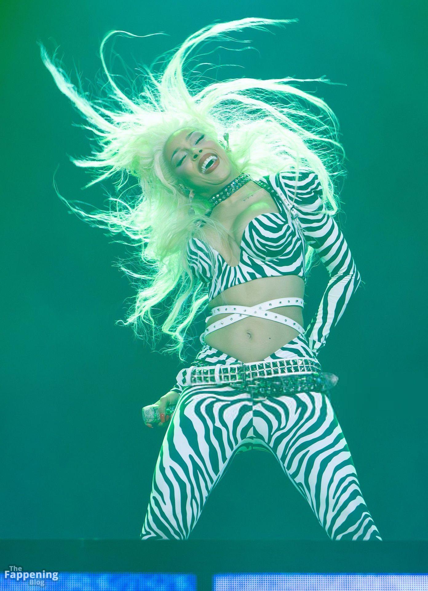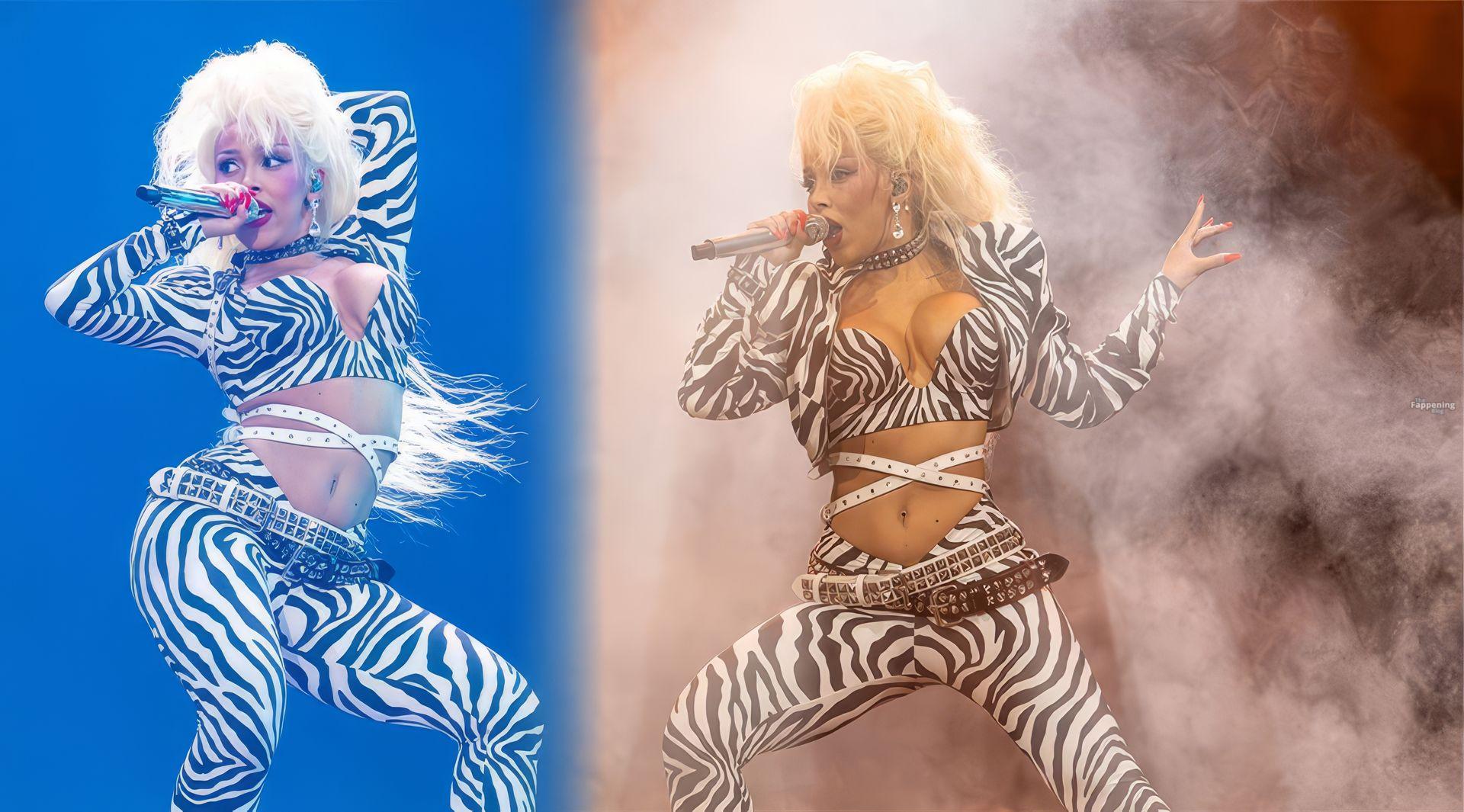 Doja Cat a été photographiée sur scène à Outside Lands 2025 au Golden Gate Park à San Francisco, Californie, arborant une tenue à imprimé zèbre