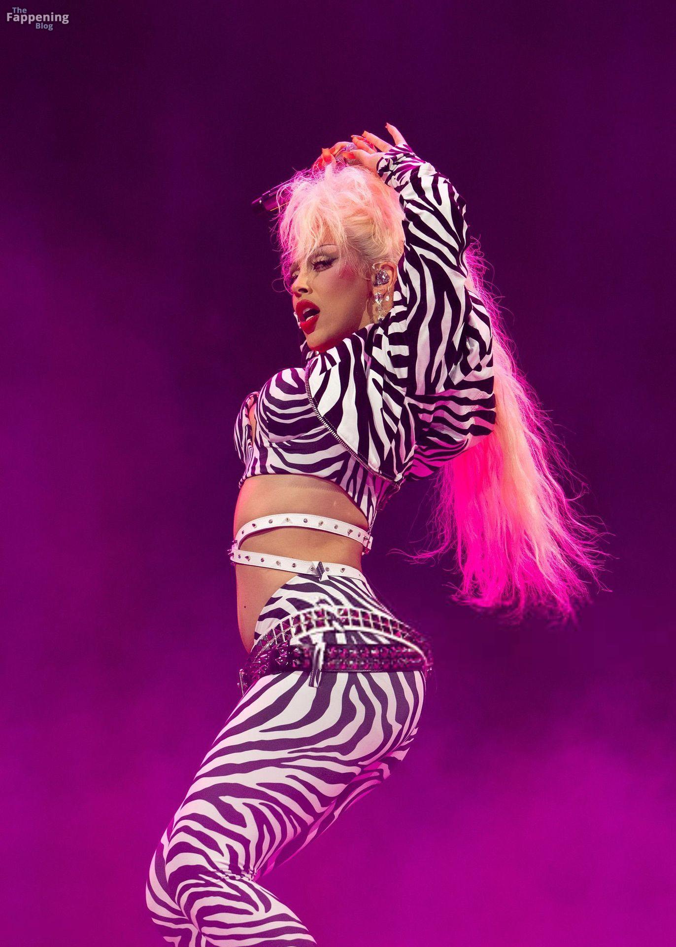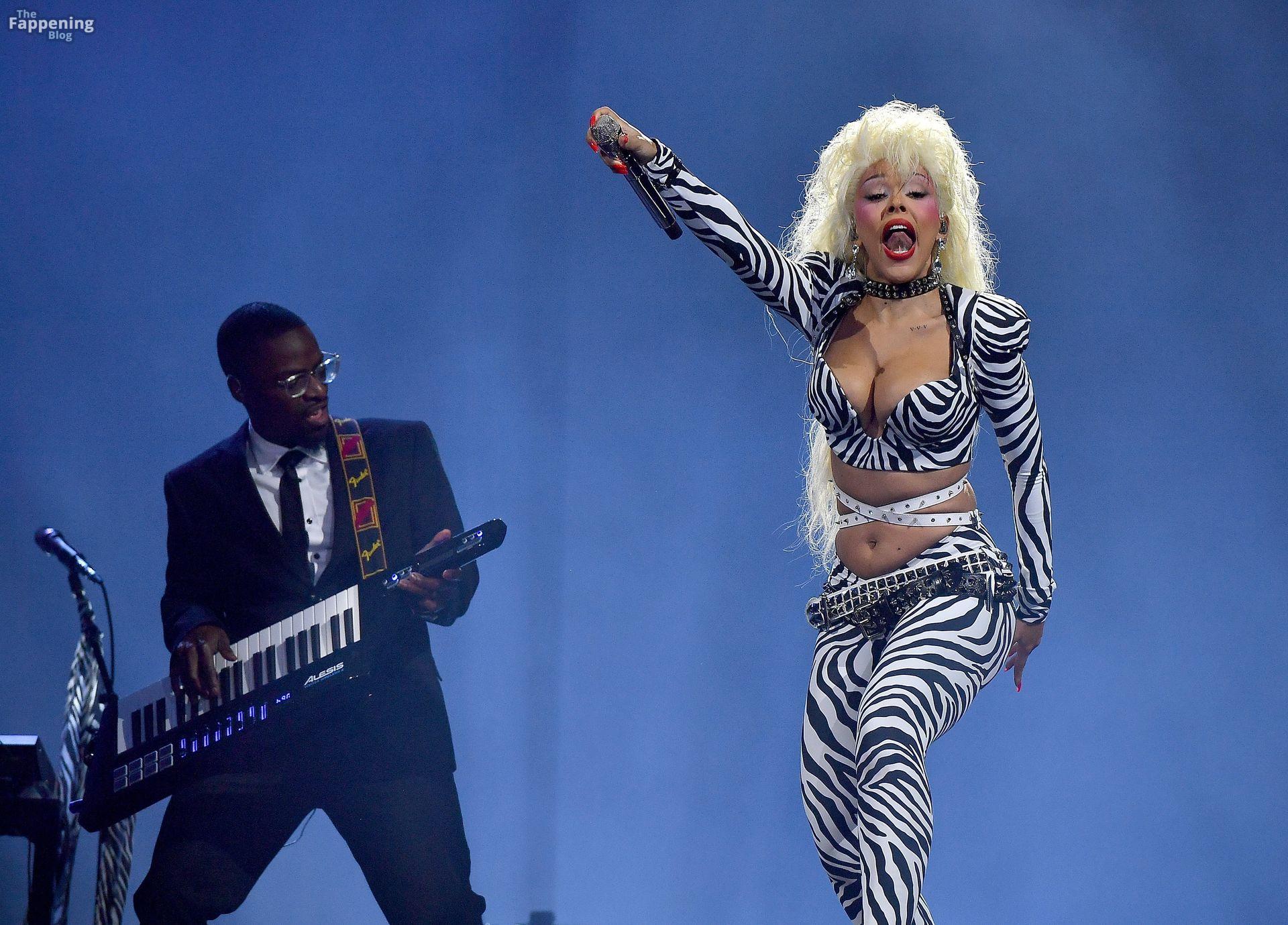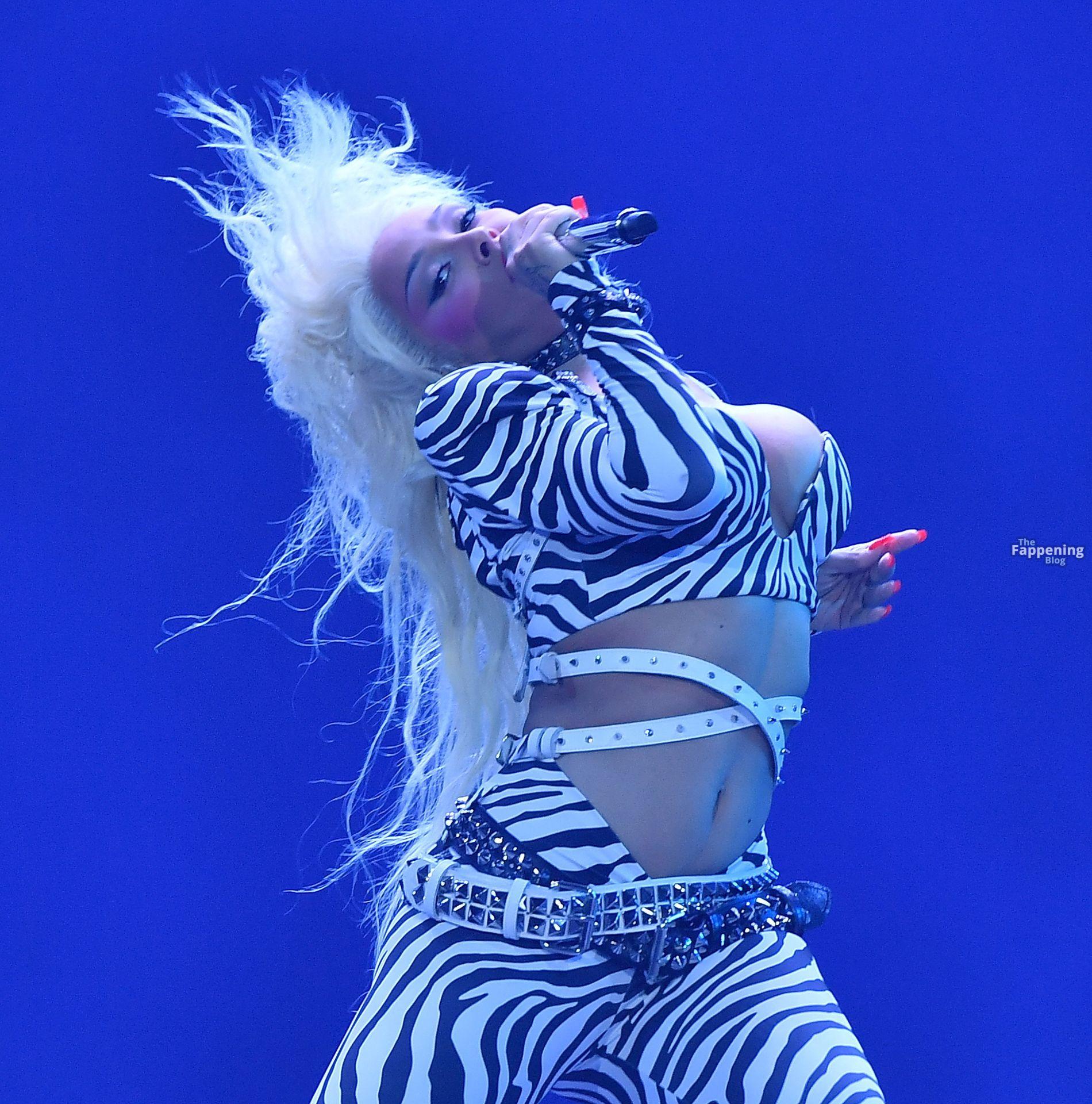 Doja Cat a été photographiée sur scène à Outside Lands 2025 au Golden Gate Park à San Francisco, Californie, arborant une tenue à imprimé zèbre