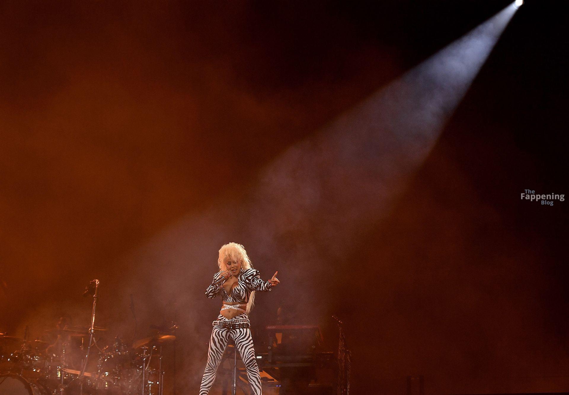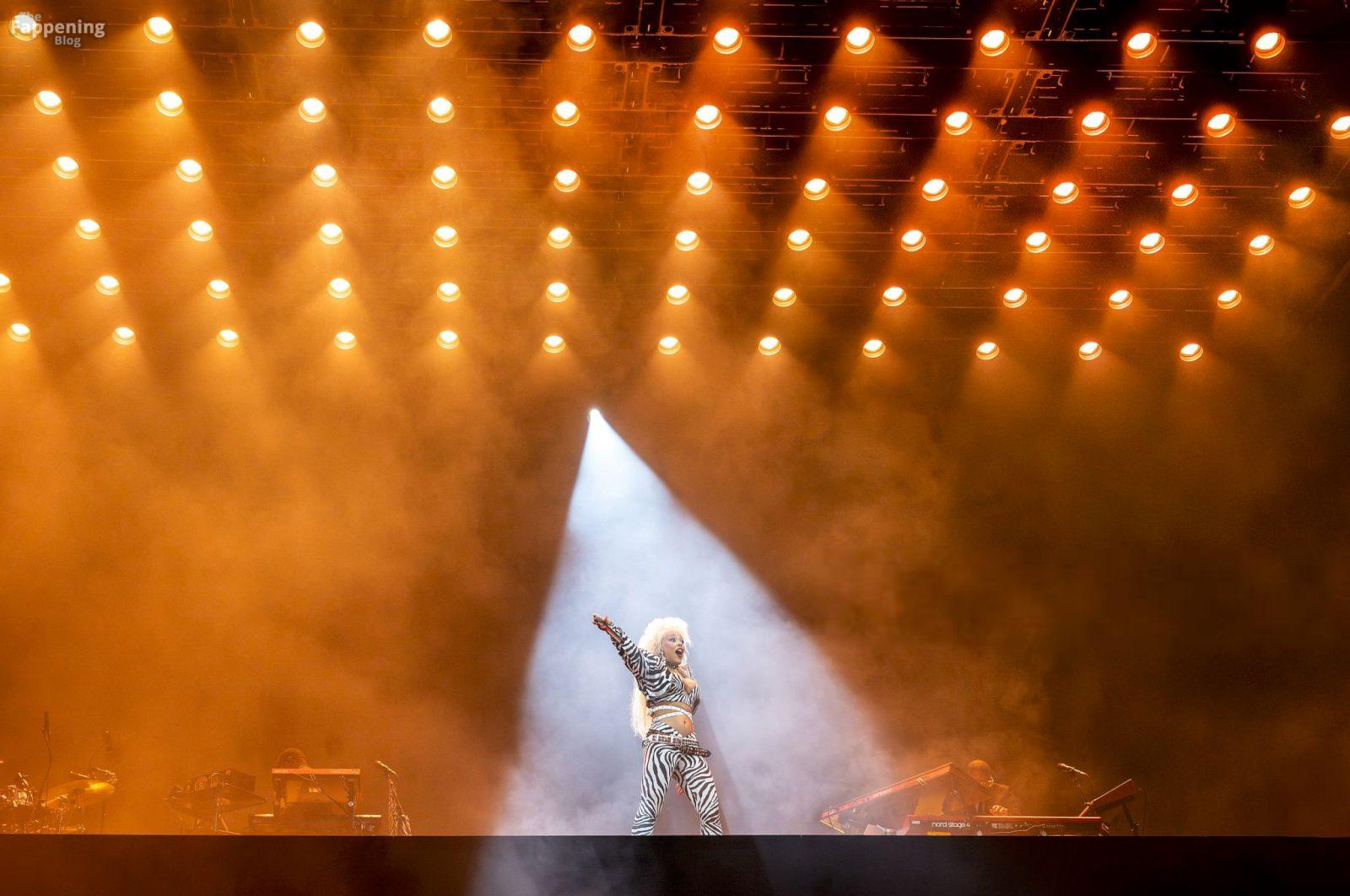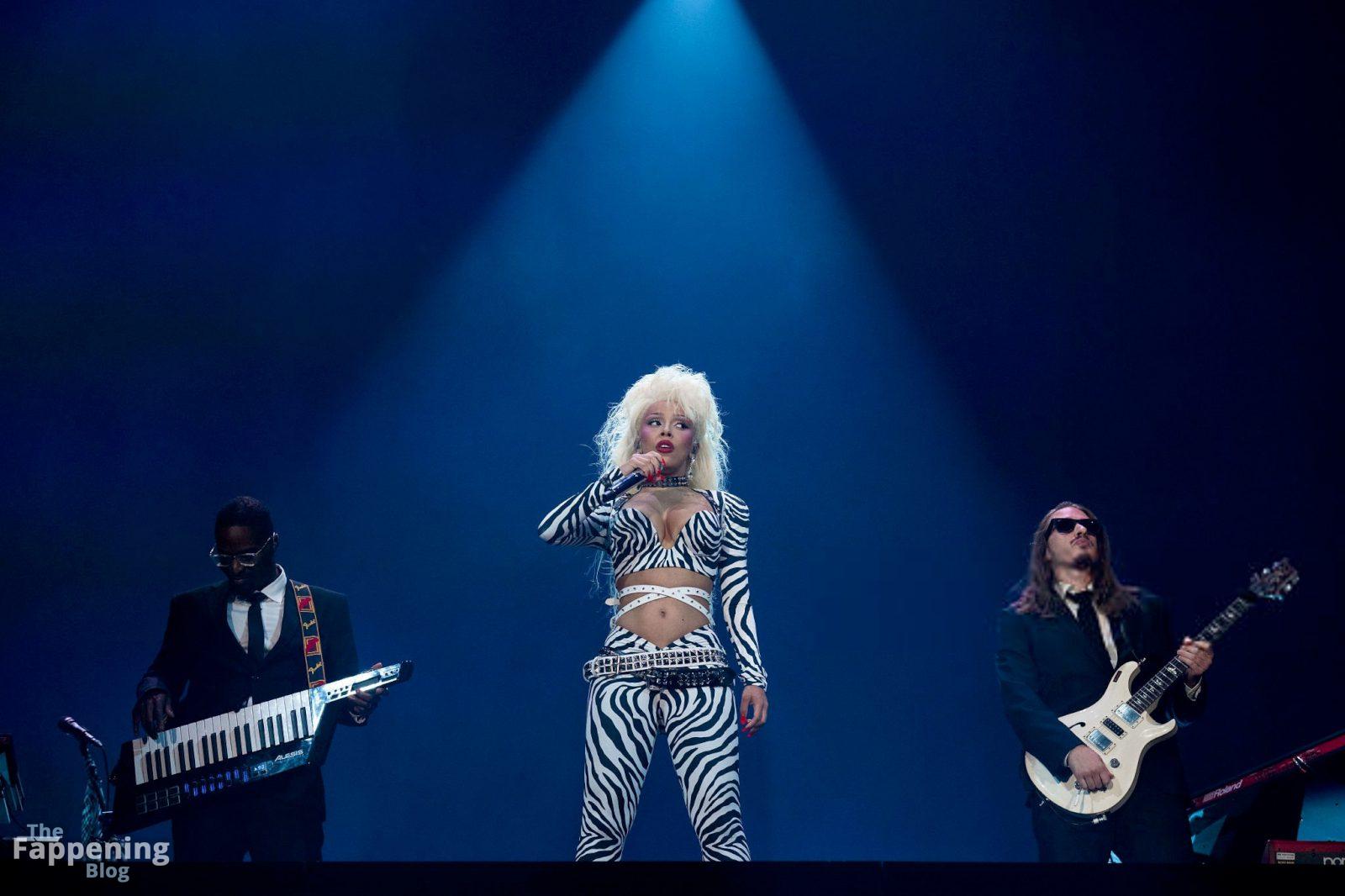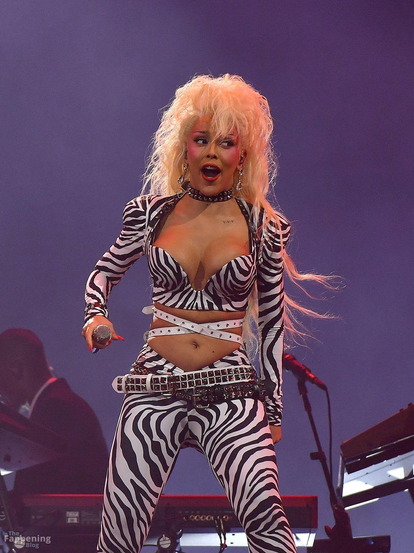 Doja Cat a été photographiée sur scène à Outside Lands 2025 au Golden Gate Park à San Francisco, Californie, arborant une tenue à imprimé zèbre