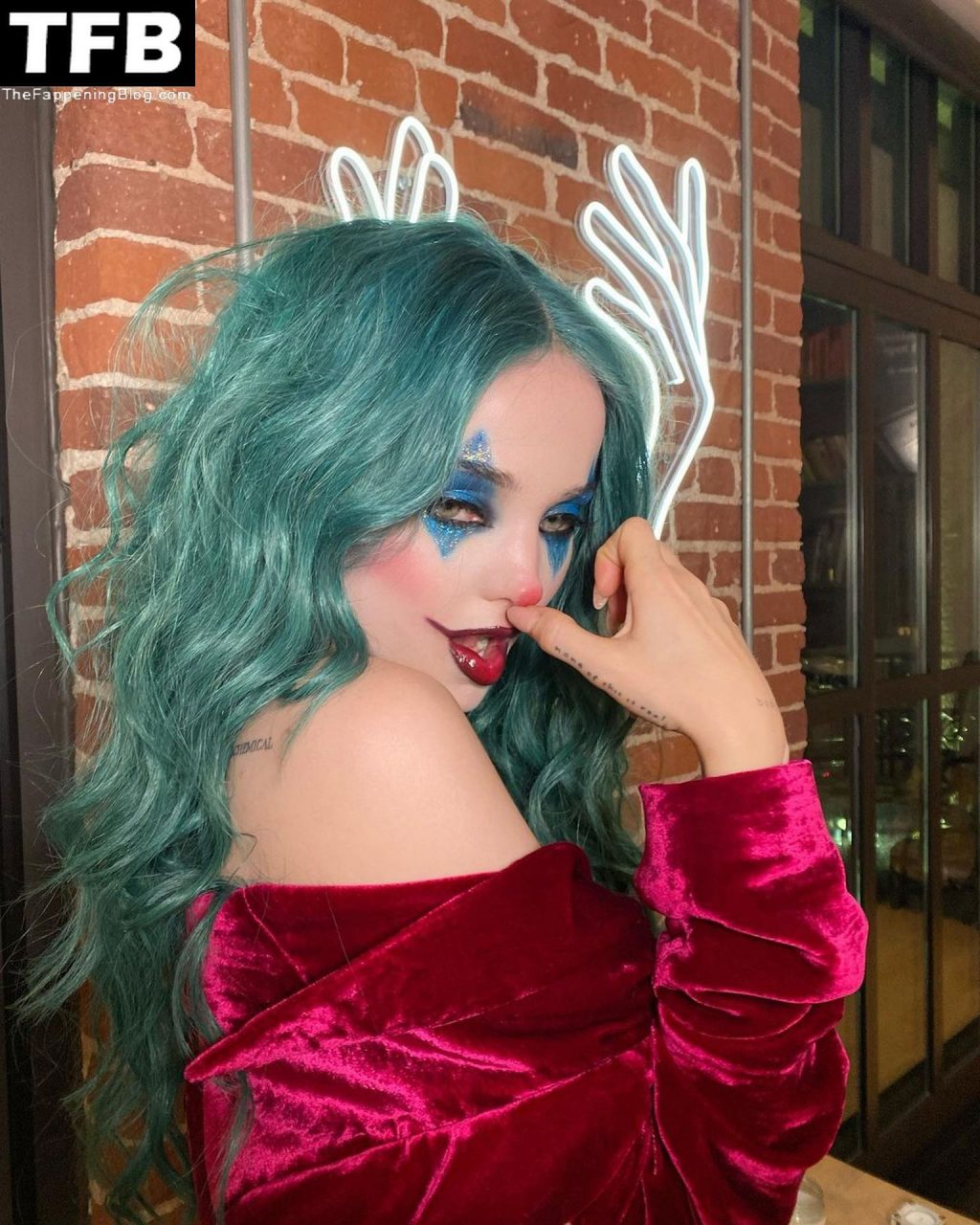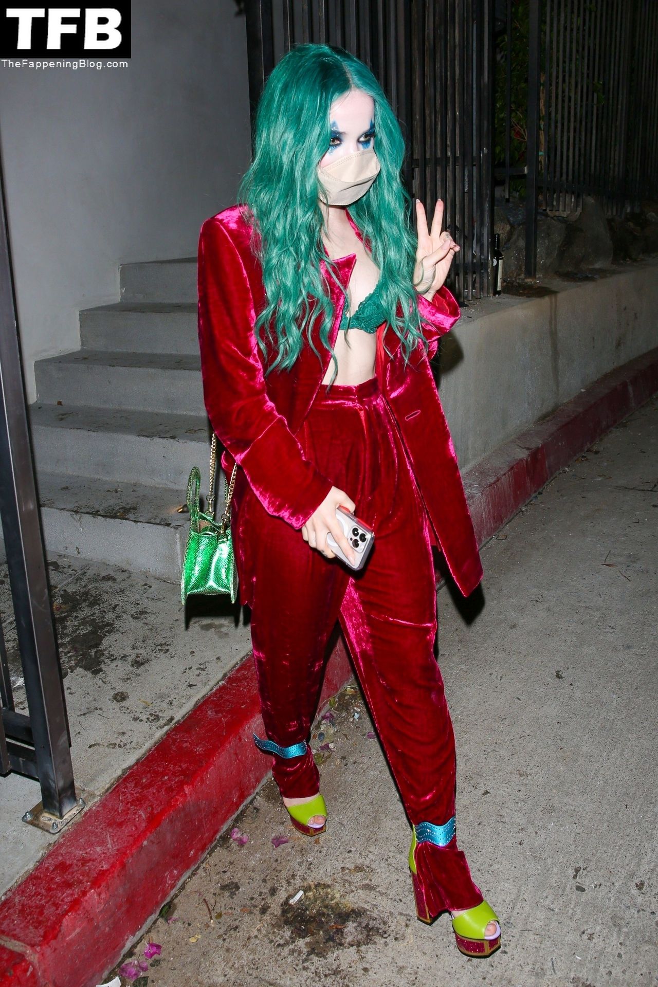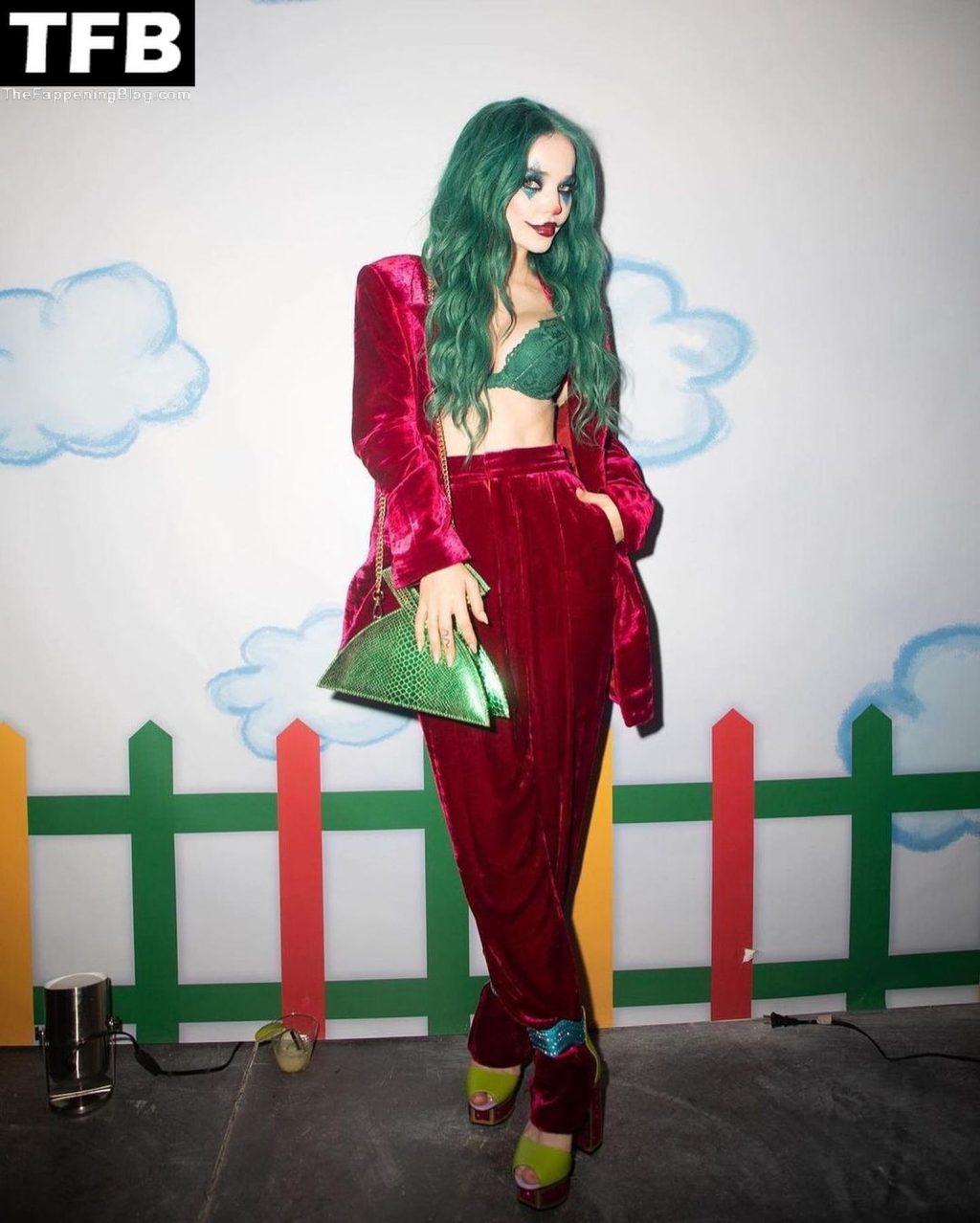 L’actrice Dove Cameron exhibe ses seins sexy à la fête d’Halloween à Hollywood, le 31/10/2021.