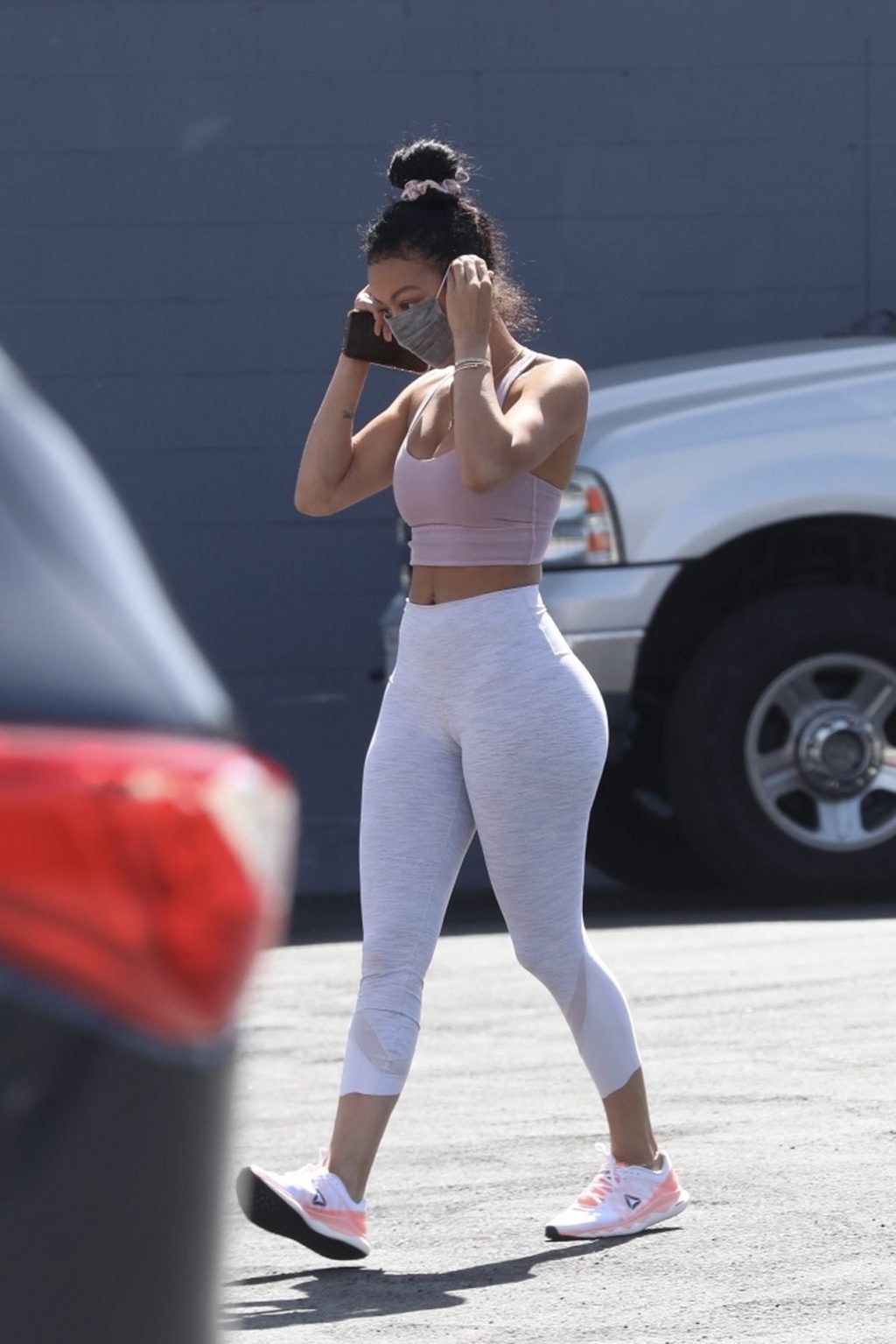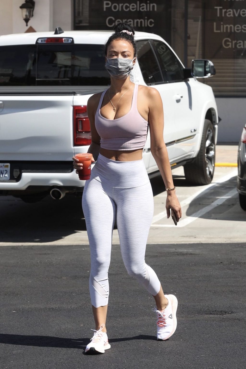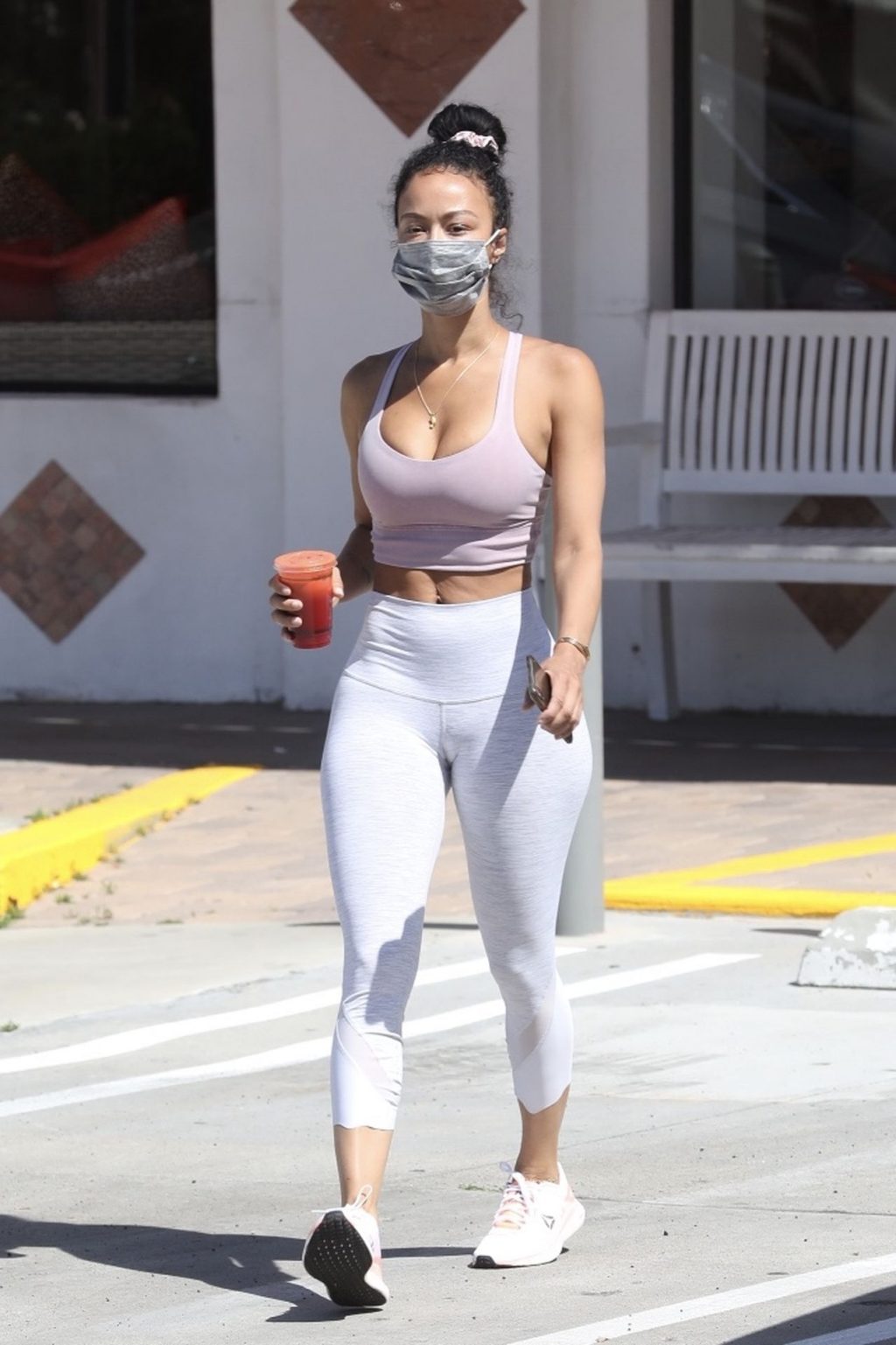 Draya Michele exhibe son corps sexy en portant un masque en pleine pandémie de Covid-19 alors qu’elle arrive chez Juicy Ladies à Woodland Hills après une séance d’entraînement, 07/05/2020.