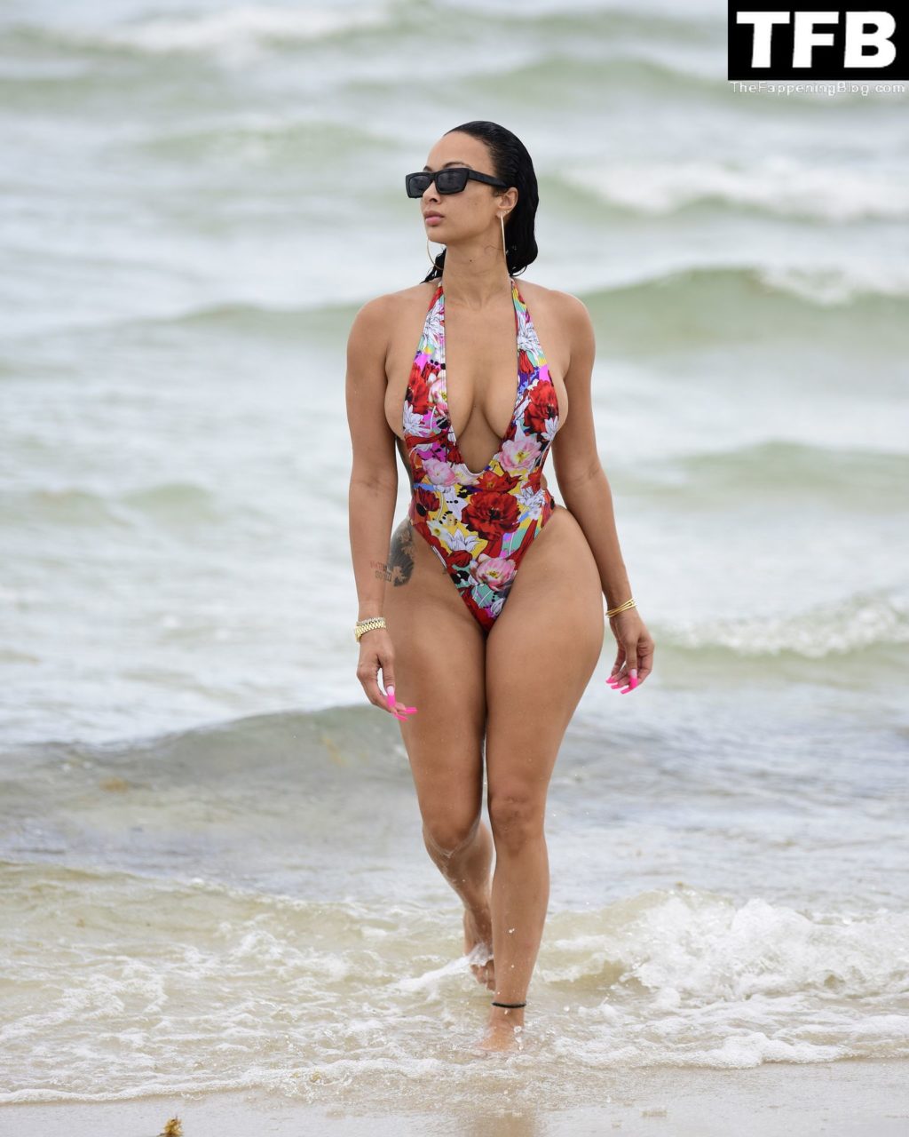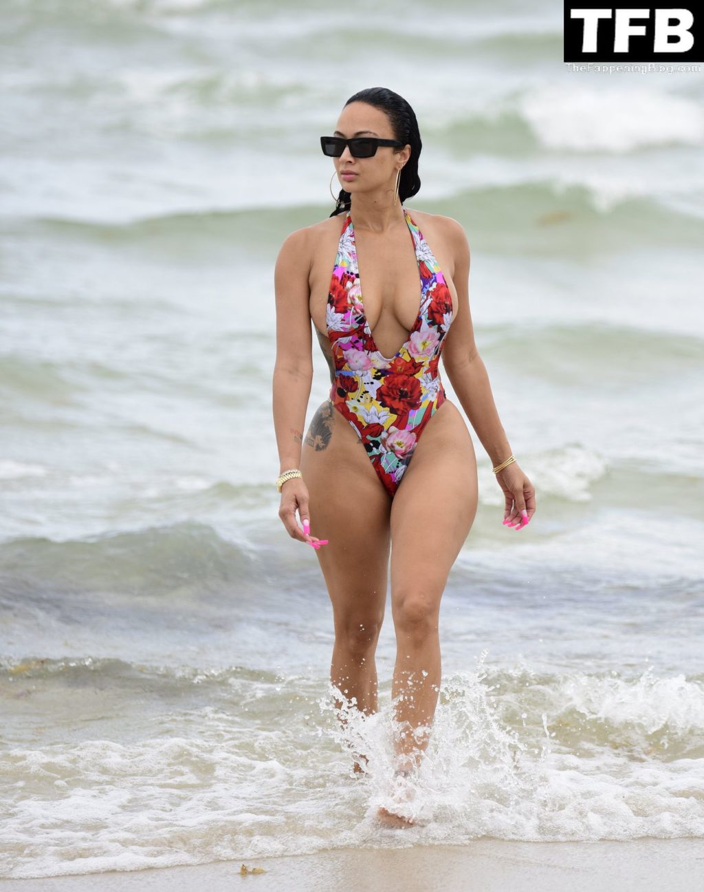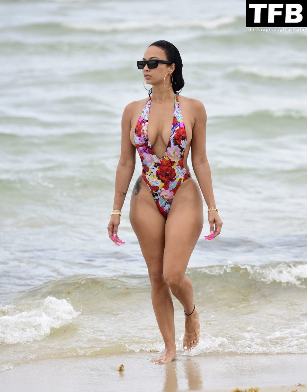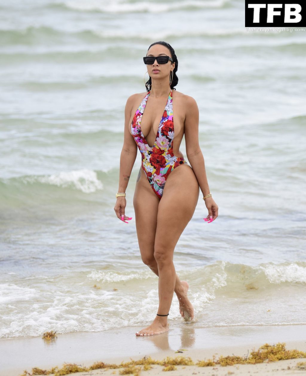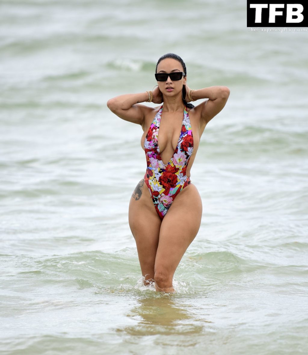 Draya Michele montre son corps incroyable dans sa nouvelle gamme de maillots de bain menthe lors d’une séance photo à la plage à Miami, 17/07/2022.