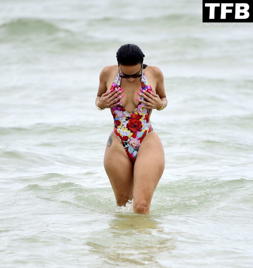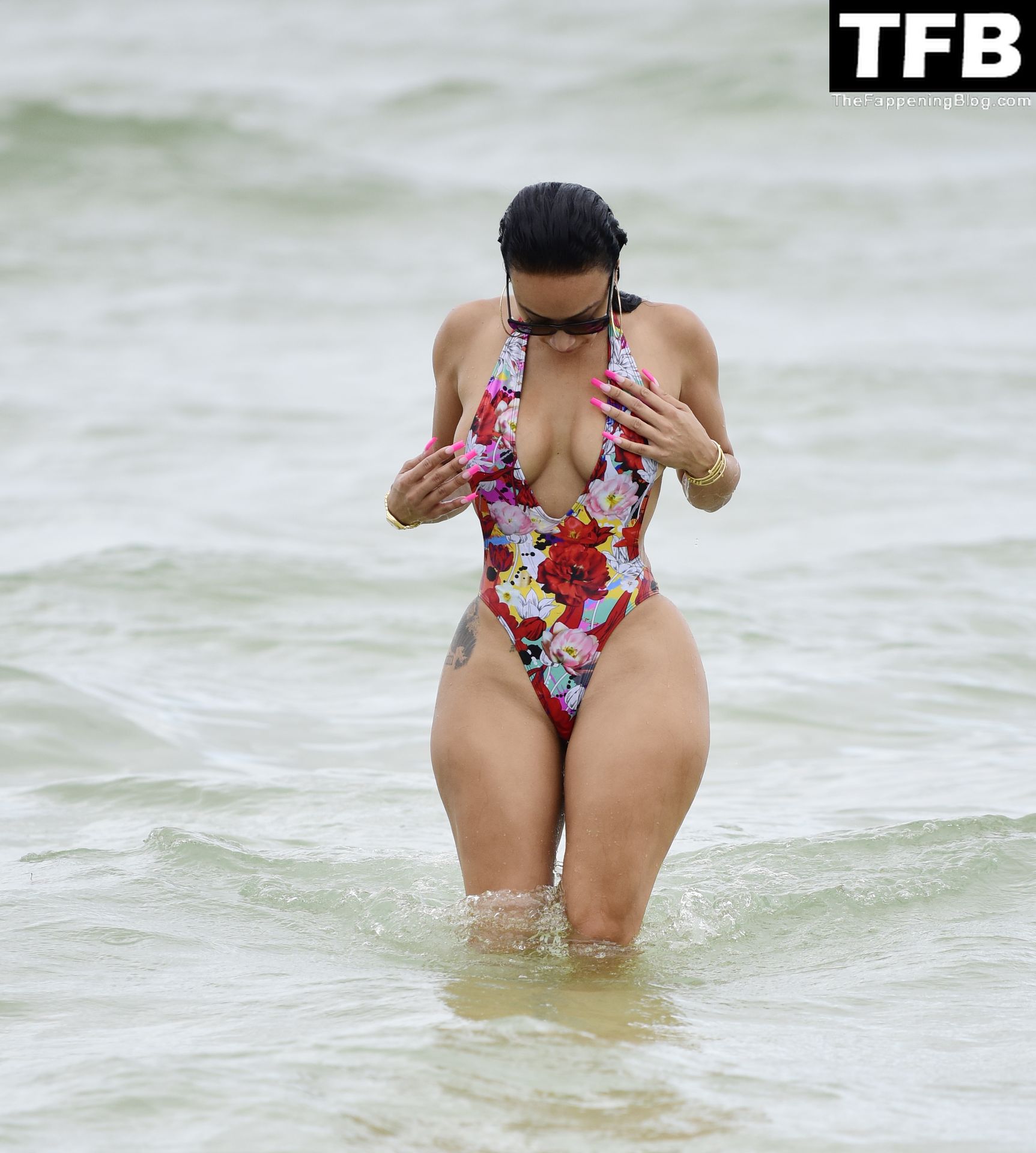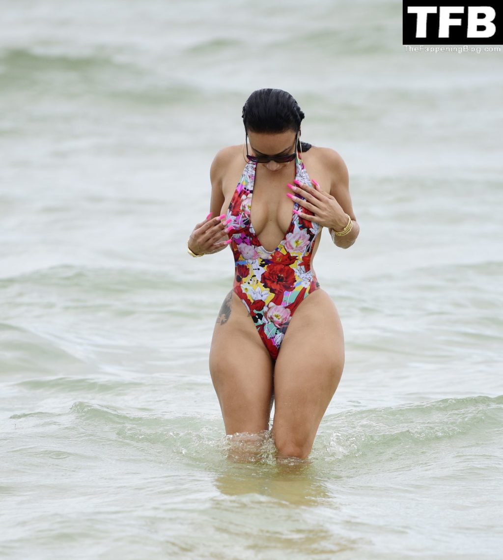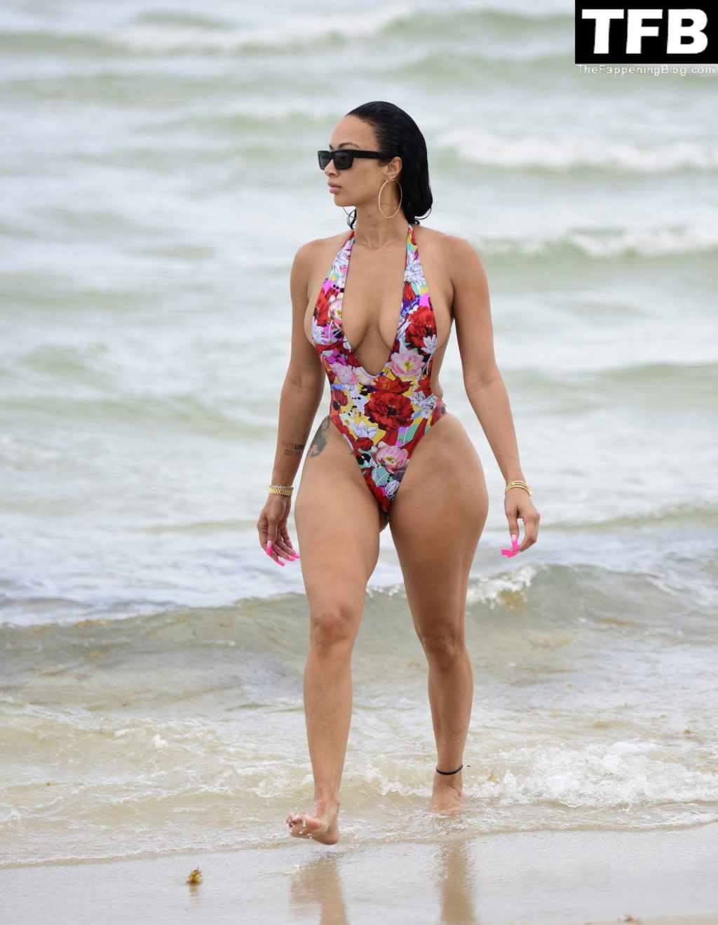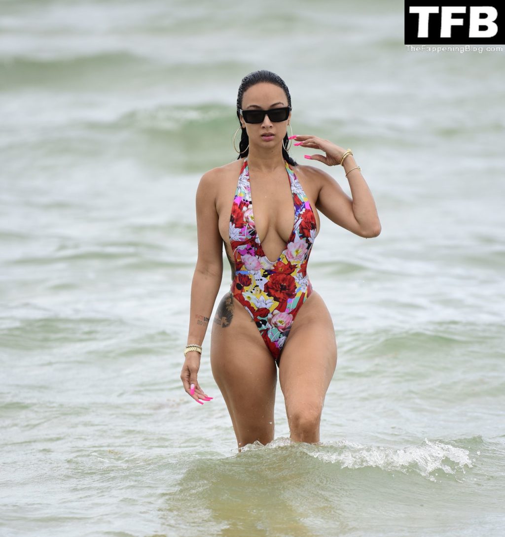 Draya Michele montre son corps incroyable dans sa nouvelle gamme de maillots de bain menthe lors d’une séance photo à la plage à Miami, 17/07/2022.