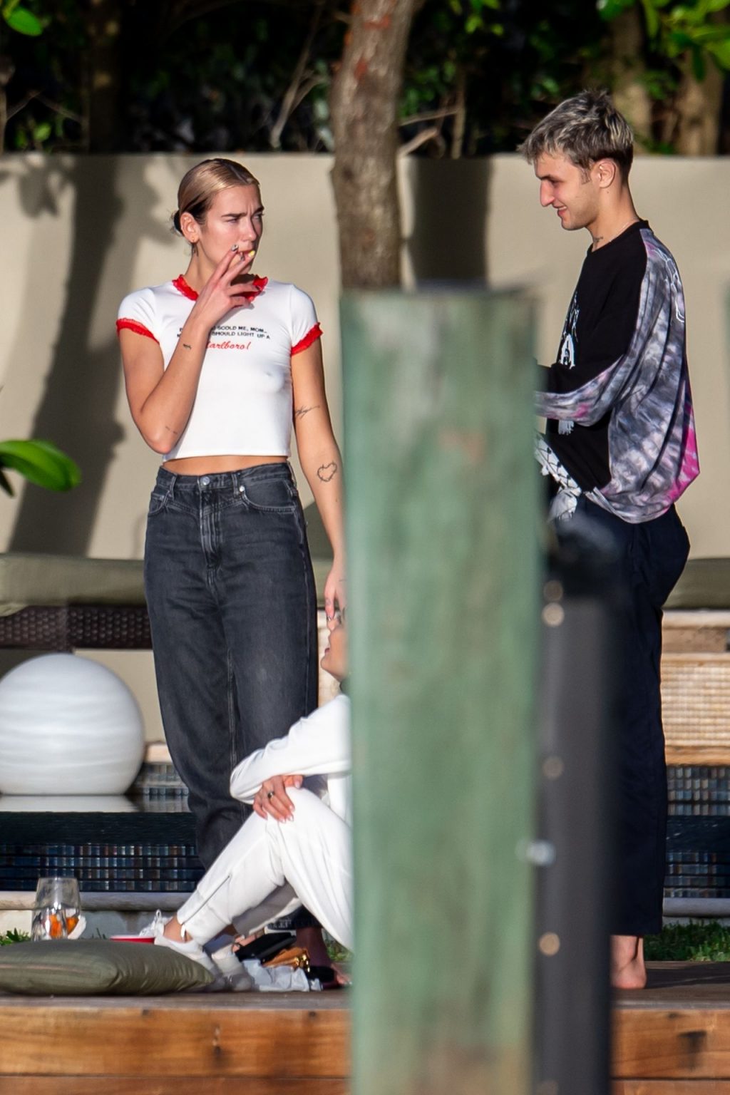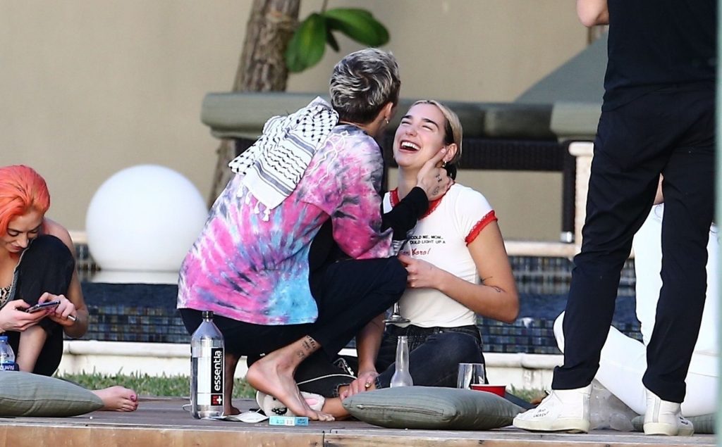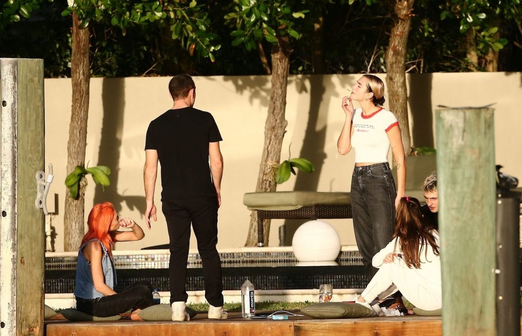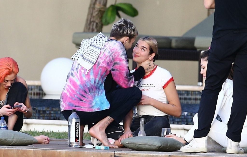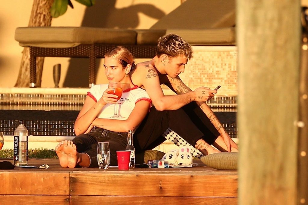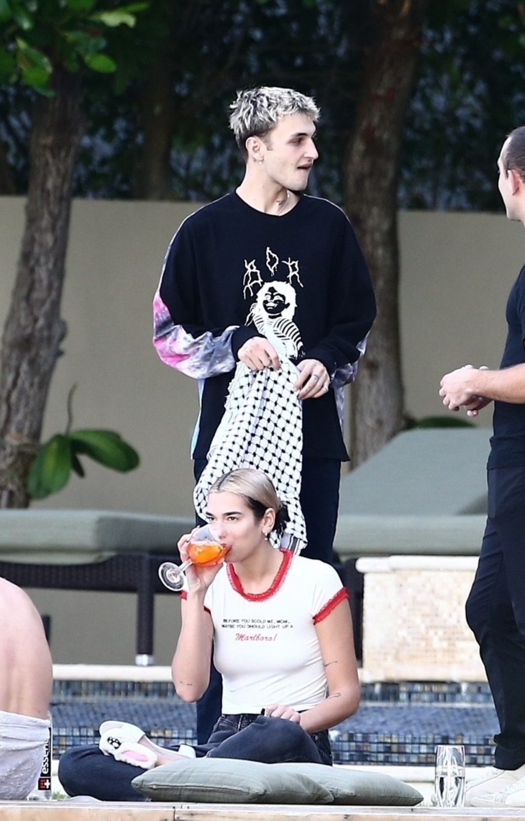 Anwar Hadid et Dua Lipa sont amoureux tout en profitant de la fin de l’année au bord de la piscine à Miami Beach, le 30/12/2019. La chanteuse savoure des boissons et fait du yoga au bord de la piscine avec des amis pendant la soirée apaisante.