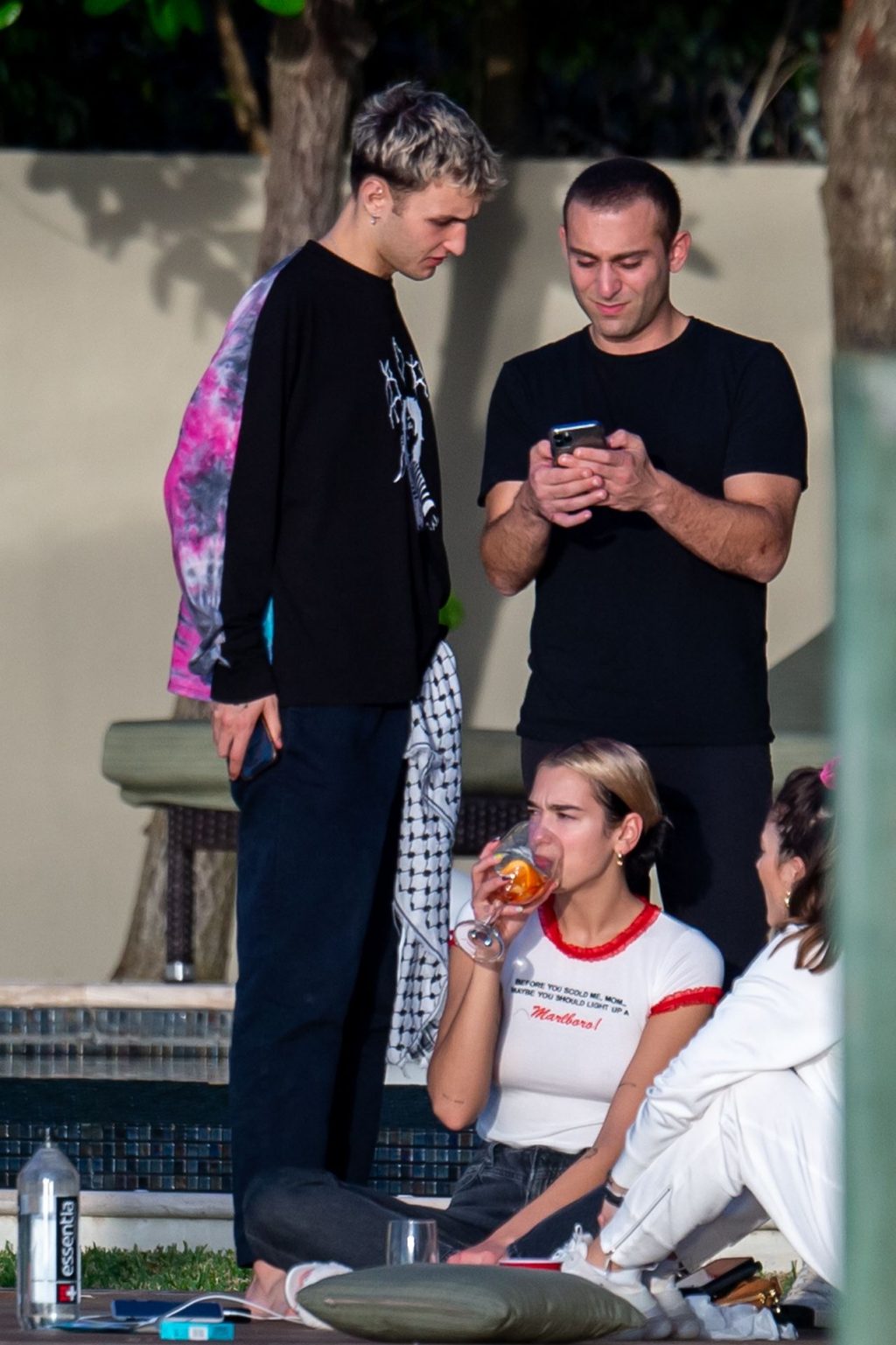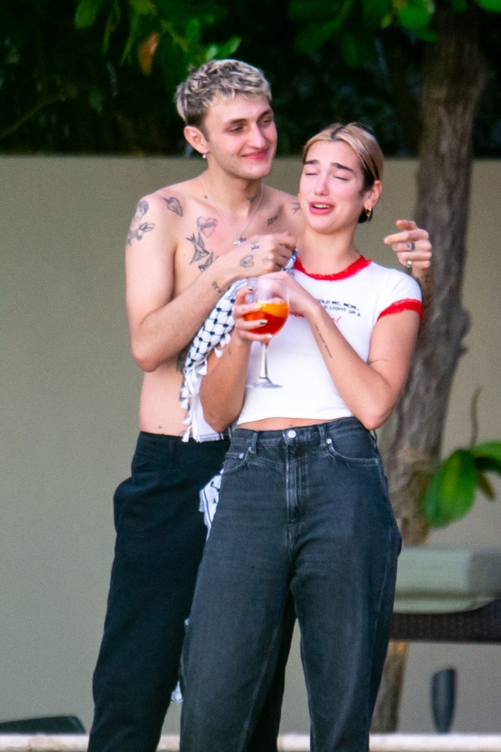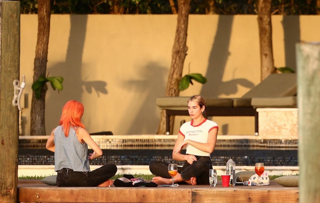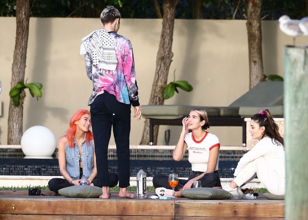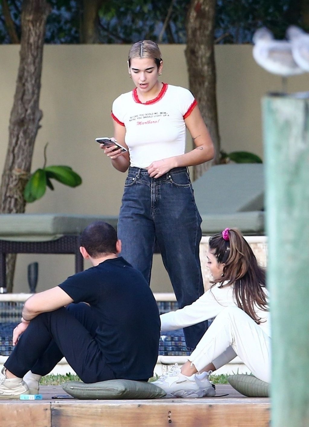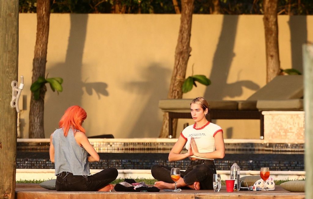 Anwar Hadid et Dua Lipa sont amoureux tout en profitant de la fin de l’année au bord de la piscine à Miami Beach, le 30/12/2019. La chanteuse savoure des boissons et fait du yoga au bord de la piscine avec des amis pendant la soirée apaisante.