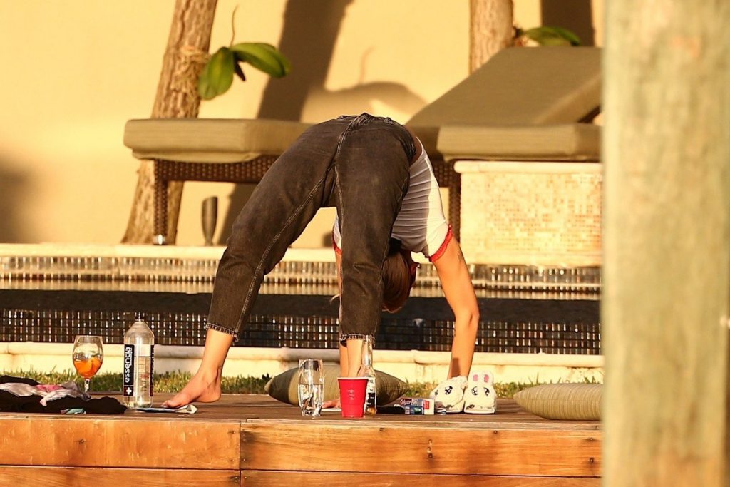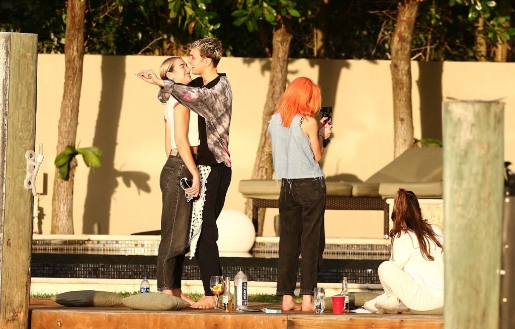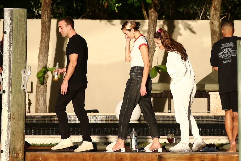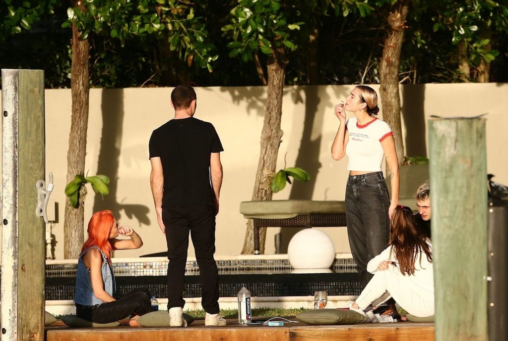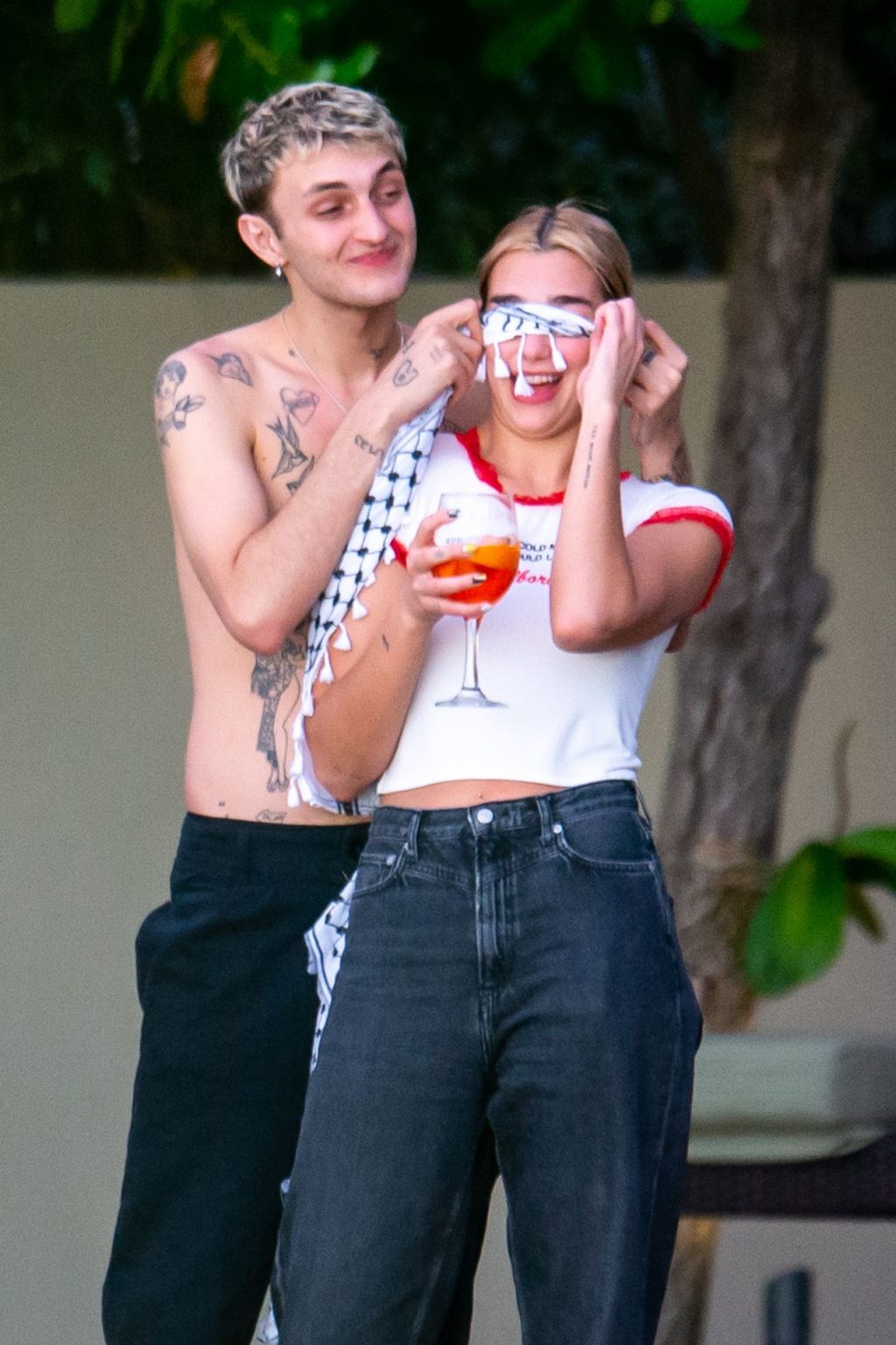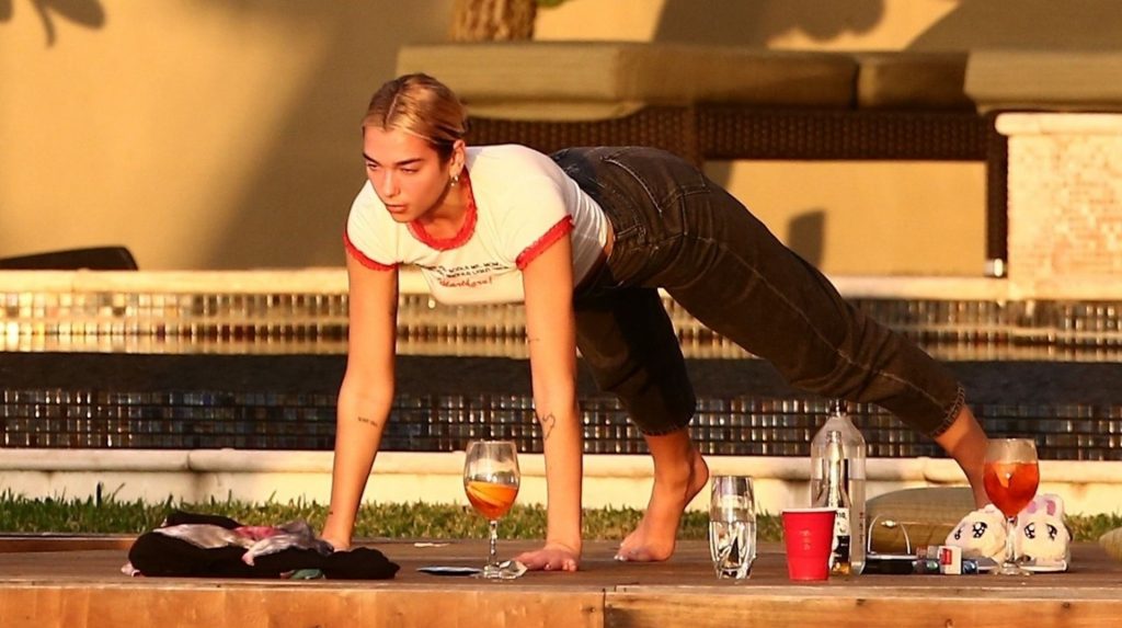 Anwar Hadid et Dua Lipa sont amoureux tout en profitant de la fin de l’année au bord de la piscine à Miami Beach, le 30/12/2019. La chanteuse savoure des boissons et fait du yoga au bord de la piscine avec des amis pendant la soirée apaisante.