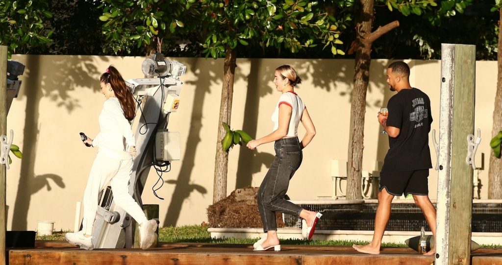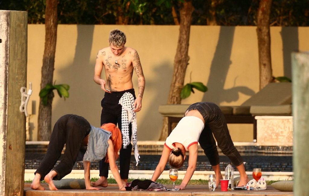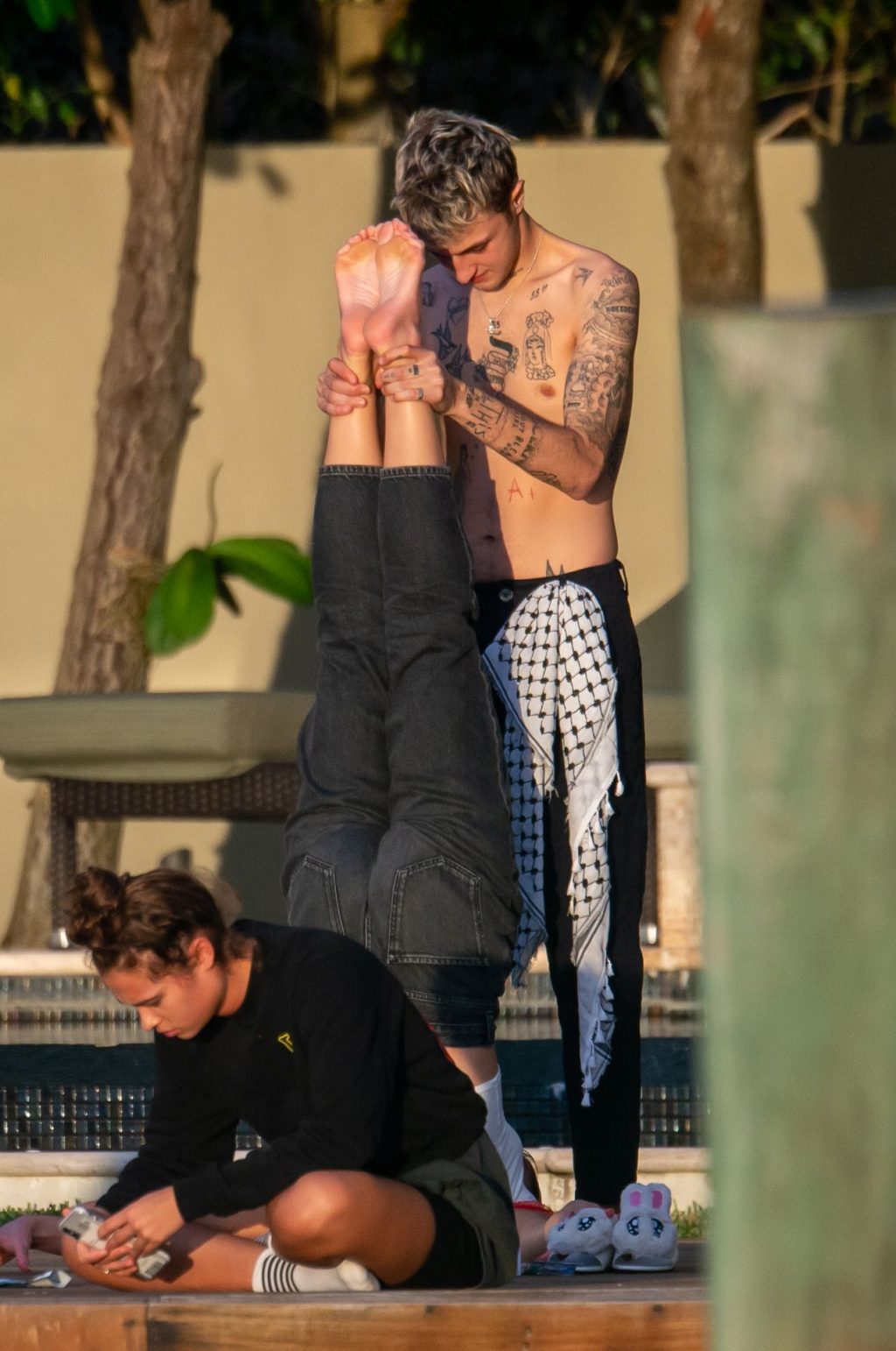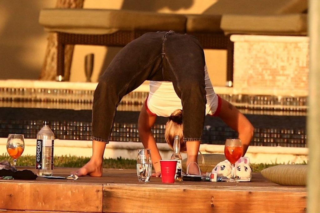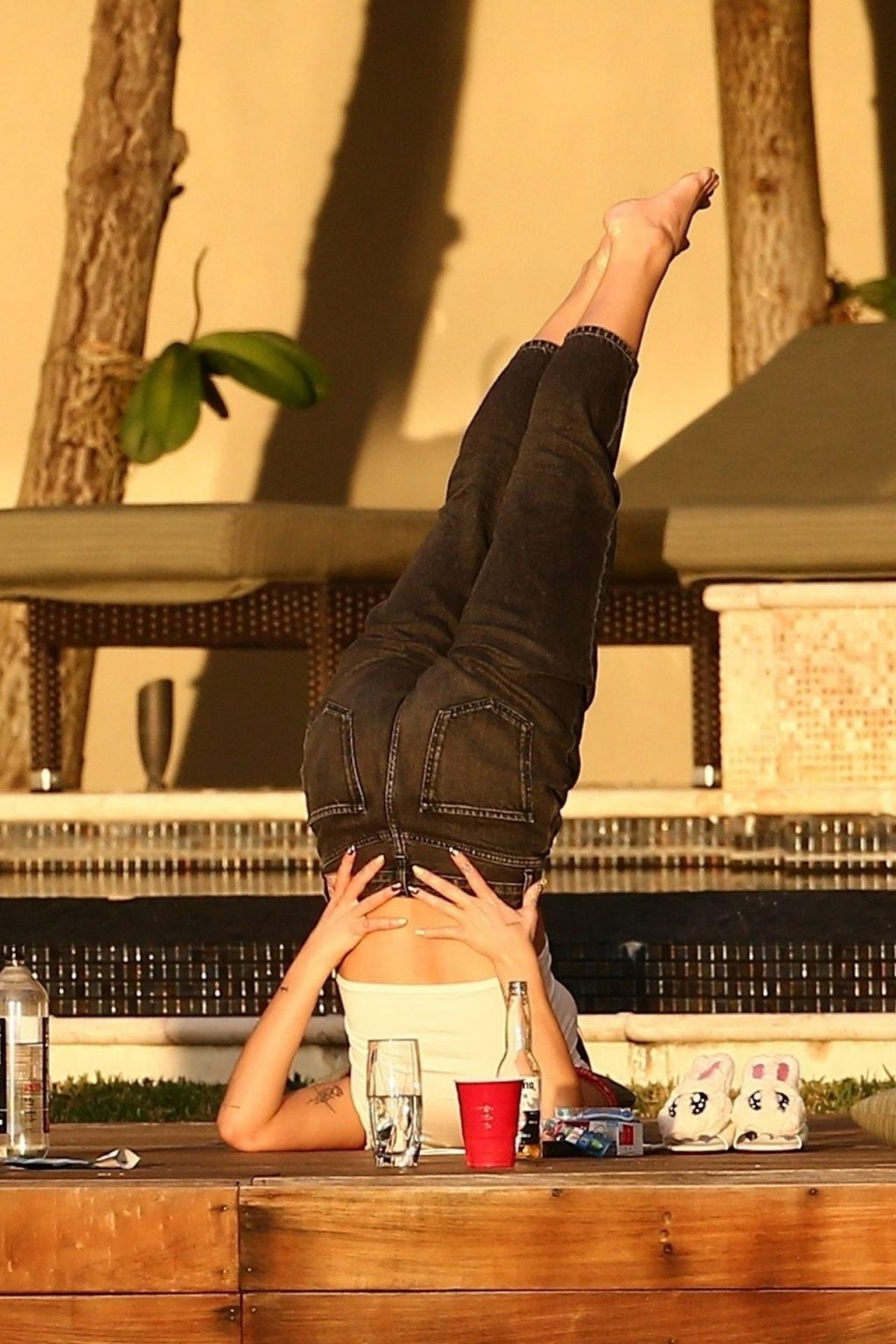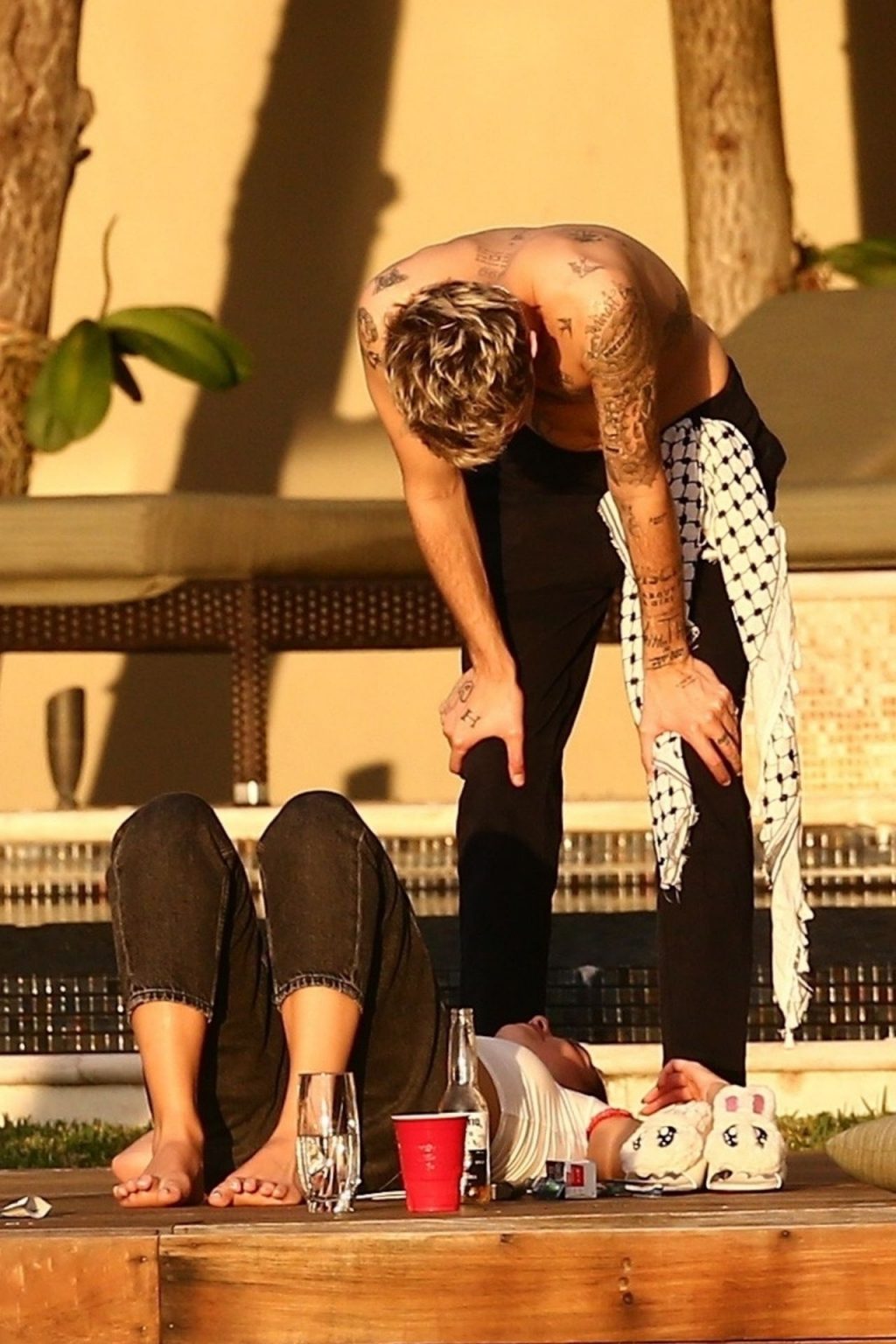 Anwar Hadid et Dua Lipa sont amoureux tout en profitant de la fin de l’année au bord de la piscine à Miami Beach, le 30/12/2019. La chanteuse savoure des boissons et fait du yoga au bord de la piscine avec des amis pendant la soirée apaisante.