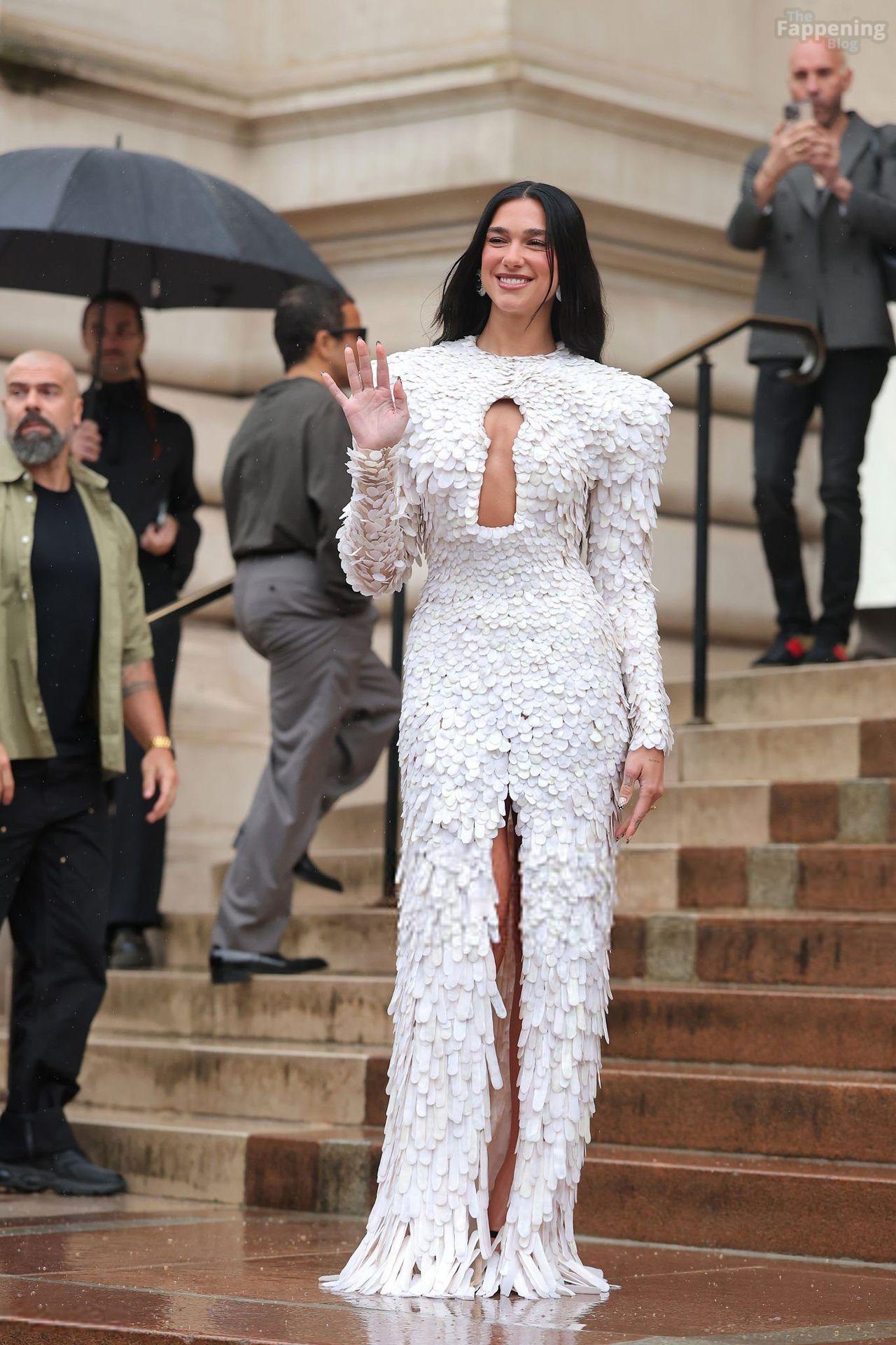 Dua Lipa a assuré chaque seconde à la Fashion Week de Paris, dominant les marches pour le défilé Schiaparelli Haute Couture F/W 2025-26. Elle est arrivée dans une magnifique robe blanche sculptée, semblant sortie d’un conte de fées moderne.