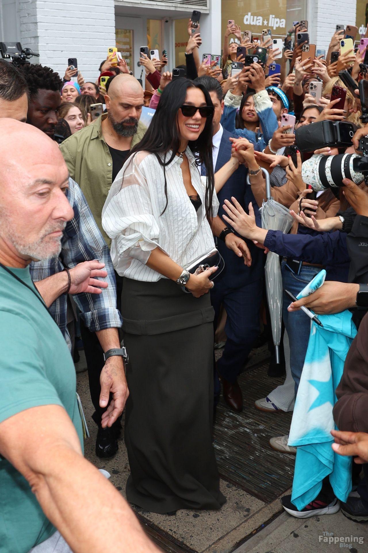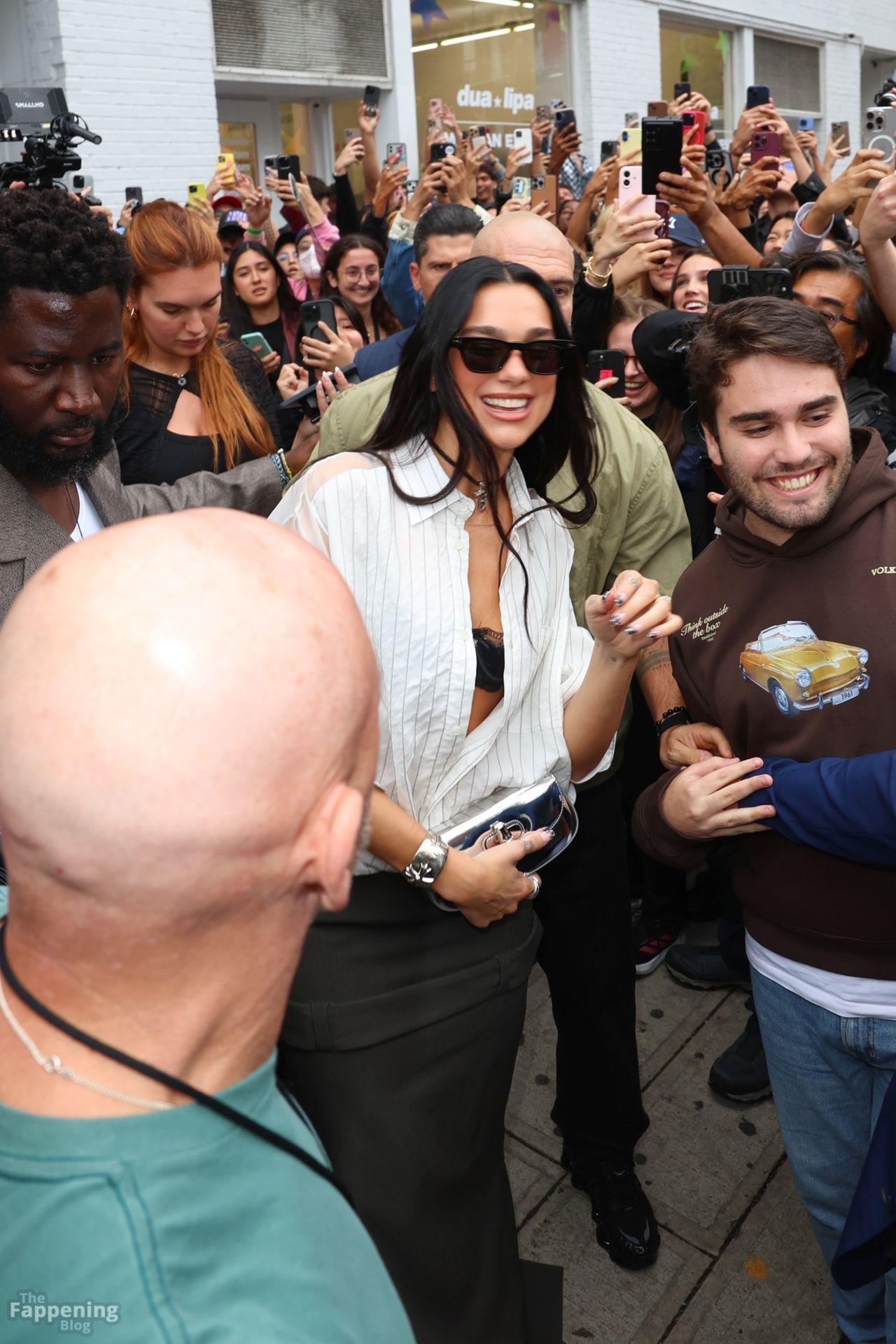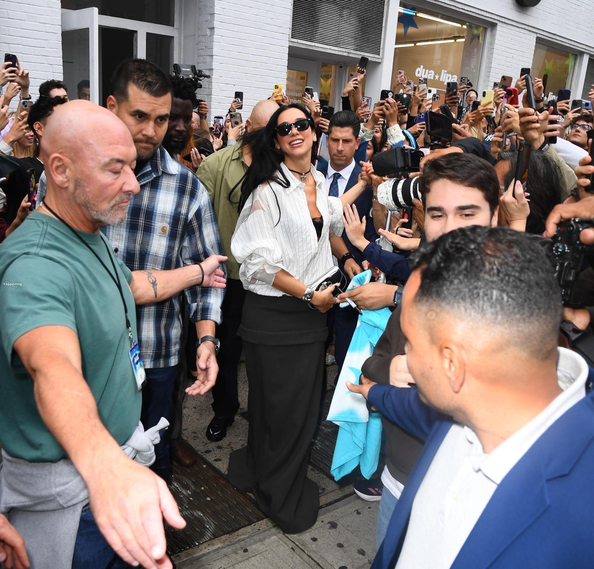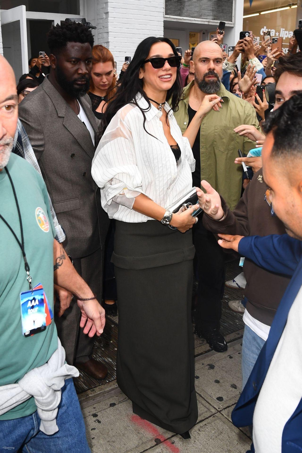 Soutien-gorge apparent, décolleté en vue — le look audacieux de Dua Lipa lors de son pop-up à NYC a laissé les fans sans voix et les caméras crépiter New York, NY La chanteuse Dua Lipa affiche un large sourire à son arrivée à sa boutique éphémère « Radical Optimism » à Manhattan.