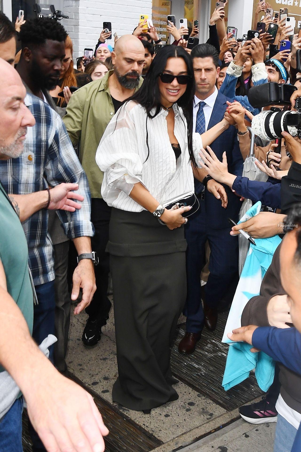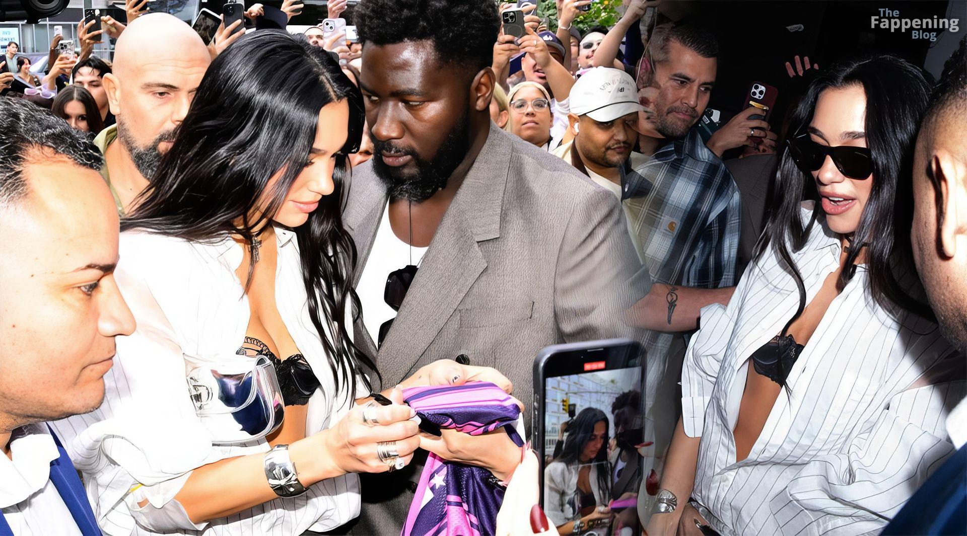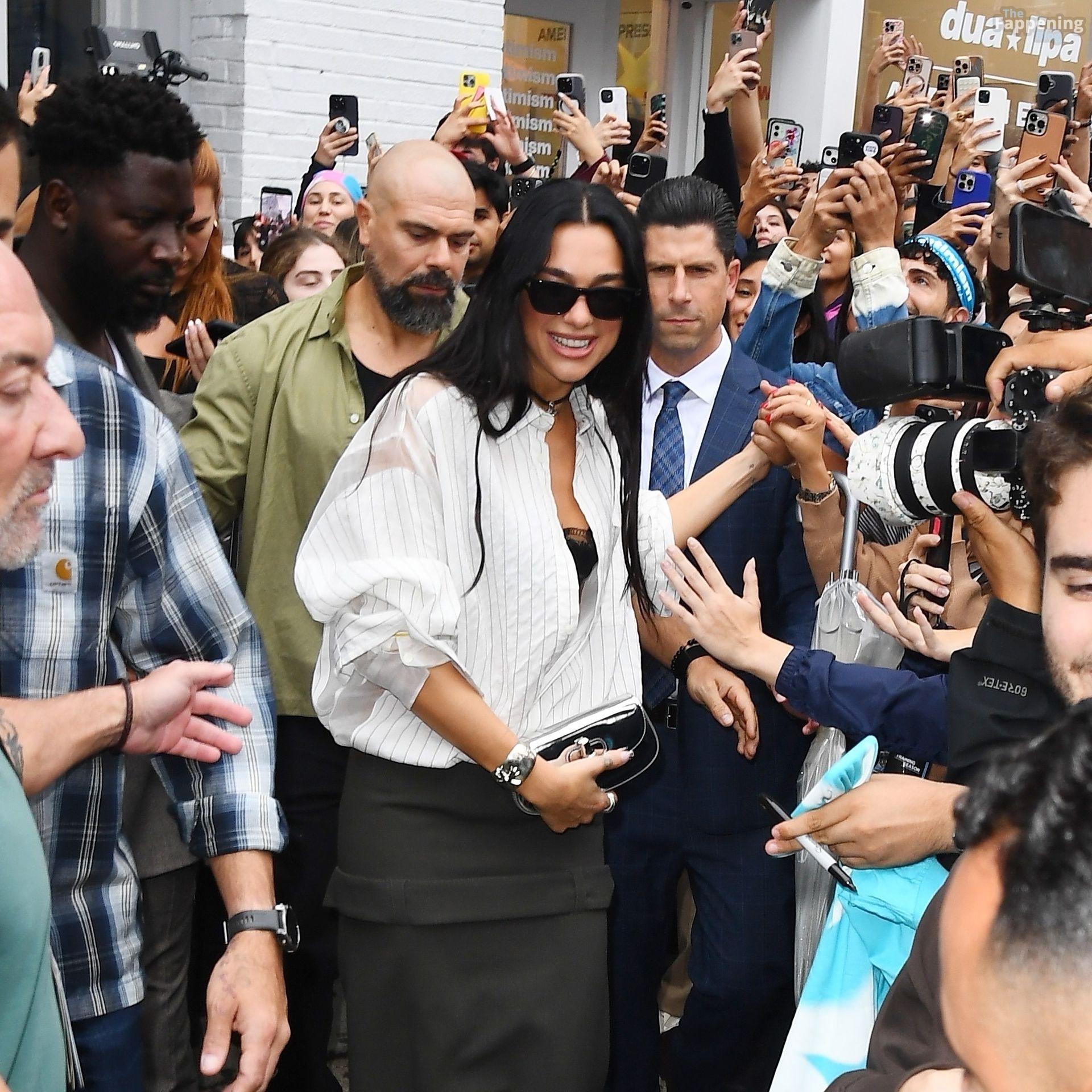 Soutien-gorge apparent, décolleté en vue — le look audacieux de Dua Lipa lors de son pop-up à NYC a laissé les fans sans voix et les caméras crépiter New York, NY La chanteuse Dua Lipa affiche un large sourire à son arrivée à sa boutique éphémère « Radical Optimism » à Manhattan.
