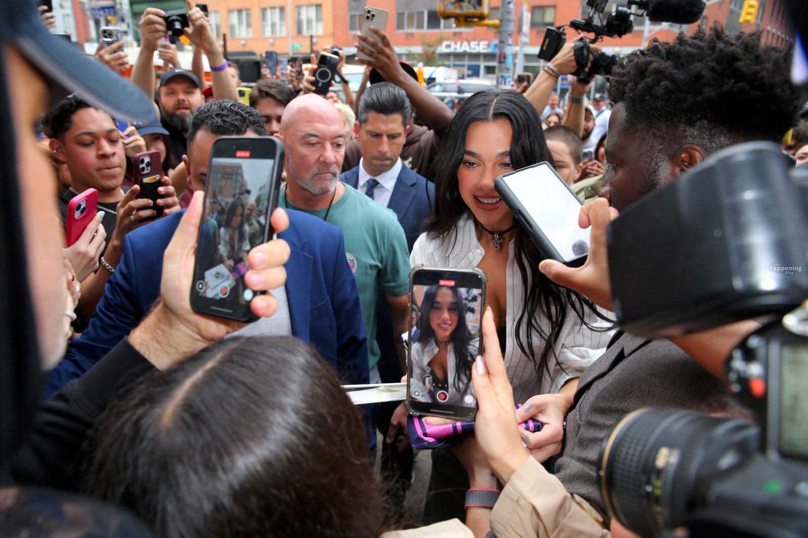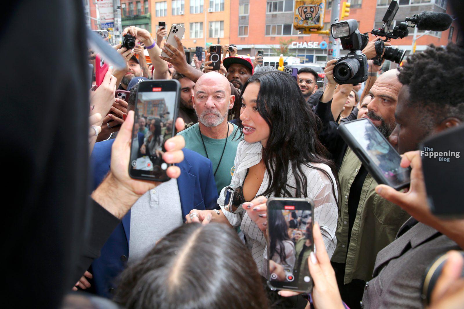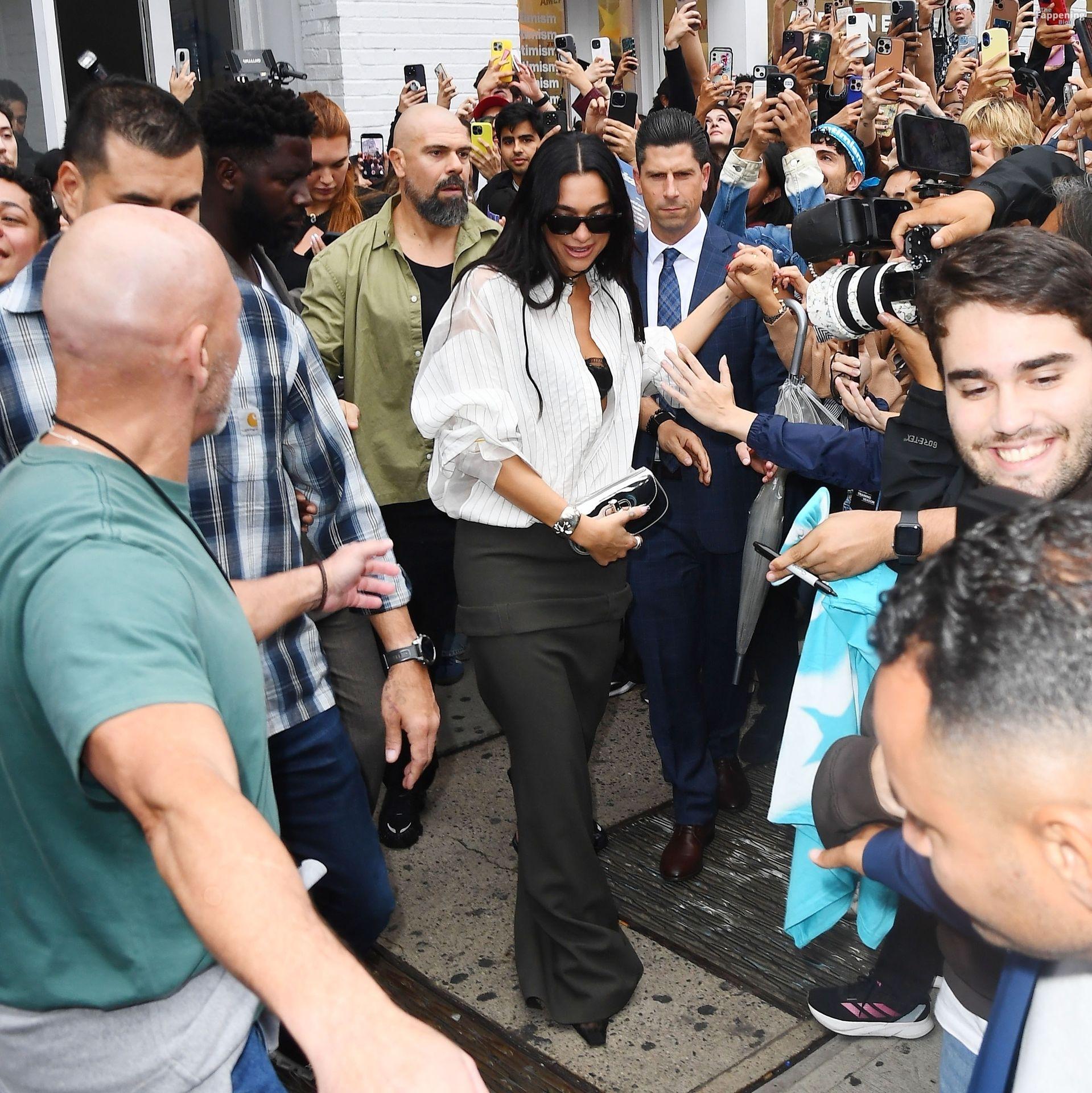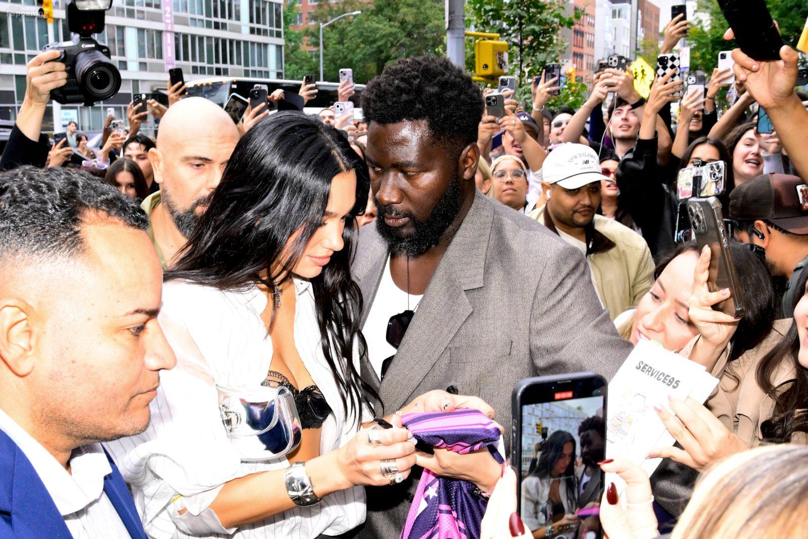 Soutien-gorge apparent, décolleté en vue — le look audacieux de Dua Lipa lors de son pop-up à NYC a laissé les fans sans voix et les caméras crépiter New York, NY La chanteuse Dua Lipa affiche un large sourire à son arrivée à sa boutique éphémère « Radical Optimism » à Manhattan.