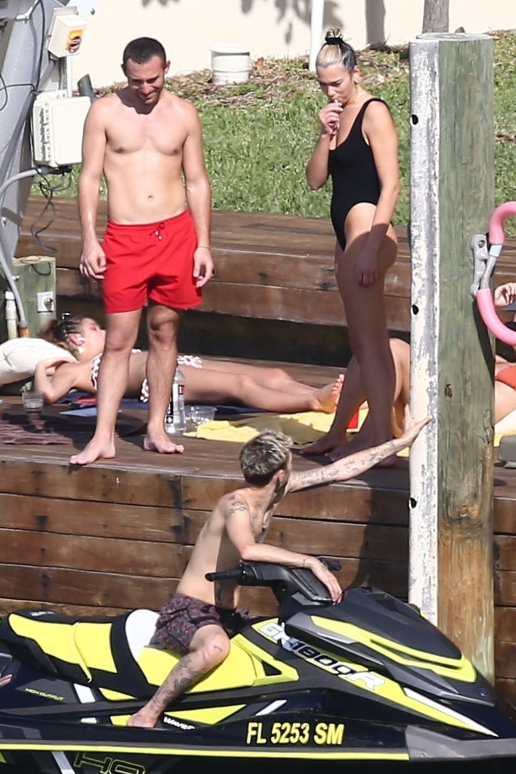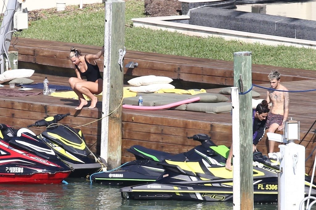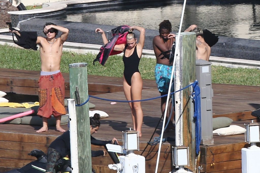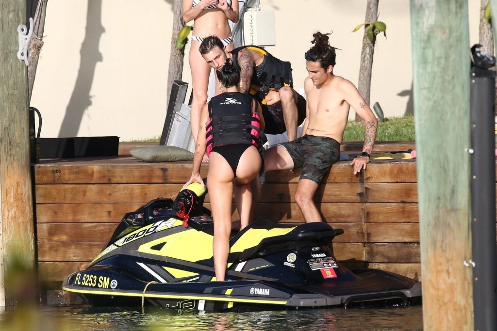 C’est vendredi… la chanteuse Dua Lipa et son petit ami Anwar Hadid prennent de l’avance pour le week-end avec du yoga et du jet-ski à Miami avec des amis, 01/03/2020.