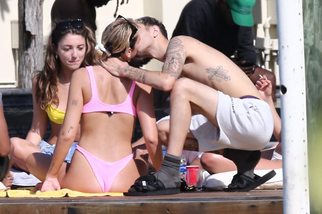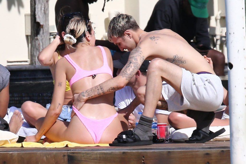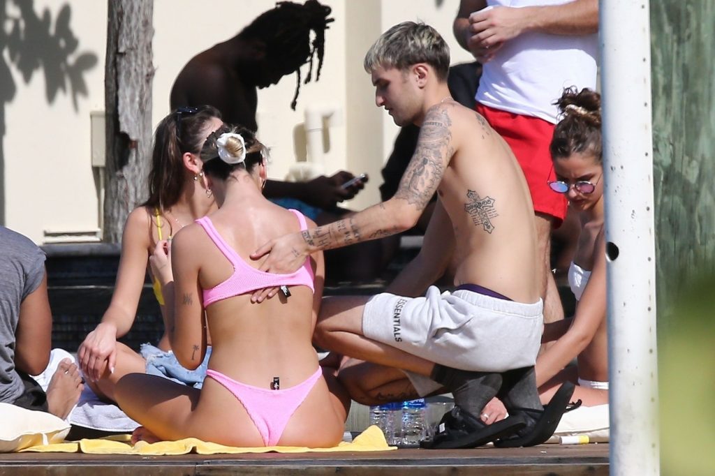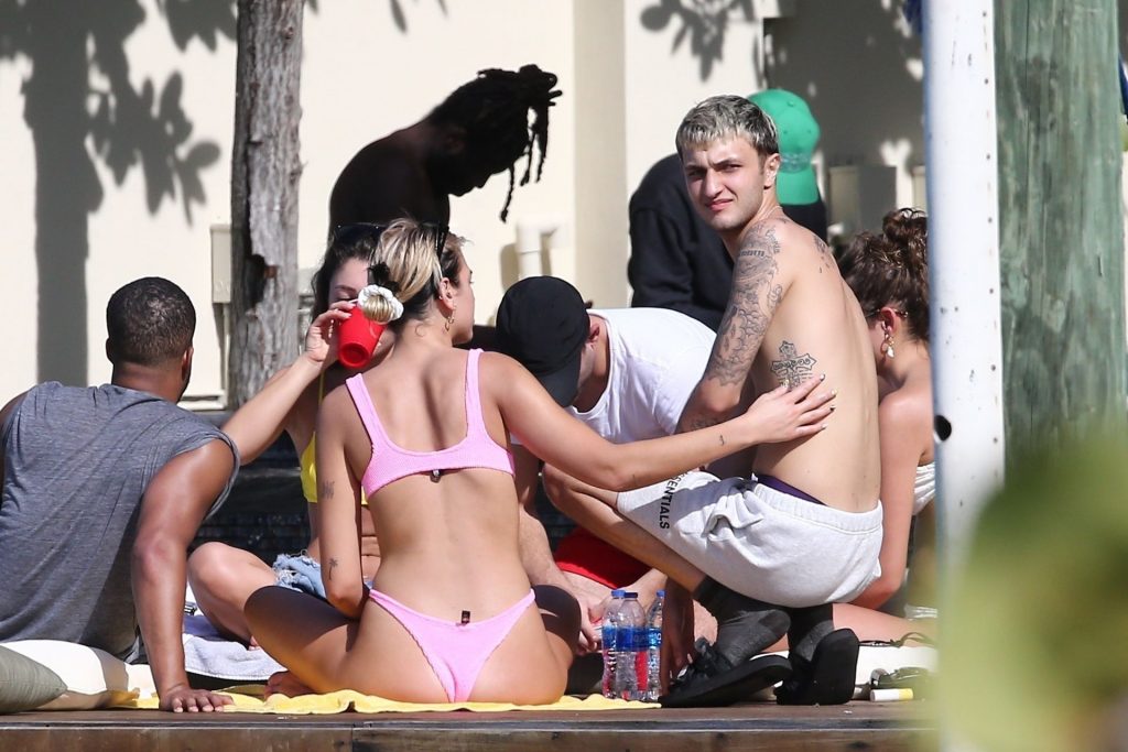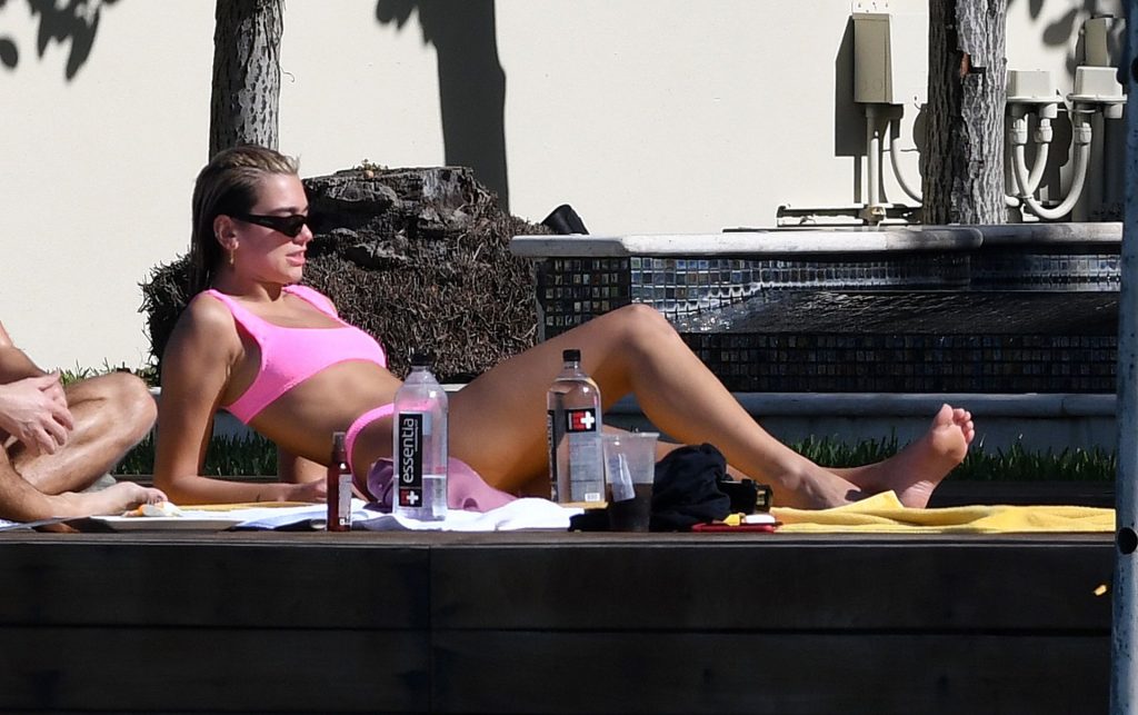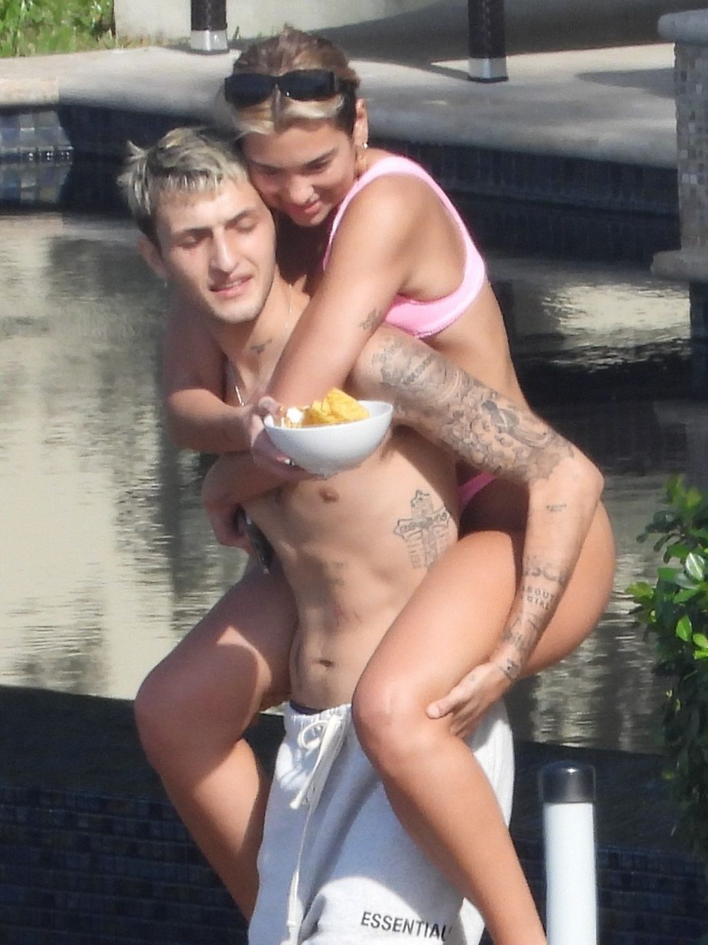 Dua Lipa profite d’un autre après-midi tranquille avec son équipe en profitant du soleil en bikini rose à Miami, 01/02/2020.