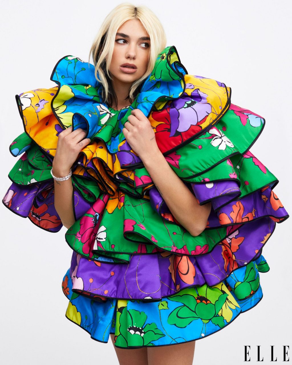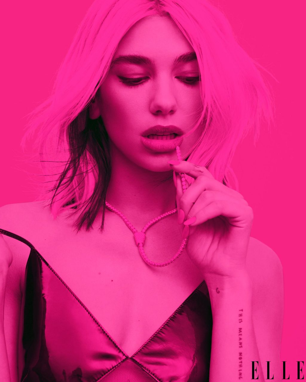 La chanteuse sexy Dua Lipa pose dans de magnifiques tenues et nue, couvrant ses seins avec une guitare dans une séance photo excitante réalisée par Zoey Grossman pour le numéro de mai 2020 du magazine Elle.