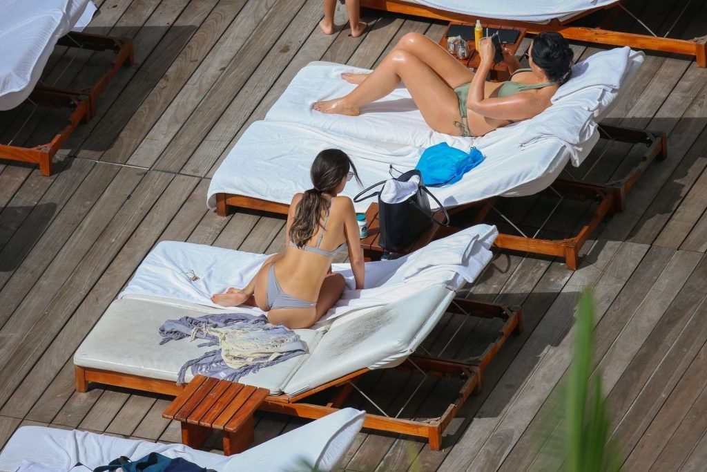 La bombe Eiza Gonzalez profite d’une journée en bikini à la piscine pendant ses vacances à Hawaï, 11/12/2018.