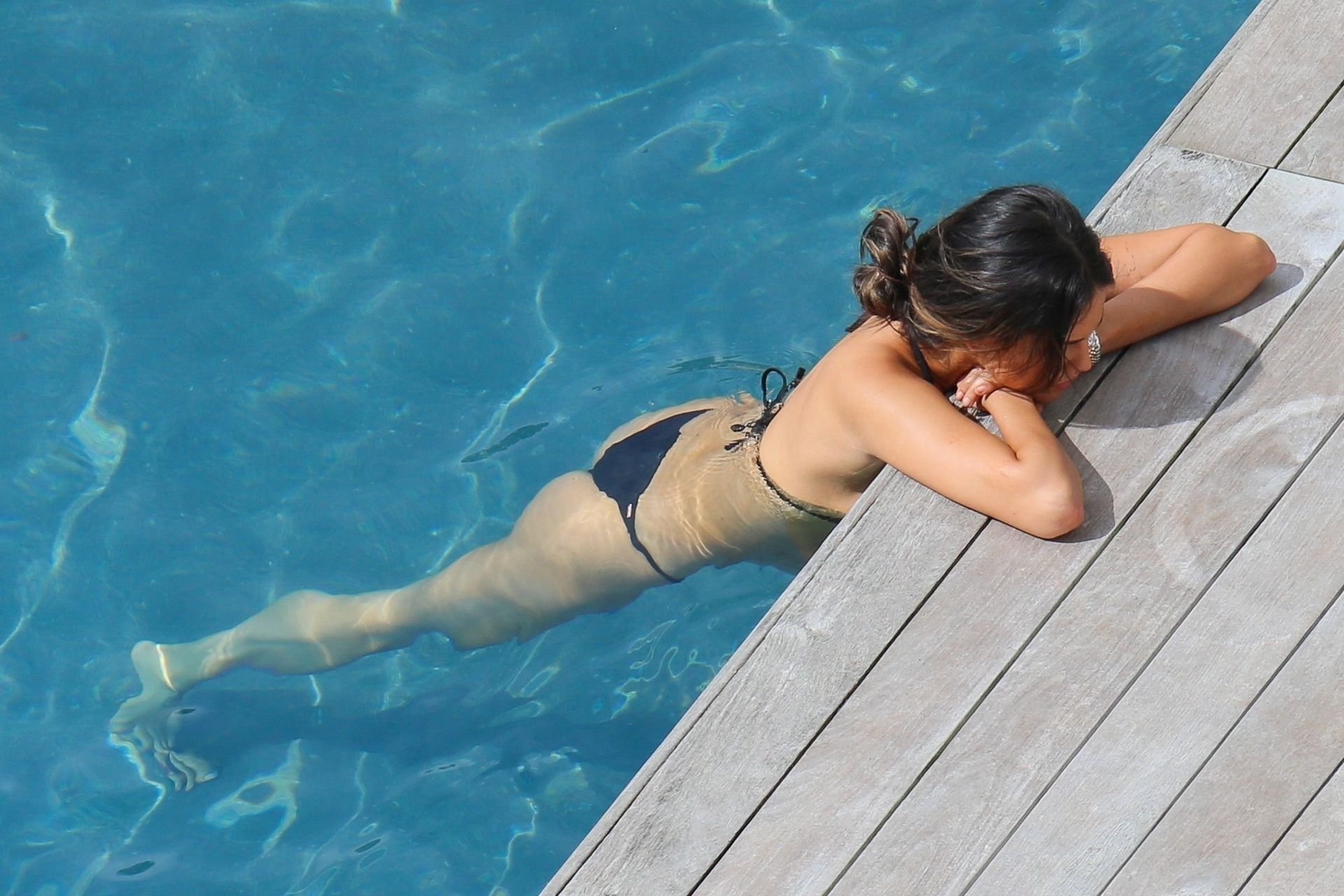 L’actrice mexicaine Eiza Gonzalez profite d’un moment de détente au bord de la piscine à Honolulu, 12/08/2018.