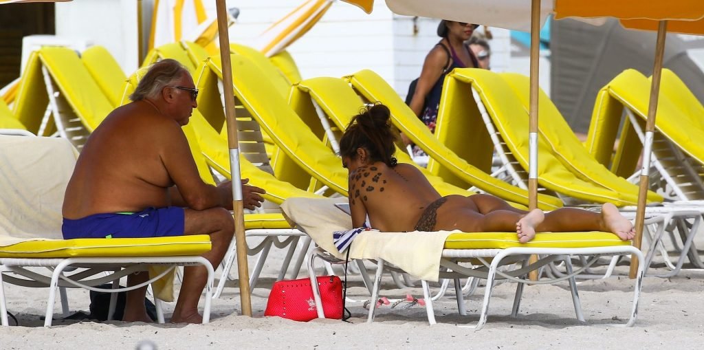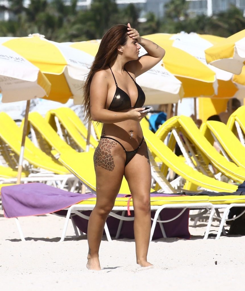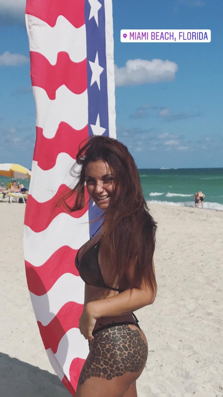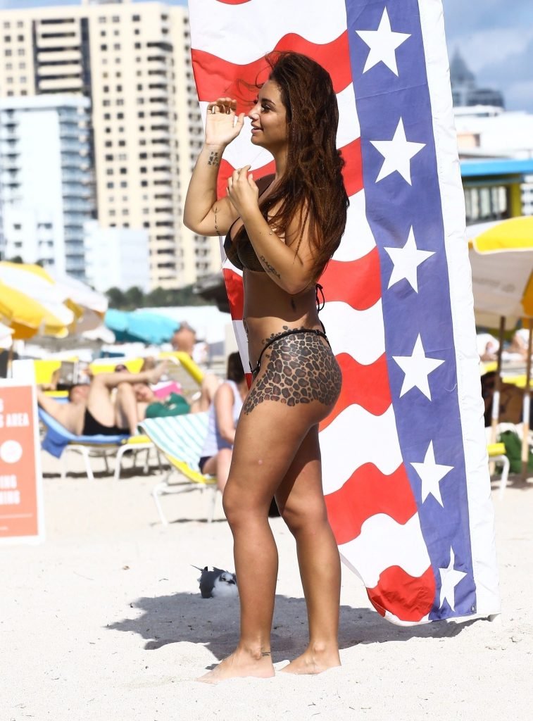 Le mannequin et personnalité télé Elettra Lamborghini (23 ans) profite d’une journée à la plage à Miami Beach, le 12/02/2017.
