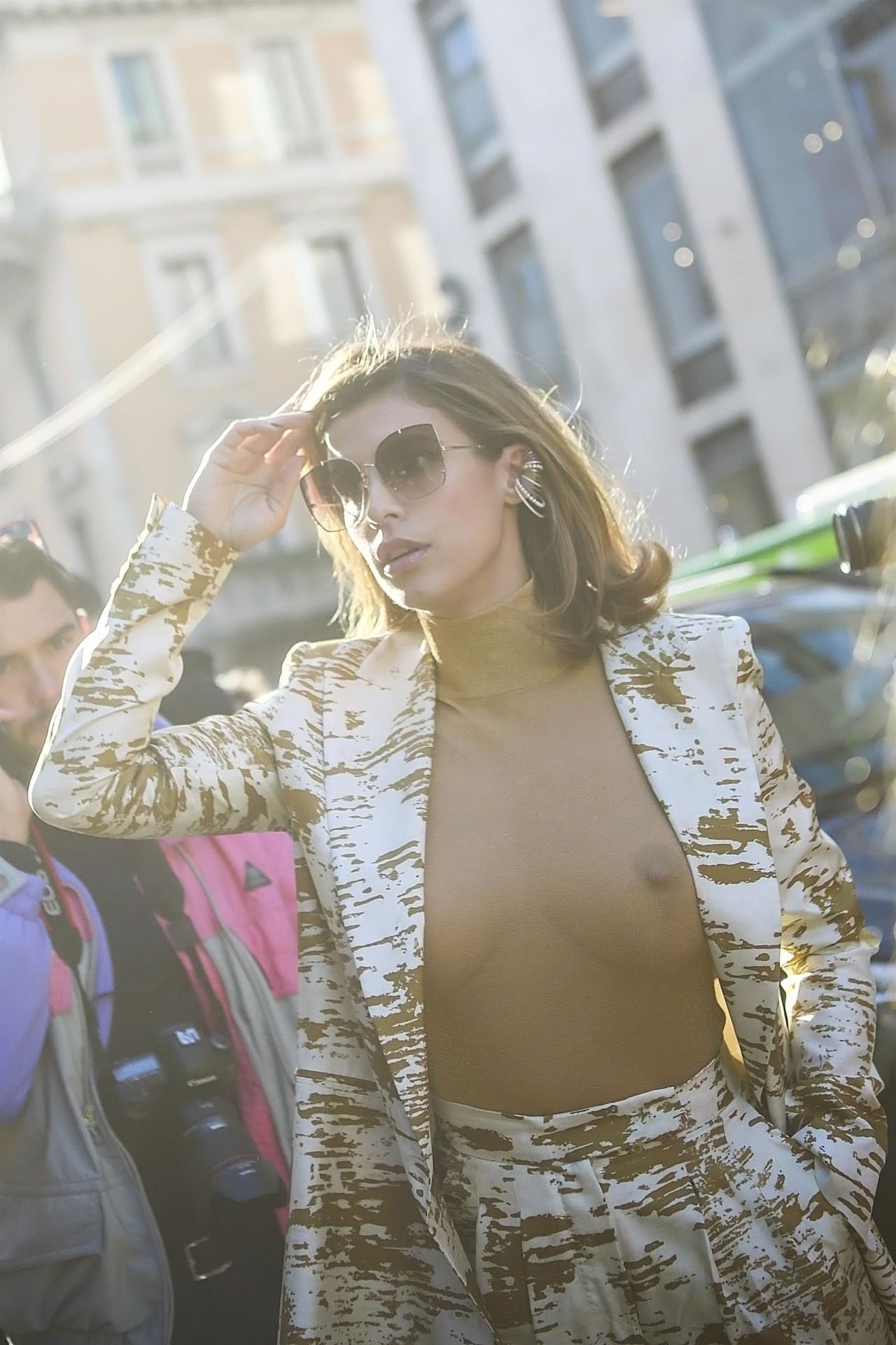 Elisabetta Canalis was seen at the Max Mara fashion show during Milan Fashion Week Fall/Winter 2020-2021 in Milan, Italy. The 41-year-old Italian model showed her boobs, wearing a see-through blouse. She is just perfection!