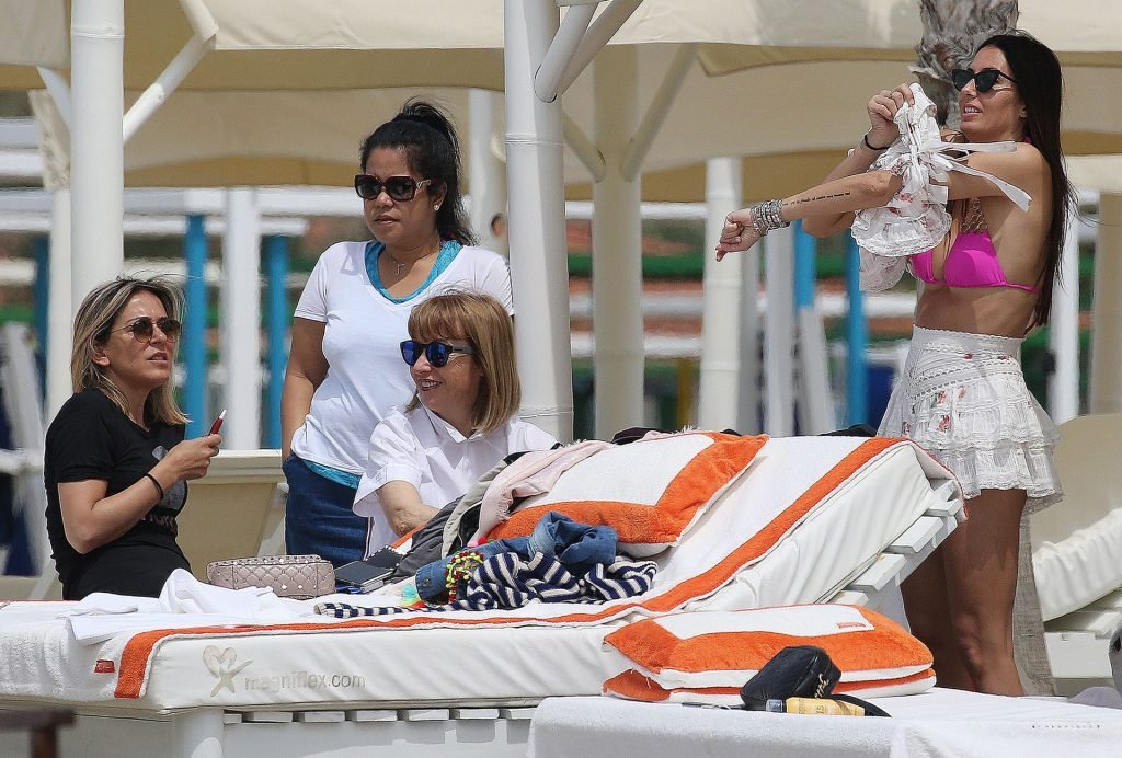 Elisabetta Gregoraci a été vue au Twiga Beach Club, le 25/05/2019. La mannequin/animatrice italienne de 39 ans, et ex-femme de Flavio Briatore, a exhibé son corps magnifique dans un bikini rose.